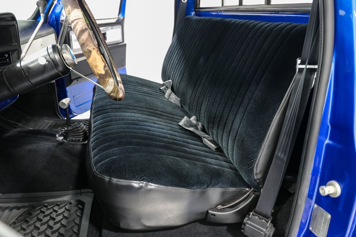 This 1978 Chevrolet K10 is built to impress, boasting a host of high-performance upgrades and eye-catching features. The custom front bumper with fog lights not only adds an aggressive look but also improves visibility in low-light conditions. The chrome master cylinder and booster, along with the backlit LED Bowtie emblems in the door sills, provide a touch of modern flair to this classic ride. Riding on 15-inch Mickey Thompson aluminum wheels, this K10 commands attention wherever it goes.