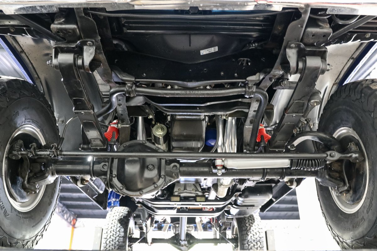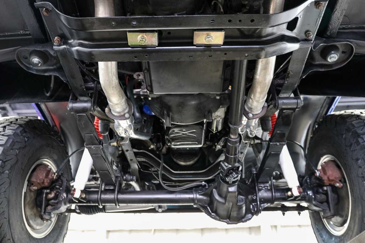 The performance of this K10 is unmatched, thanks to the Edelbrock carburetor and air cleaner, Chevrolet Performance valve covers, and Chevrolet Performance intake. The ceramic-coated long tube headers and dual exhaust provide a deep, throaty roar that announces your presence with authority. The aftermarket serpentine belt setup and 4-wheel disc brakes ensure that this truck performs as well as it looks, offering modern reliability and stopping power.