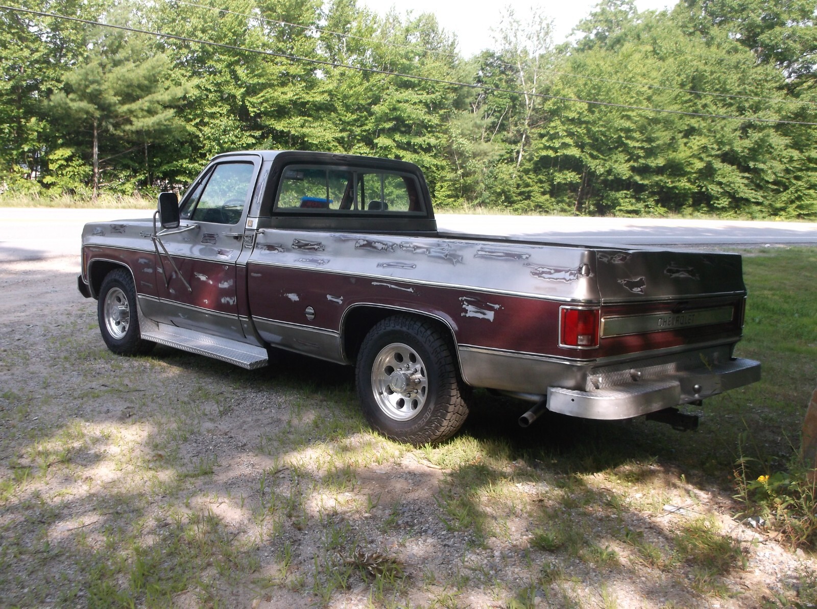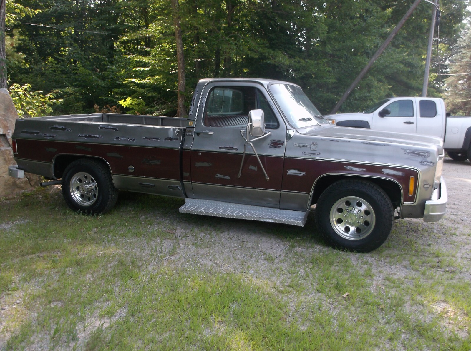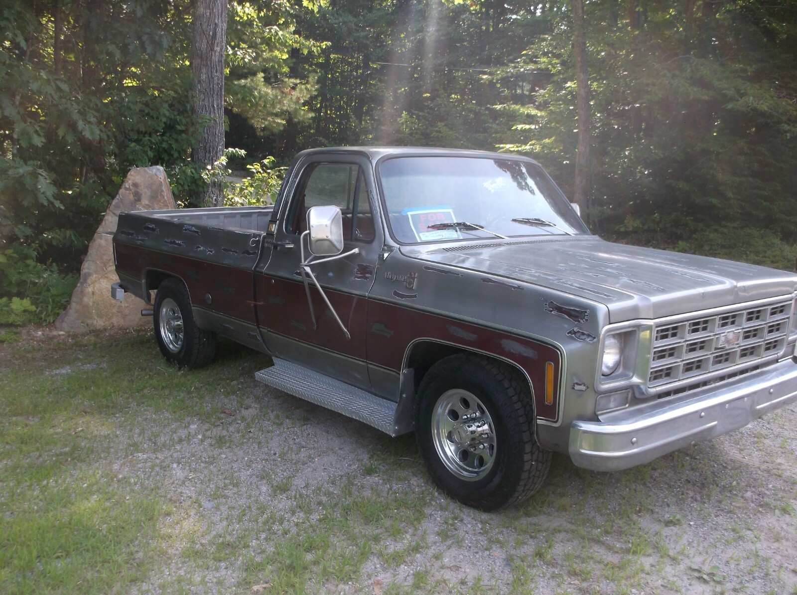 1978 Chevy C-20 Big Block AC Truck Just in from Idaho!!!!! This is a factory 454, Auto 2WD 67 k Orig. with Dual Exhaust that runs and sounds GREAT! This truck just came in from Idaho, Clear Idaho title in hand, Truck has Brand new Tires and Rims, New Exhaust, Body is Rust free, and the frame is mint. They gave it the patina look and YES she is clear coated. Let the Pictures tell the story, Nice Interior and a custom radio. This is a solid square body, Please email with all questions before bidding, Bid to own! Thanks Terms Of Sale; Payment arrangements' to be made within 24 HRS of Sale, All Transport is the Buyers Responsibility