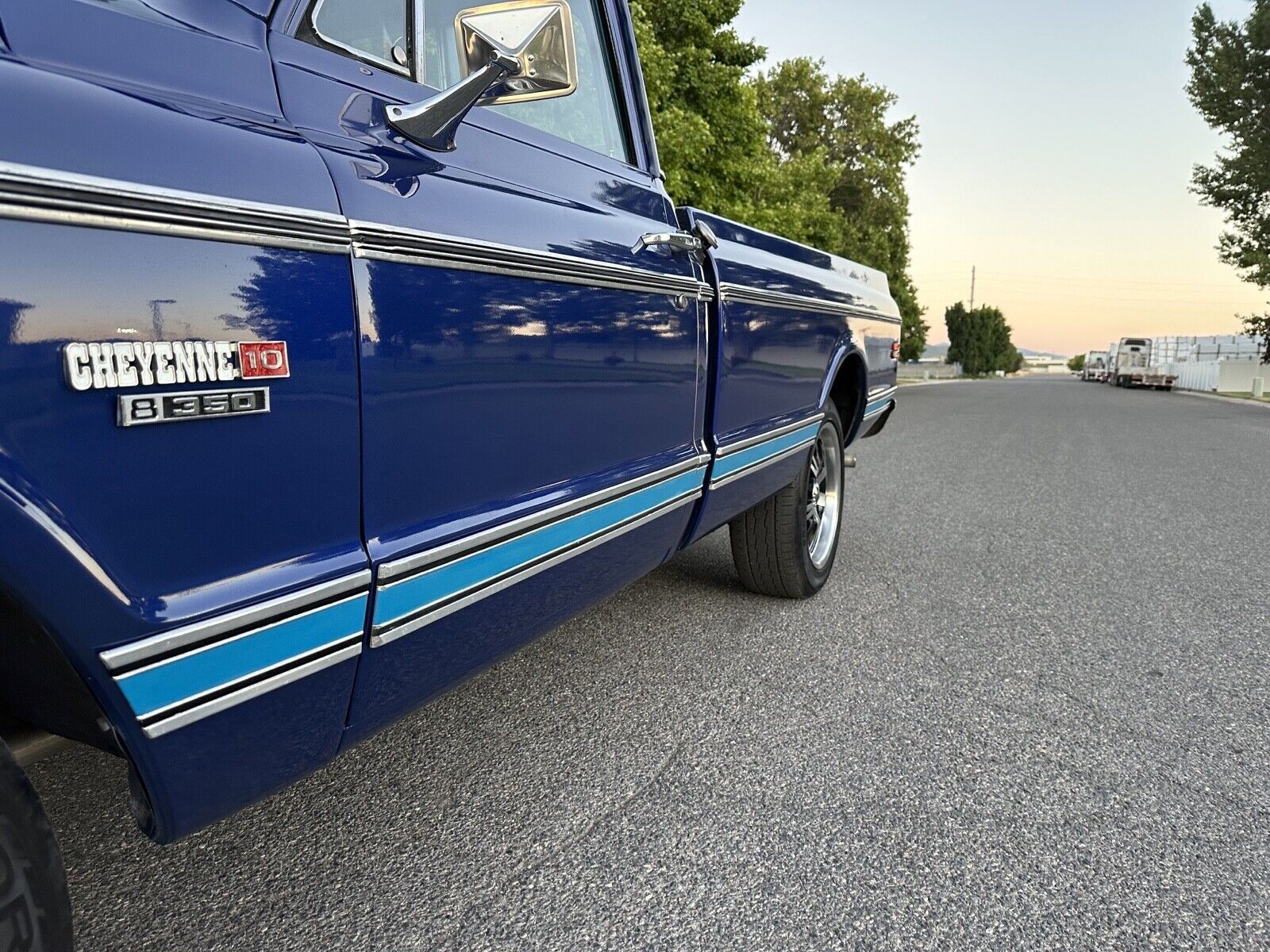 Very clean Chevy C10 Cheyenne. Vortec 350 starts and runs great. Turbo 350 transmission shifts smooth. Both interior and exterior are in extremely good shape. Has been garage kept keeping metallic blue paint looking new. Everything works on the truck. No leaks, straight body, freshly serviced and ready to go.