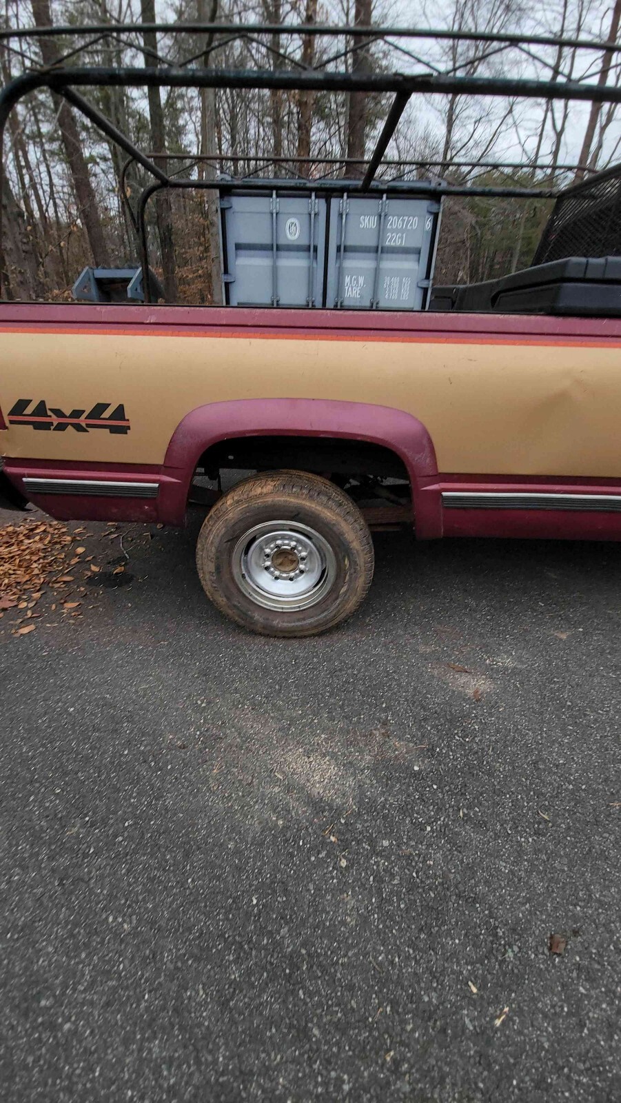 This is the heavier 3/4 ton, not the regular one, hence the HD. Has a Jasper 350 remanufactured engine in it. Also, have another set of wheels and tires for it. It has a 12000 lbs Harbor Freight cable winch and winch bumper on the front that works great, and a 16000 lbs Curt receiver hitch on the back. I also replaced the back bumper, which is still in great shape. It has a plastic bed box that still keeps things dry. The ladder rack is heavy duty and was custom-made.