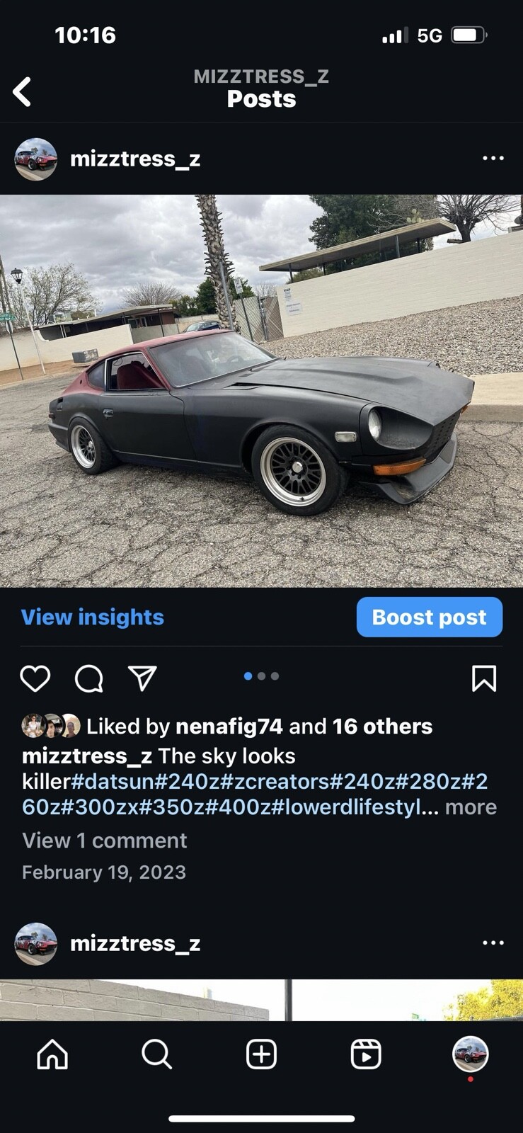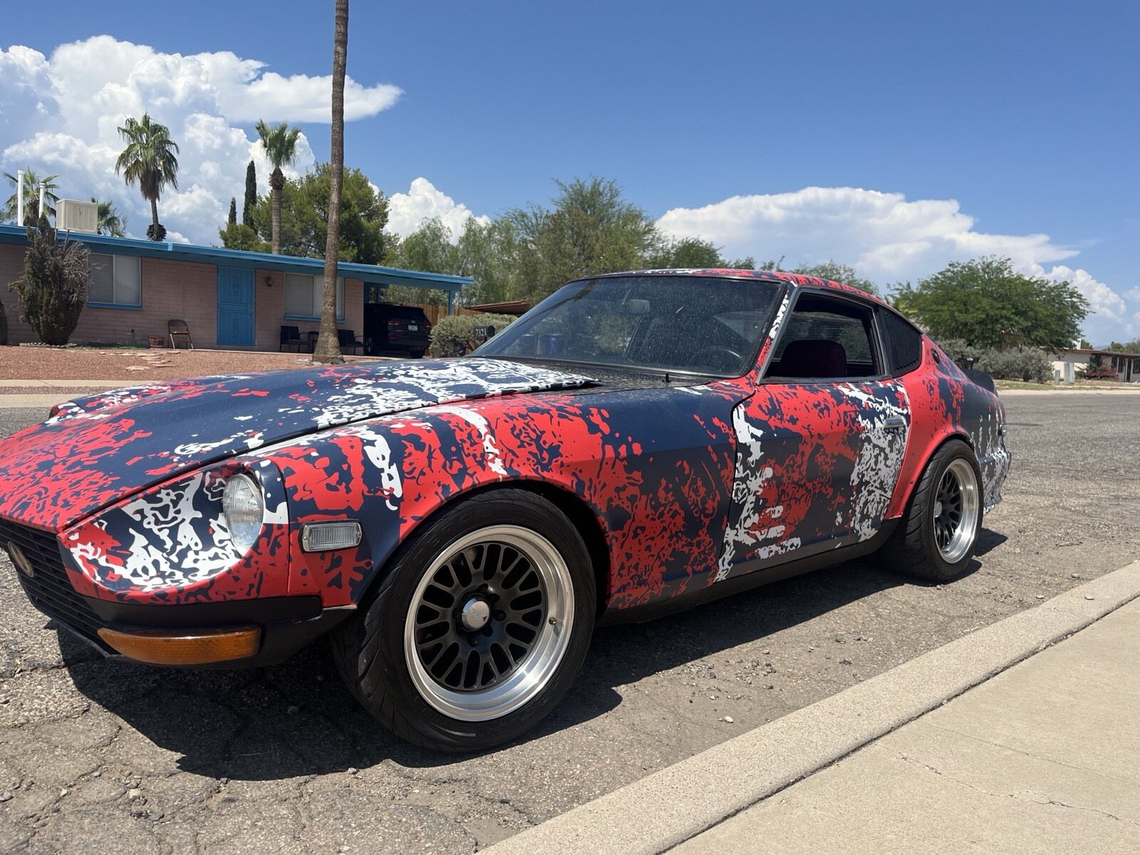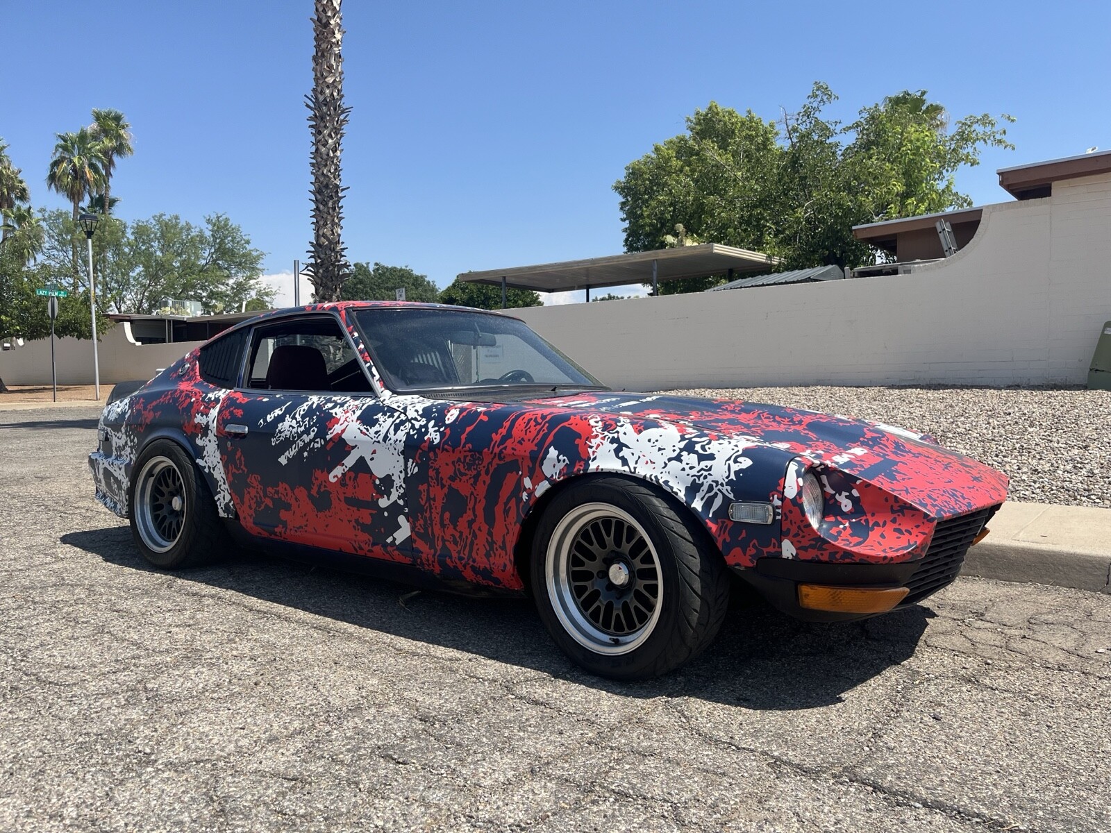 Here’s my 73Datsun 240z I’ve owned since 2012. Much works has been done over the years. Rebuilt 5speed trans with clutch replacement.triple weber carbs may need a tune but runs great. Air ride suspension with management which works great. Under the wrap is basically all flat black. Wrap could easily be taken off for paint. No major rust. Frame rails and battery tray have been taken care before I owned it. Carbon fiber cowl.brakes,bearings,ProTuner thermostat housing,skillard grill and side louvers.little things here and there Mishimoto radiator has a pinhole leak. Passenger side window glass broken. I have window and regulator for driver side. Turn signal switch needs some attention Only took car out for weekend drives and shows. Car drives fantastic. Lots of parts I did not list. Please ask if you have any questions. Great car with great potential and drivetrain. Looking for 8700obo
