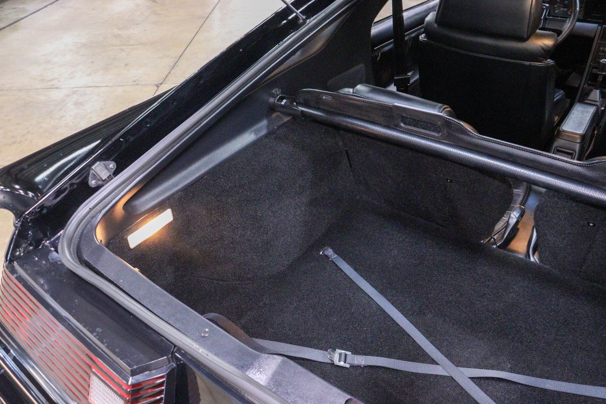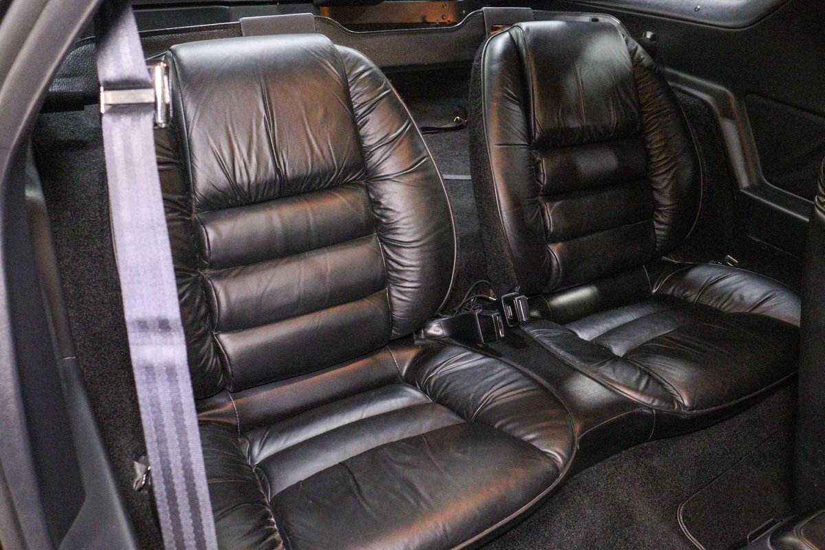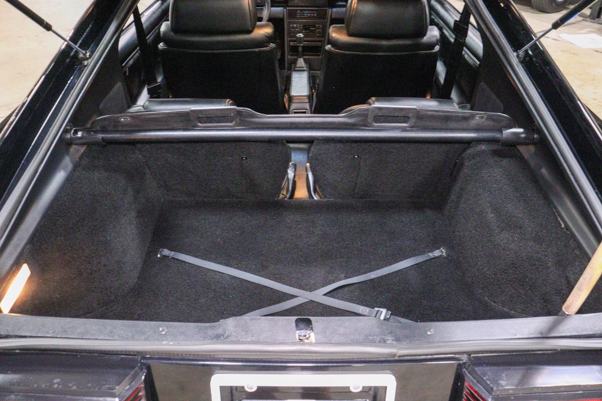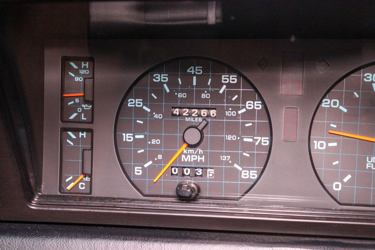 Inside, the black leather interior has been exceptionally well-maintained, reflecting the vehicle's low mileage of just 42,266 original miles. The dashboard and center console are classic '80s, featuring an array of digital displays and driver-focused controls that give the cockpit a futuristic vibe. The clean and tidy interior underscores the care this car has received, making it a fantastic example of a well-preserved 1980s hot hatch.