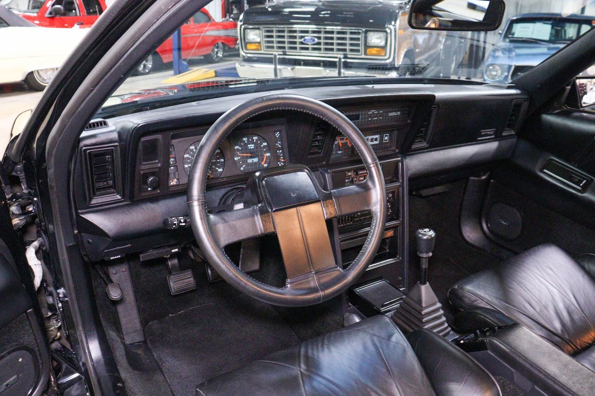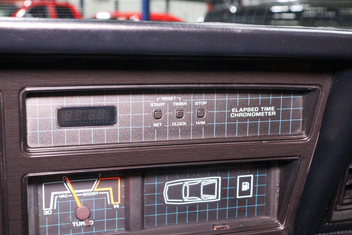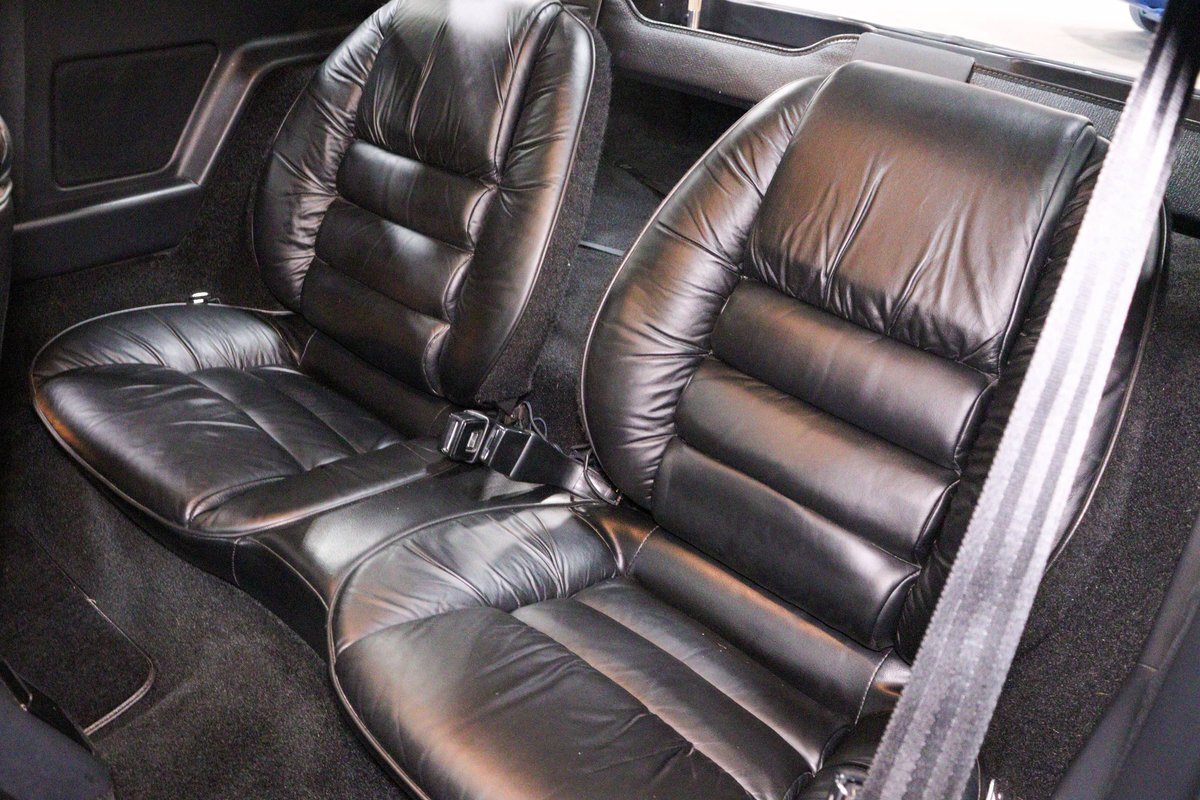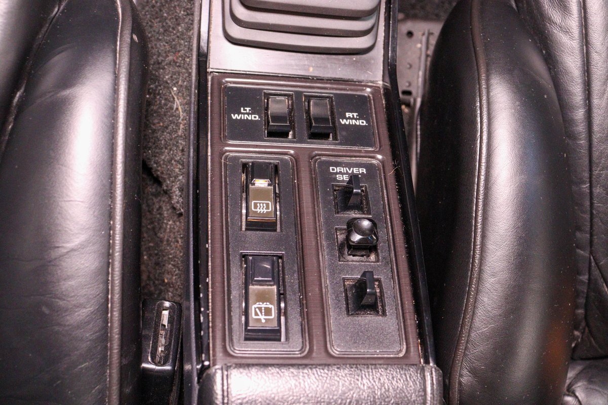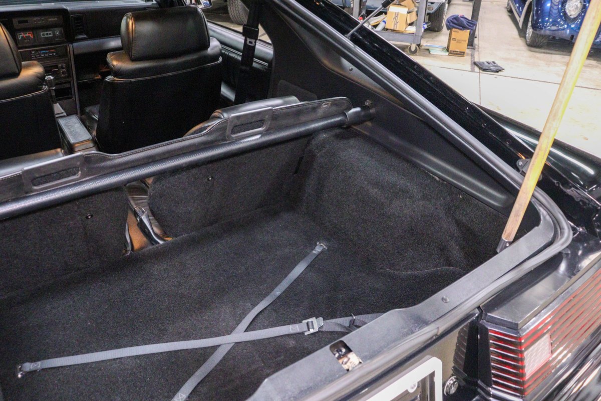 Inside, the black leather interior has been exceptionally well-maintained, reflecting the vehicle's low mileage of just 42,266 original miles. The dashboard and center console are classic '80s, featuring an array of digital displays and driver-focused controls that give the cockpit a futuristic vibe. The clean and tidy interior underscores the care this car has received, making it a fantastic example of a well-preserved 1980s hot hatch.
