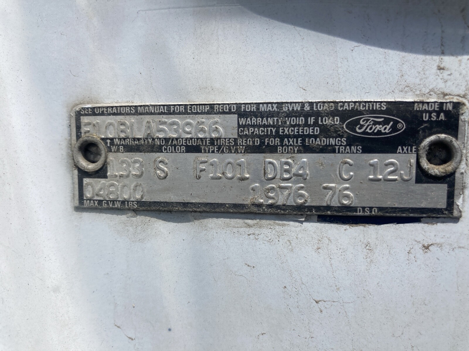 1976 Ford 6 cylinder Body:DB4