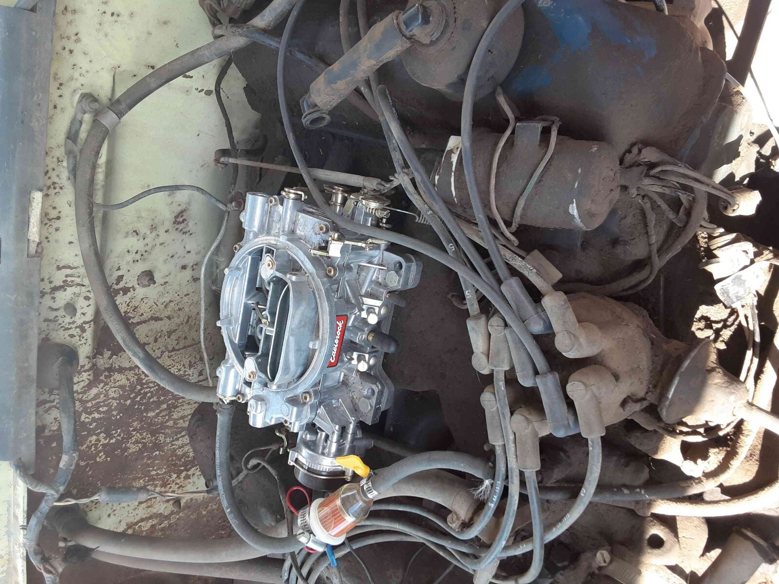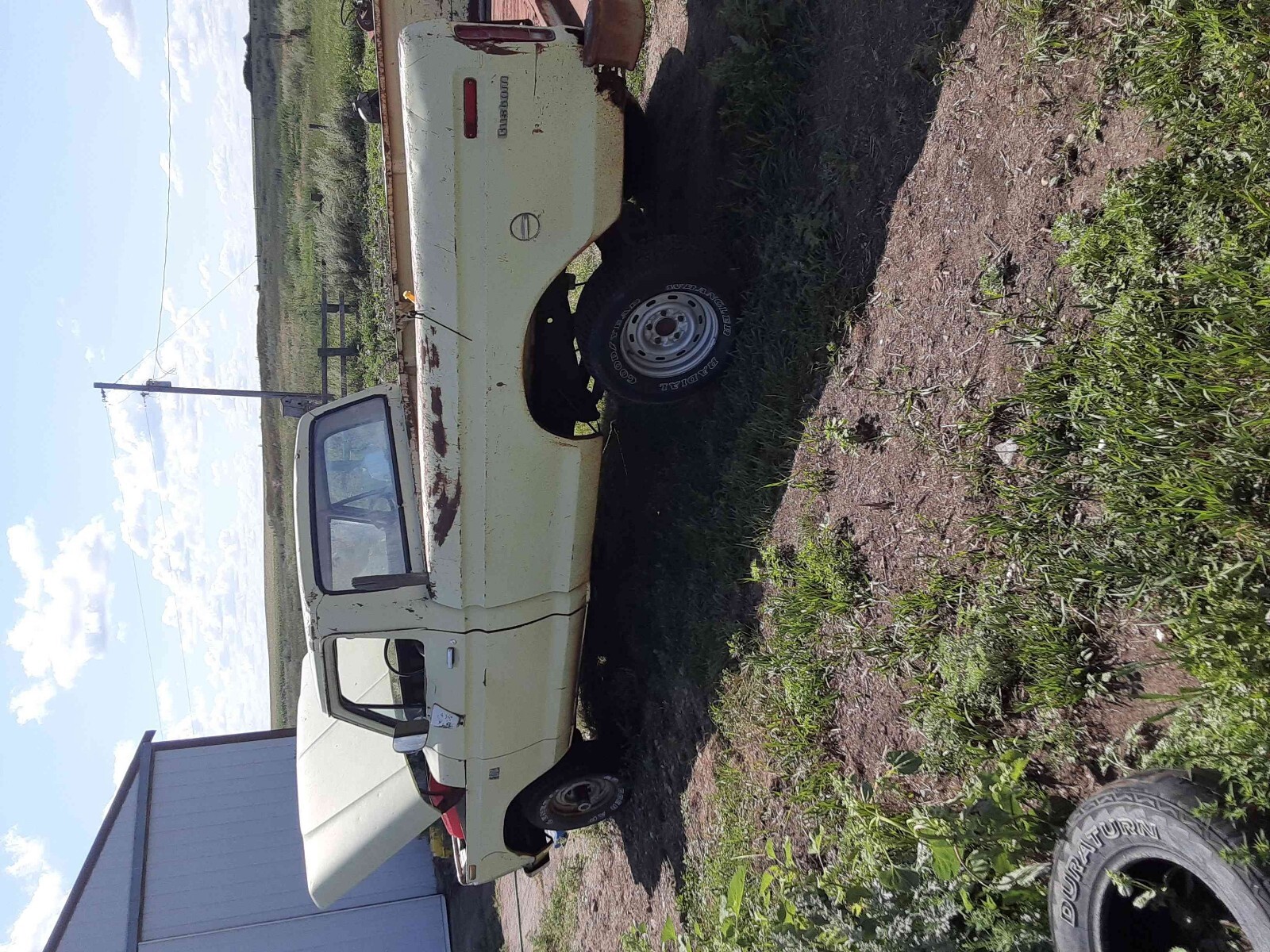 1975 F100 with good bones. Runs great, but needs to be trailered due to no brakes. *May need* brakes bled. Body is rough, but serviceable. Needs passenger floor board. Has a new fuel tank and a new Edelbrock carburetor. Three of the tires are new Goodyear Wranglers. Clear title.