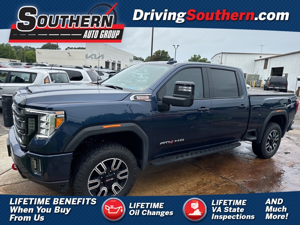 CARFAX One-Owner. Certified. Pacific Blue Metallic 2022 GMC Sierra 3500HD AT4 4WD 10-Speed Automatic Duramax 6.6L V8 Turbodiesel GMC Certified Pre-Owned Certified, 10-Speed Automatic, 4WD, Jet Black With Kalahari Accents Leather, Leather Seating!!!, Navigation!!!, Super Clean inside and out!!!, Alloy Wheels, Backup Camera, Bluetooth, Bose High End Sound Package, Leather Seats, Moonroof, Navigation System, ALLOY WHEELS, BACKUP CAMERA, BLUETOOTH, KEYLESS ENTRY, LEATHER SEATS, MOONROOF, NAVIGATION, POWER PACKAGE, APPLE ANDROID CARPLAY, PUSH BUTTON START, 10-Way Power Driver Seat Adjuster w/Lumbar, 10-Way Power Passenger Seat Adjuster w/Lumbar, 12-Volt Rear Auxiliary Power Outlet, 120-Volt Bed Mounted Power Outlet, 120-Volt Instrument Panel Power Outlet, 2 USB Ports (First Row), 2 USB Ports Inside Console, 2-Speed Active Transfer Case, 2nd Row Dual USB Charge-Only Ports, 4-Wheel Disc Brakes, 4.2 Diagonal Color Display Driver Info Center, 6-Speaker Audio System Feature, ABS brakes, Air Conditioning, Automatic temperature control, Compass Located In Instrument Cluster, Deep-Tinted Glass, Driver Memory, Dual front impact airbags, Dual front side impact airbags, Electric Rear-Window Defogger, Electrical Lock Control Steering Column, Floor-Mounted Center Console, Front Bucket Seats, Front Center Armrest, Front dual zone A/C, GMC Connected Access Capable, HD Rear Vision Camera, Heated Driver & Front Outboard Passenger Seats, Heated Steering Wheel, Hill Descent Control, Integrated Trailer Brake Controller, Keyless Open & Start, LED Cargo Area Lighting, Manual Tilt-Wheel/Telescoping Steering Column, Navigation System, OnStar & GMC Connected Services Capable, Painted Blk Surround Grille w/High Gloss Blk Mesh, Perforated Leather-Appointed Front Seat Trim, Power Door Locks, Power Front Passenger Windows w/Express Up/Down, Power Front Windows w/Driver Express Up/Down, Power passenger seat, Power Rear Windows w/Express Down, Power steering, Power Sunroof, Power windows, Preferred Equipment Group 4SB, Prem Front Floor Liners w/Removable Carpet Insert, Prem Rear Floor Liners w/Removable Carpet Insert, Premium audio system: Premium GMC Infotainment System, ProGrade Trailering System, Radio: AM/FM w/Premium GMC Infotainment System, Rear Wheelhouse Liners, Red Recovery Hooks, Remote keyless entry, Remote Vehicle Starter System, SiriusXM w/360L, Spray-On Pickup Bed Liner w/AT4 Logo, Steering Wheel Audio Controls, Steering wheel mounted audio controls, Telescoping steering wheel, Tilt steering wheel, Trip computer, Unauthorized Entry Theft-Deterrent System, Ventilated Driver & Front Passenger Seats, Wi-Fi Hotspot Capable, Wireless Phone Projection, X31 Off-Road Package.