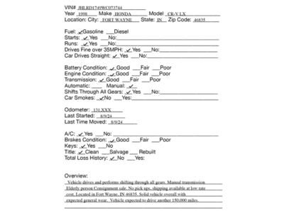 No Payment: If the deposit is not received within 24 hours of the close of the auction, or if the balance is not paid in full within 3 days following the close of the auction, we reserve the right to re-list the vehicle to the next highest bidder or another qualified buyer.