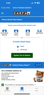 "PLEASE SCROLL TO BOTTOM OF LISTING AND CLICK "SEE FULL ITEM DESCRIPTION" TO VIEW ALL 50+ PHOTOS!!!" "I WILL HELP YOU ARRANGE SHIPPING AND WILL MATCH OR BEAT YOUR QUOTE" UP FOR SALE IS THIS VERY NICE 2013 HYUNDAI SONATA SE WITH ONLY 31K MILES, ONE OWNER, CLEAN CARFAX LOADED WITH NAVI/REAR CAMERA, SUNROOF, FLORIDA RUST FREE, NON-SMOKER AND PRICED TO SELL!!! THIS VEHICLE IS OVERALL IN GREAT CONDITION INSIDE AND OUT. THE EXTERIOR SHOWS NO MAJOR DENTS, DINGS OR SCRATCHES. THE INTERIOR ALSO SHOWS NO SIGNS OF ABUSE, (SEE ALL PICTURES FOR MORE DETAILS.) THE ENGINE RUNS STRONG AND THE TRANSMISSION IS SMOOTH. FEEL FREE TO CALL ME ANY TIME IF YOU LIKE TO MAKE A DEAL TODAY! THANK YOU FOR YOUR INTEREST IN THIS VEHICLE. 267-828-0460 Arsen Please keep in mind you are bidding on a pre-owned vehicle. Everyday driving can cause minor chips, dings or scratches on a vehicle. Unless otherwise noted in our photos or description these items are minimal but may exist in some cases. Our photos are designed to be a visual description of this vehicle, please look at them carefully and use them to make a confident decision to bid on our vehicle. Get a great vehicle at a great price!!! Bid Now! If you have any questions about this or any of my other listings, please feel free to contact me via e-mail at or you can call me at 267-828-0460 ask for Arsen. Thank you for your interests and we look forward to hearing from you...