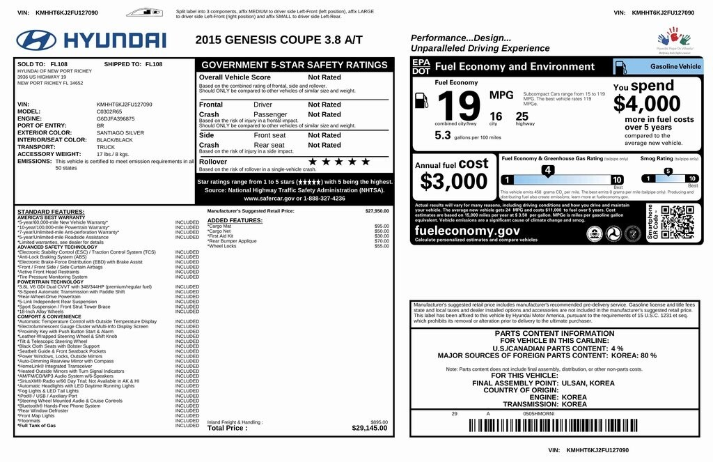 State or local taxes, title, license fee, processing fees, registration fee, dealer documentary fee, finance charges, emission testing fees, and compliance fees are additional to the advertised price.