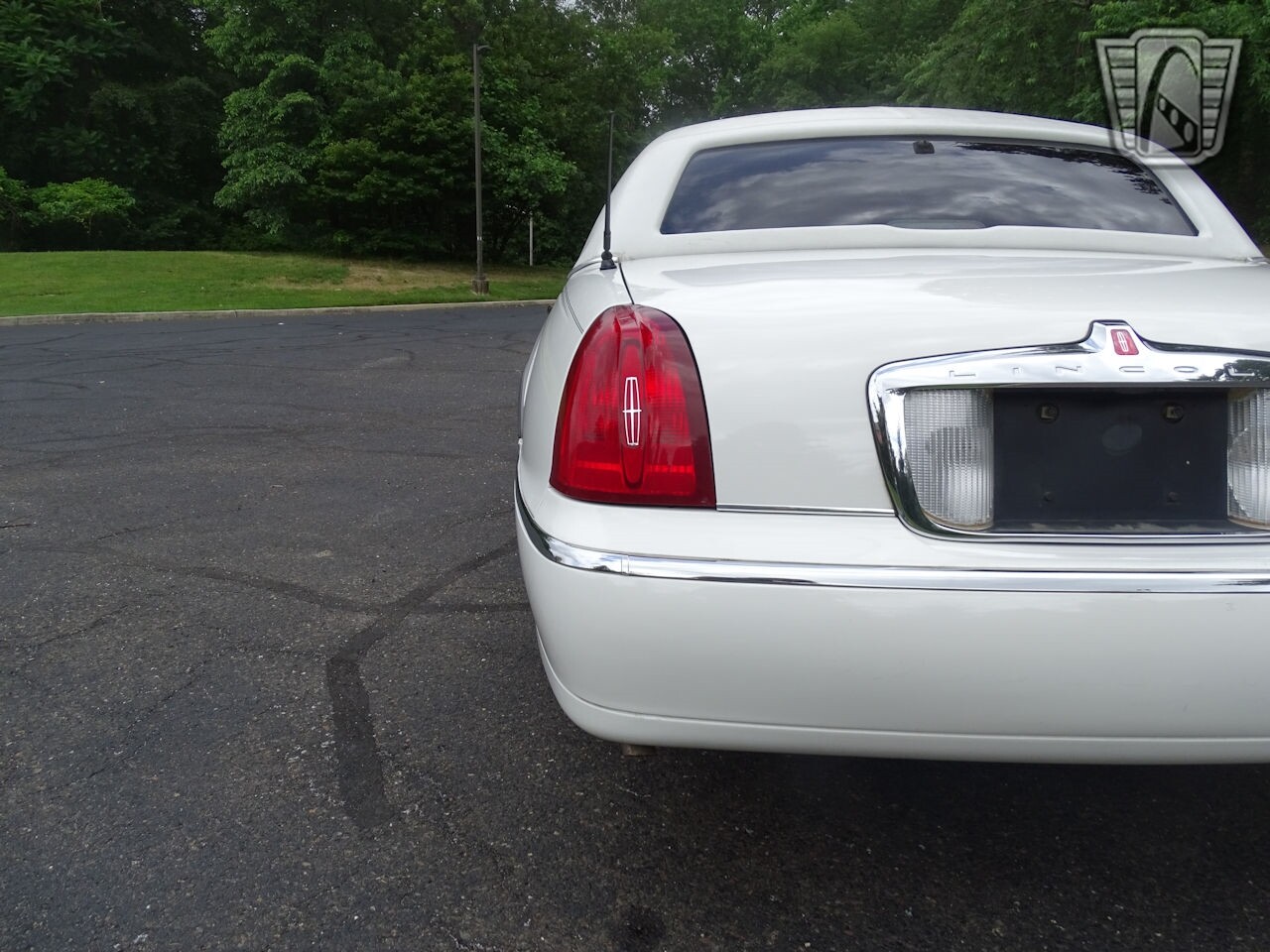 In summary, this 2001 Lincoln Town Car Executive Limo offers a blend of classic style, modern convenience, and reliable performance. Its white exterior and blue interior create a striking visual contrast, while the array of power features and amenities ensure a comfortable and enjoyable ride for all occupants..