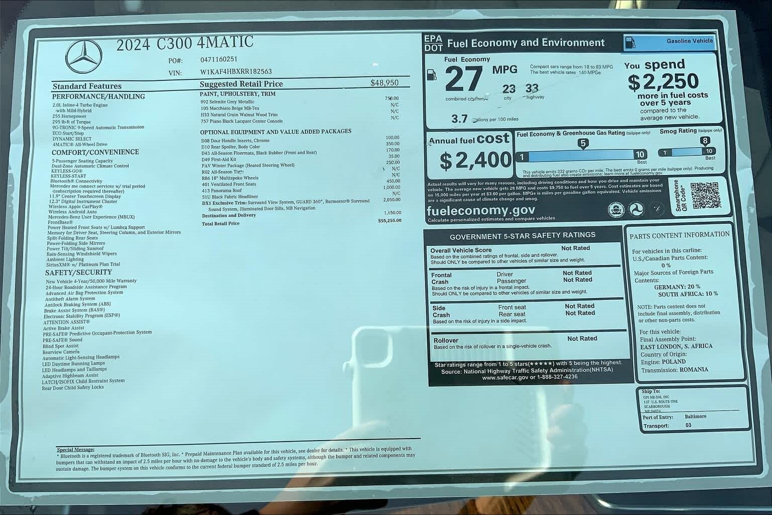 Exchange Privilege for 7 days or 500 miles, whichever comes first, Each Certified vehicle must pass a rigorous inspection of over 165 points, 24-Hour Roadside Assistance includes trip routing, trip interruption coverage and technical help, A network of over 300 Mercedes-Benz dealers will support your Certified Mercedes-Benz, Carfax Vehicle History Report, Balance of New Car Warranty plus 1 year/unlimited miles extended Limited Warranty