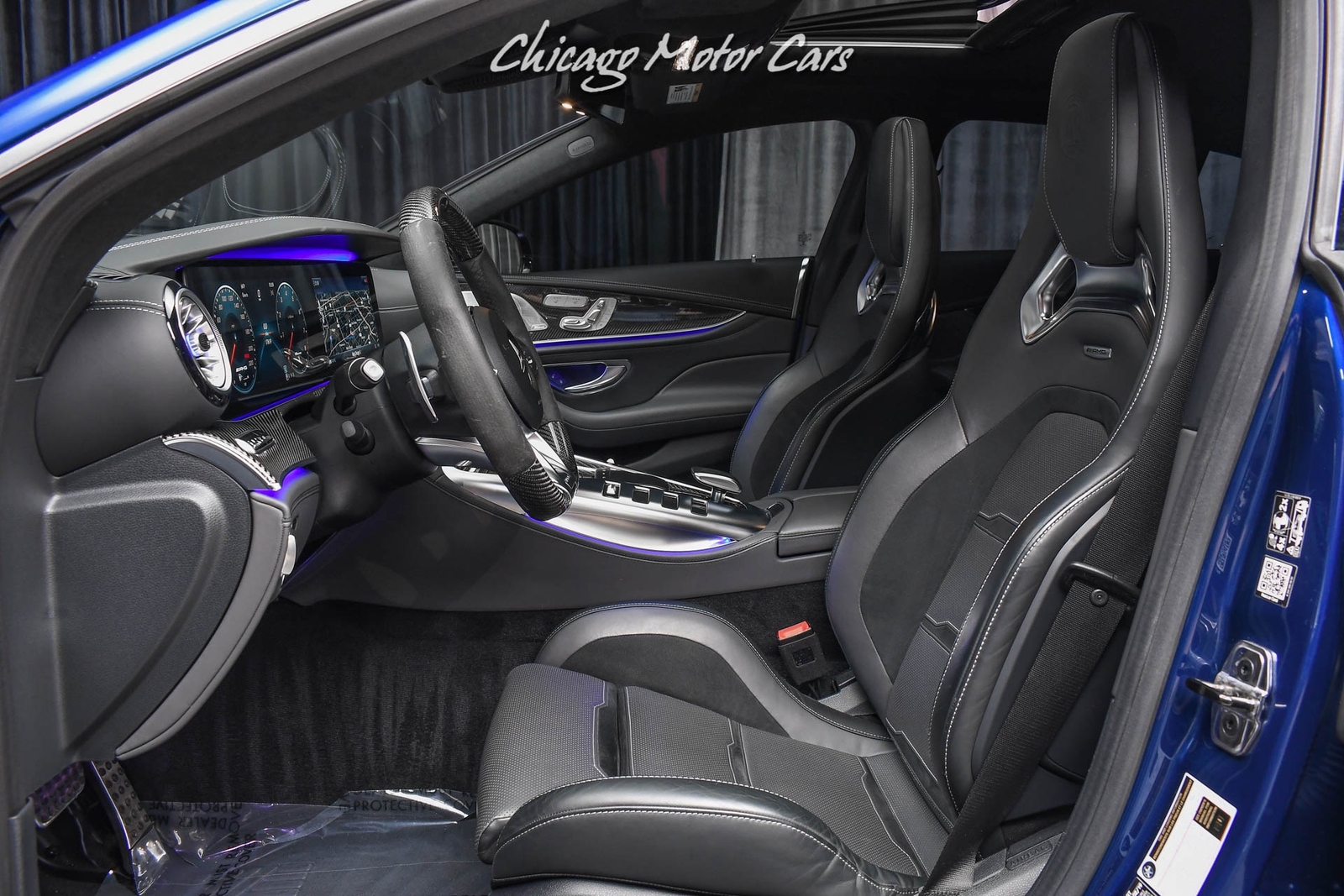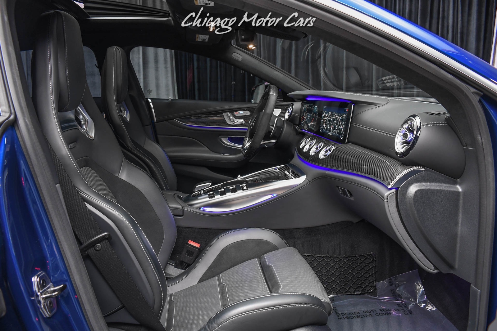 Brilliant Blue Metallic Exterior over AMG Magma Grey/Black Leather Interior