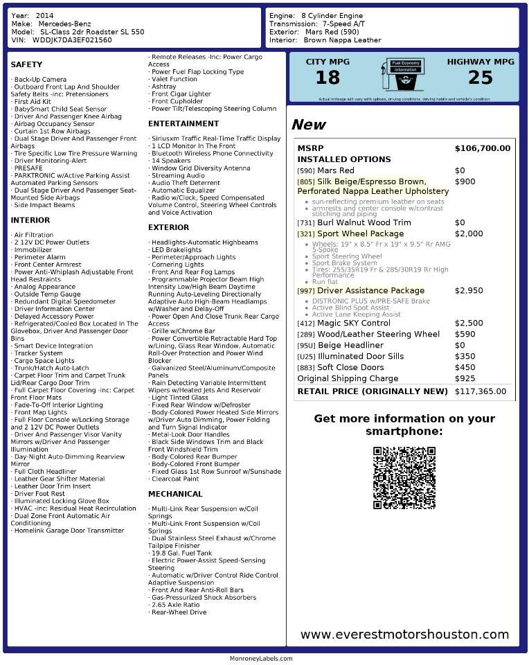 IN MAKE READY !!!PLEASE CALL ONE OF OUR SALES ASSOCIATES AT713-489-2380 FOR PERSONAL ASSISTANCE AND TO GET MORE INFORMATION ABOUT THIS VEHICLE.WE ARE LOCATED AT 12423 W SAM HOUSTON PKWY S HOUSTON TX 77031ADDITIONAL SIMILLAR UNITS IN STOCKTHIS VEHICLE QUALIFIES FOR EXTENDED WARRANTY STARTING AT $3990 HIGHLIGHTS:2014 MERCEDES-BENZ SL-CLASS SL 550VIN: WDDJK7DA3EF021560CONVERTIBLE4.6L V8 F DOHC 32VGASOLINEREAR WHEEL DRIVENO ACCIDENTS OR DAMAGE REPORTED TO CARFAXFront Cooled SeatFront Heated SeatTilt Steering ColumnTachometerCruise ControlAM/FM RadioTire Pressure MonitorSteering Wheel Mounted ControlsLeather Steering WheelRear Backup CameraBluetoothPower SteeringAir ConditioningKeyless EntryPower SeatsLeather SeatsPower MirrorsFog LightsPower LocksPower WindowsEngine: 4.6L V8Front CupholderRear Wheel DriveTire Specific Low Tire Pressure WarningLight Tinted GlassDual Zone Front Automatic Air Conditioning12V DC Power OutletsLED BrakelightsFade To Off Interior LightingOutside Temp GaugeFront Center ArmrestAND MANY MORE ... Important Notice to Our Valued Customers:We are pleased to inform you that all our vehicle inventory remained safe and undamaged during the recent Hurricane in the Houston area. At Everest Motors Inc. we prioritize the safety and quality of our vehicles. We also want to emphasize that we do not buy or sell flooded vehicles. You can shop with complete peace of mind knowing that our inventory is in great condition and free from flood damage.Thank you for your continued trust in us.Everest Motors Inc.Flying in to Houston to pick up your vehicle? For your convenience we offer FREE ride from IAH and HOU airports in Houston to our dealershipAll financial transactions should be completed within a reasonable period of time usually within six days after we receive the deposit.We accept and prefer PayPal deposit made to . We accept major credit cards and debit cards for $500.00 ONLY.***ALL DEPOSITS ARE NON-REFUNDABLE***All our Vehicles are sold as is where is with no warranty expressed written or implied. The Seller shall not be responsible for the correct description authenticity genuineness or defects herein and makes no warranty in connection therewith. No allowance or set a side will be made on account of any incorrectness imperfection defect or damage. Any descriptions or representations are for identification purposes only and are not to be construed as a warranty of any type. It is the responsibility of the buyer to have thoroughly inspected the vehicle and to have satisfied himself or herself as to the condition and value and to buy based upon that judgement solely. The seller shall and will make every reasonable effort to disclose any known defects associated with this vehicle at the buyer's request prior to the close of sale. Seller assumes no responsibility for any repairs regardless of any oral statements about the vehicle.All buyers are responsible to pay Texas V.I.T tax (Vehicle Inventory Tax). Which is 0.002018 of the purchase price (Example: $10000.00 purchase = $20.18) $225.00 documentary fee $5.00 buyers tag fee and a $295.00 dealer preparation fee Texas buyers must pay 6.25% sales tax plus $137.00 registration fee. Out-Of state buyers are responsible to pay their tax within 21 days of purchase.Everest Motors Inc Advantage Plus:For $795.00 customers will benefit from 3 Years Key replacement 3 Years Paint less Dent Removal and 3 Years Windshield Protection. Please go to Our Store/Terms to view the complete details. Everest Motors Inc Advantage Plus program will automatically make the customer eligible to receive an additional $500.00 trade-in coupon on their future trades and $250 referral check for every referred buyer that buys a vehicle from Everest Motors Inc. Everest Motors Inc Advantage Plus is a Nationwide Program and applies to every deal unless otherwise discussed with the customer. Visit Everest Motors Inc. online at to see more pictures of this vehicle or call us at713-489-2380 today to schedule your test drive.