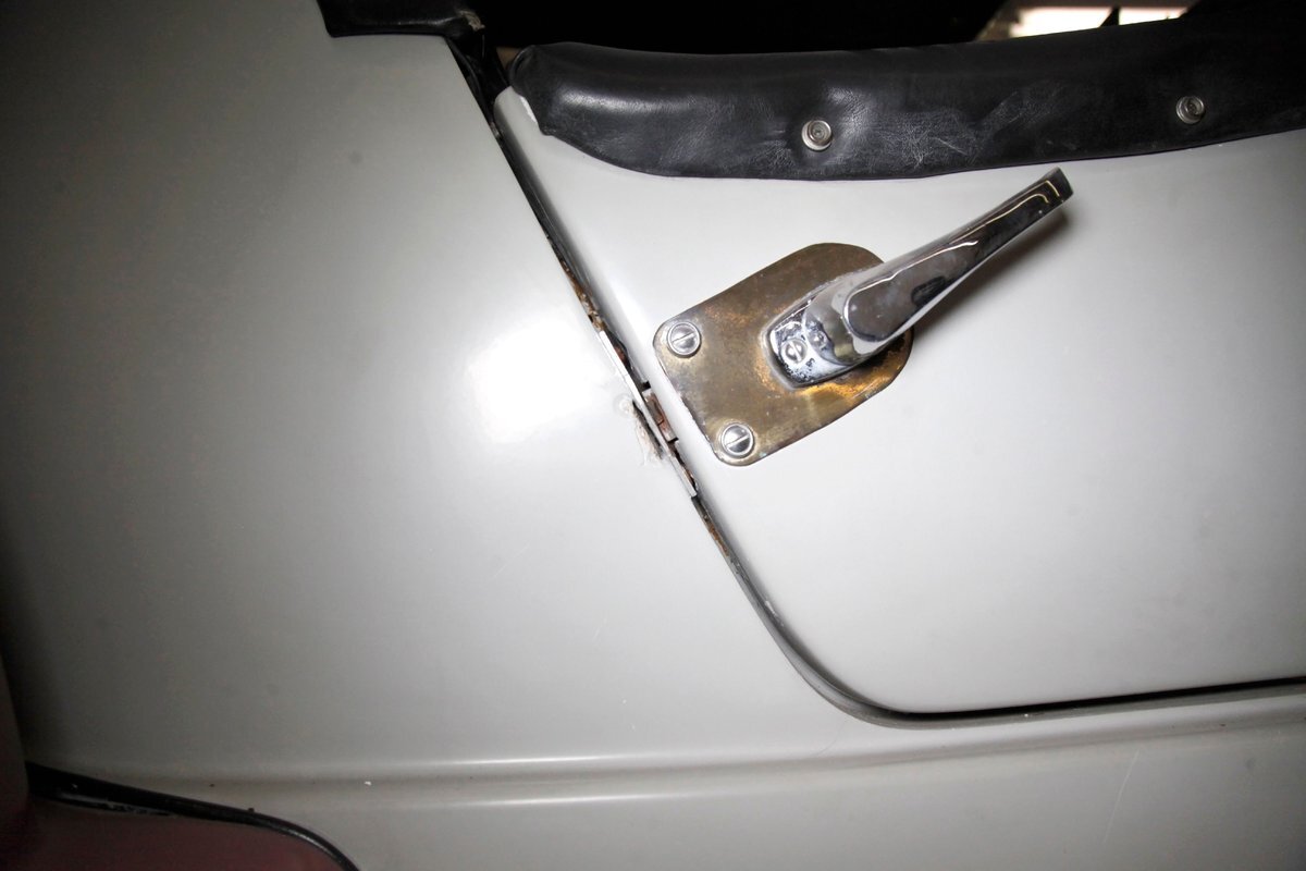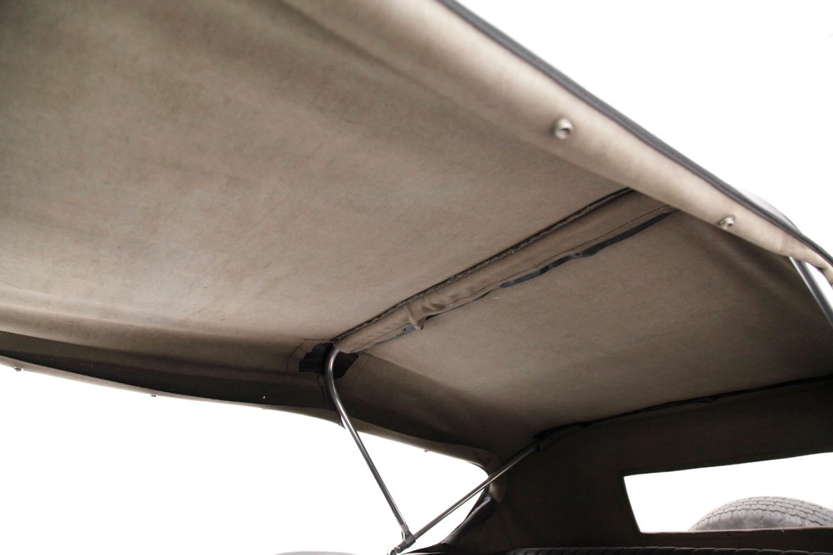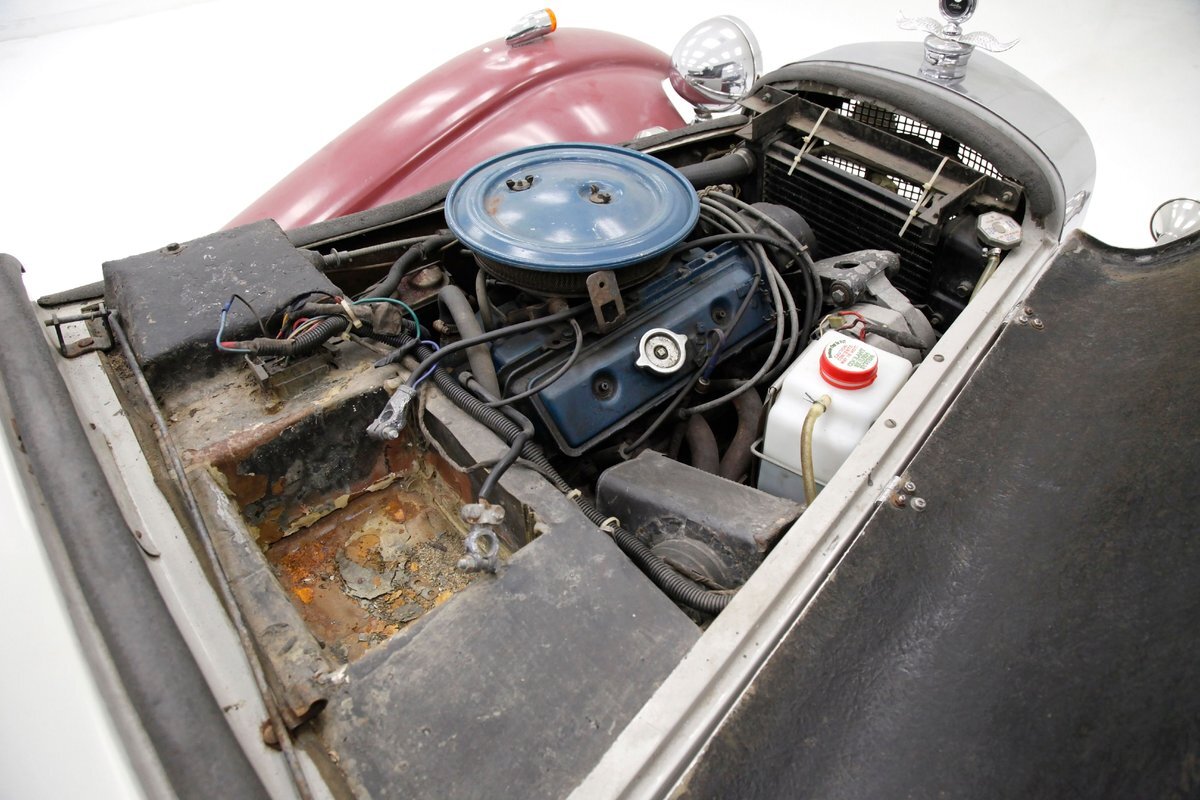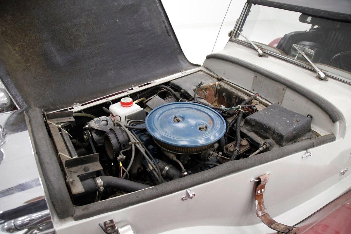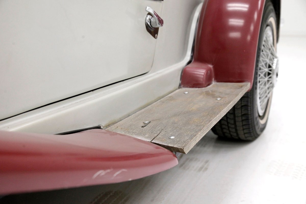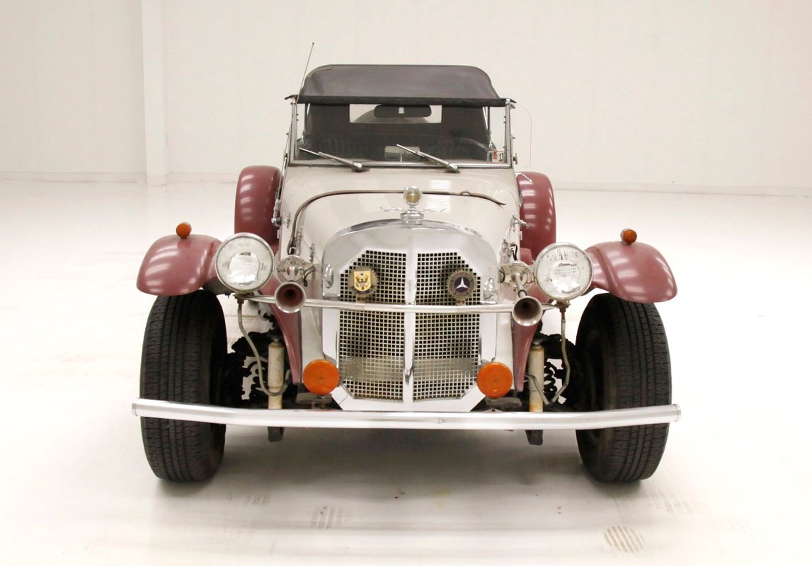 For a fiberglass kit car, fit and finish are remarkably good, with even door gaps, a snug-fitting trunk lid, and glossy paint that is familiar to anyone who has driven, built, or even seen another Gazelle. This one is highlighted by a 2 tone body in gray and maroon which draws attention and your eyes to the long hood wrapped in a leather belt and sweeping fenders. Other details like the chrome grille, rubber covered running boards, and chromed wire wheel covers, are all part of the vintage illusion and everything remains in very good condition. So you know the car was loved and treated right. And with a black canvas top, side wind wing windows and continental rear bumper complete with a wire wheel spare, looks the part of a wealthy aristocrat showing up at the club for dinner.