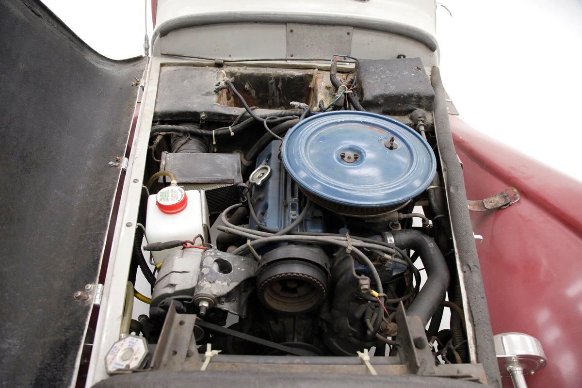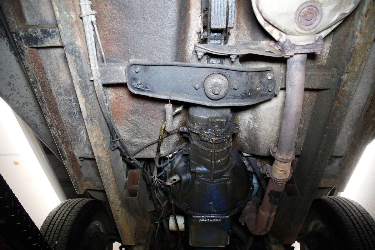 A1.6 Liter Inline 4 cylinder General Motors mill is stuffed under the side swinging hood. It's topped by a single 2-barrel carburetor and has a Saginaw 4-speed manual transmission on the back with a 10 bolt rear axle.