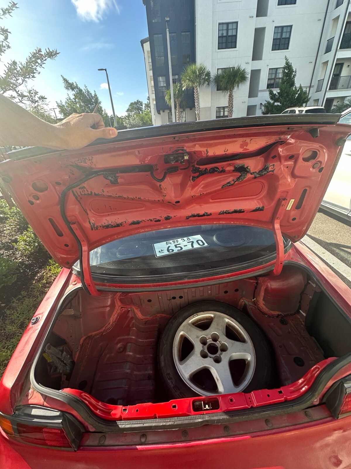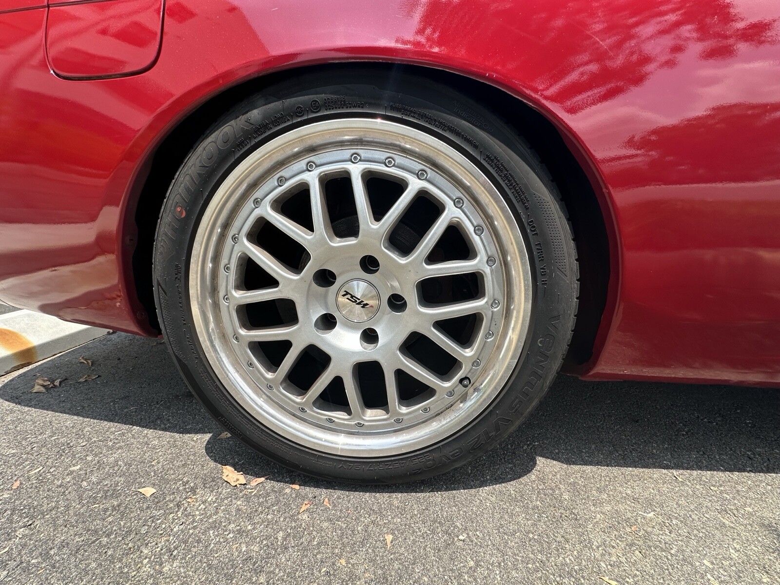 Has the KA24 motor. This one is turbocharged. 7-8 pounds of boost give this girl 260 whp. Sits on coilovers on TSW wheels. It has a Schwitzer Borgwarner turbo, welded diff, short shifter, Cobb shift knob, HKS blow off valve, all supporting mods for a turbo kit (injectors, intercooler, etc.) I have owned this car since I was 19. Only quality work has been done. All performance work was done with Countersteer LLC, a top 3 countrywide Nissan performance shop. The single stage paint can be buffed out. Front bumper has 1 coat of primer and 1 coat of single stage paint. Car is GTR Red. Mechanically, the car is in great shape. Needs a compressor for A/C to blow cold.