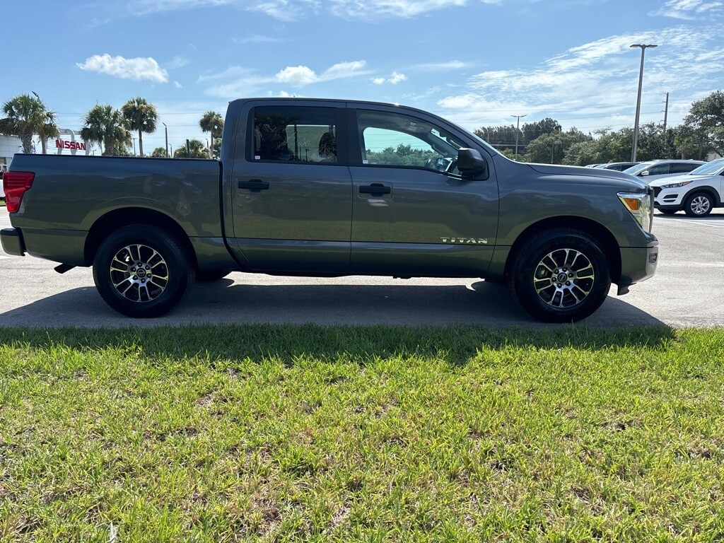 2023 Nissan Titan 4D Crew Cab Gun Metallic 9-Speed Automatic SV CARFAX One-Owner. Priced below KBB Fair Purchase Price! ALLOY WHEELS, BACKUP CAMERA, BLUETOOTH, APPLE ANDROID CARPLAY, PUSH BUTTON START, 3.69 Axle Ratio, 6 Speakers, Air Conditioning, Alloy wheels, AM/FM radio: SiriusXM, Bumpers: chrome, Carpet Floor Mats (DISC), Cloth Seat Trim w/Vinyl Bolsters, Driver door bin, Driver vanity mirror, Drop In Bed Liner, Front Center Armrest w/Storage, Front reading lights, Front Split Bench Seat (40/20/40), Heated door mirrors, Illuminated entry, NissanConnect featuring Apple CarPlay and Android Auto, Passenger door bin, Passenger vanity mirror, Power door mirrors, Power steering, Power windows, Radio data system, Radio: NissanConnect AM/FM, Rear reading lights, Rear seat center armrest, Rear step bumper, Rear window defroster, Remote keyless entry, Speed-Sensitive Wipers, Split folding rear seat, Steering wheel mounted audio controls, Tachometer, Telescoping steering wheel, Tilt steering wheel, Trip computer, Variably intermittent wipers, Voltmeter, Wheels: 18 x 8 Painted & Machined Alloy. RWD 5.6L V8 DOHC 32V 400hp