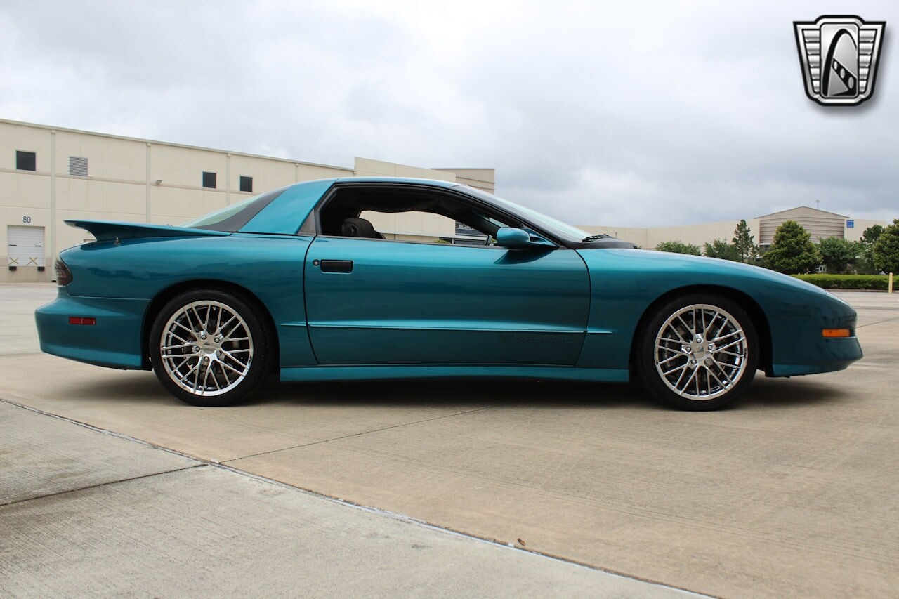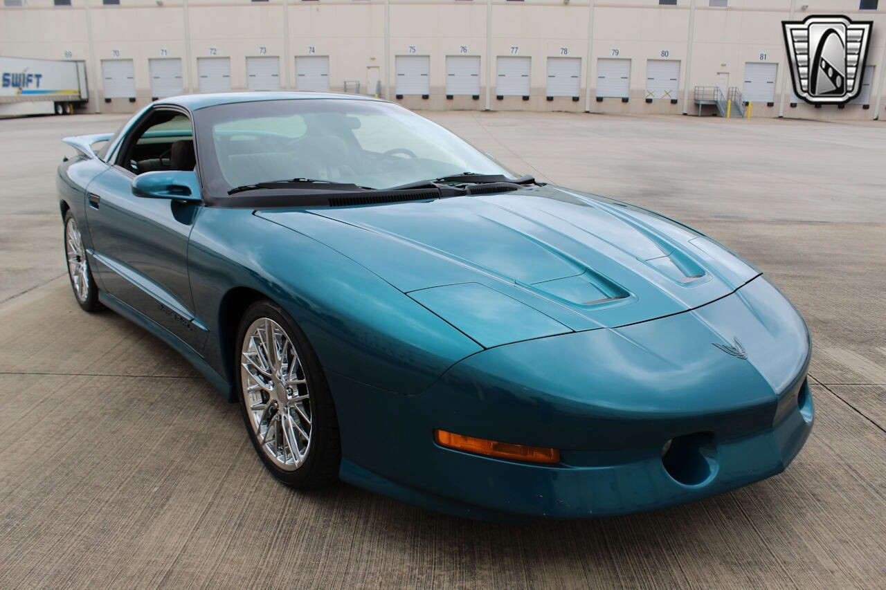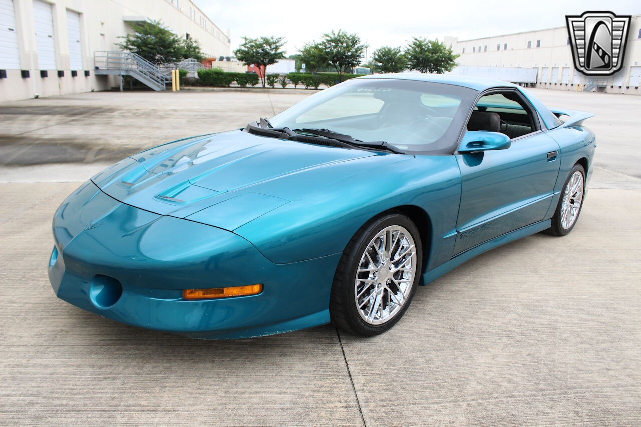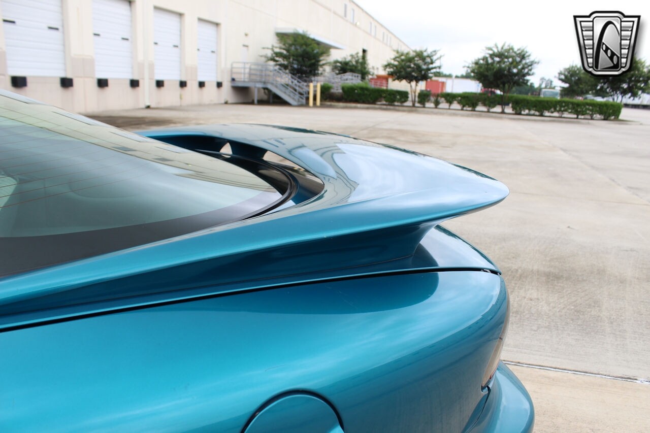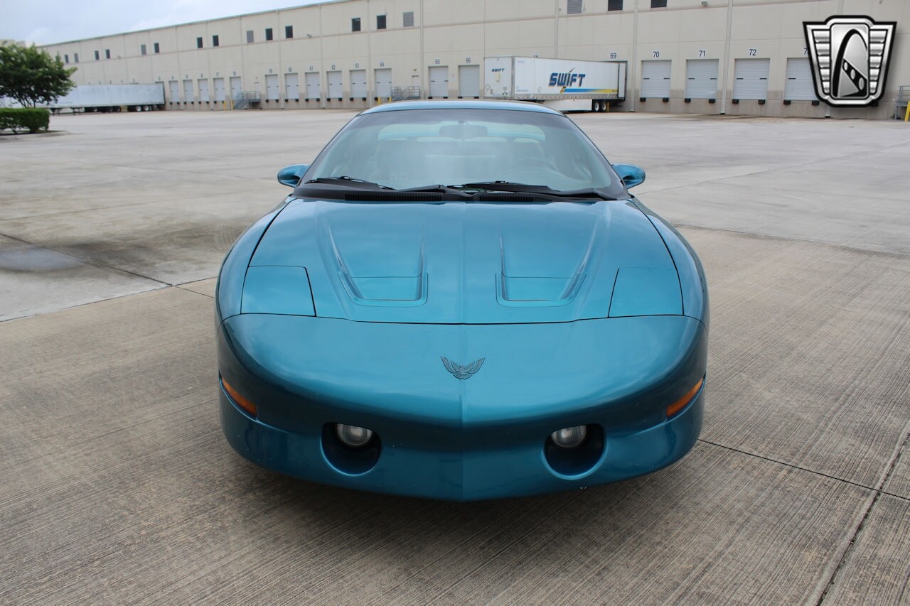 Gateway Classic Cars Houston showroom is proud to offer this wicked 1994 Pontiac Trans Am for sale. Bathed in a gorgeous shade of metallic Teal, this car looks like a big boy's Hot Wheels! But, if you think it looks good in its teal-over-gray cloth interior, open the hood and you'll revel in the gorgeous contrasting high energy orange engine bay, giving it that show car look. We'll give you a bullet list of the specs but suffice it to say that this '94 Trans Am has one of the most sophisticated "live axle" vehicle suspensions around, until you get to a pure Trans-Am Racing Series purpose-built racing car (which, obviously, you're not driving to a car show in). [ omitted ]. What you'll feel is that this car corners like a slot car, even when the pavement gets a little "hiccupy" (made that word up, but you know what we mean). These Gen 4 F-bodies can be tricky in mildly bumpy curves when equipped with a stiff, lowered suspension, but the Watt's Link keeps that rear from getting squirrely when the road is bumpy or undulating. If you like to go around corners so hard that you bang your (and your passengers') head(s) on the windows, this hot '94 Trans Am is THE ticket. Combine the suspension with some super gummy BFG G-force Rival T/A meats, and Corvette big brakes, and you can bet you could shake some fillings loose in folks' molars. Advice: grab some airline vomit bags next time you fly and put them in your glove box for your front passenger: those Schroth multi-point harnesses will keep front seat occupants firmly secured in the seats at all times. So well, in fact, that no one will be able to lean out the window mid-race and spray the car behind you. But that's a good thing, of course! Don't miss out on such a brilliantly put together track car that you can still legally drive to the car show! And now for the rest of the goodies: