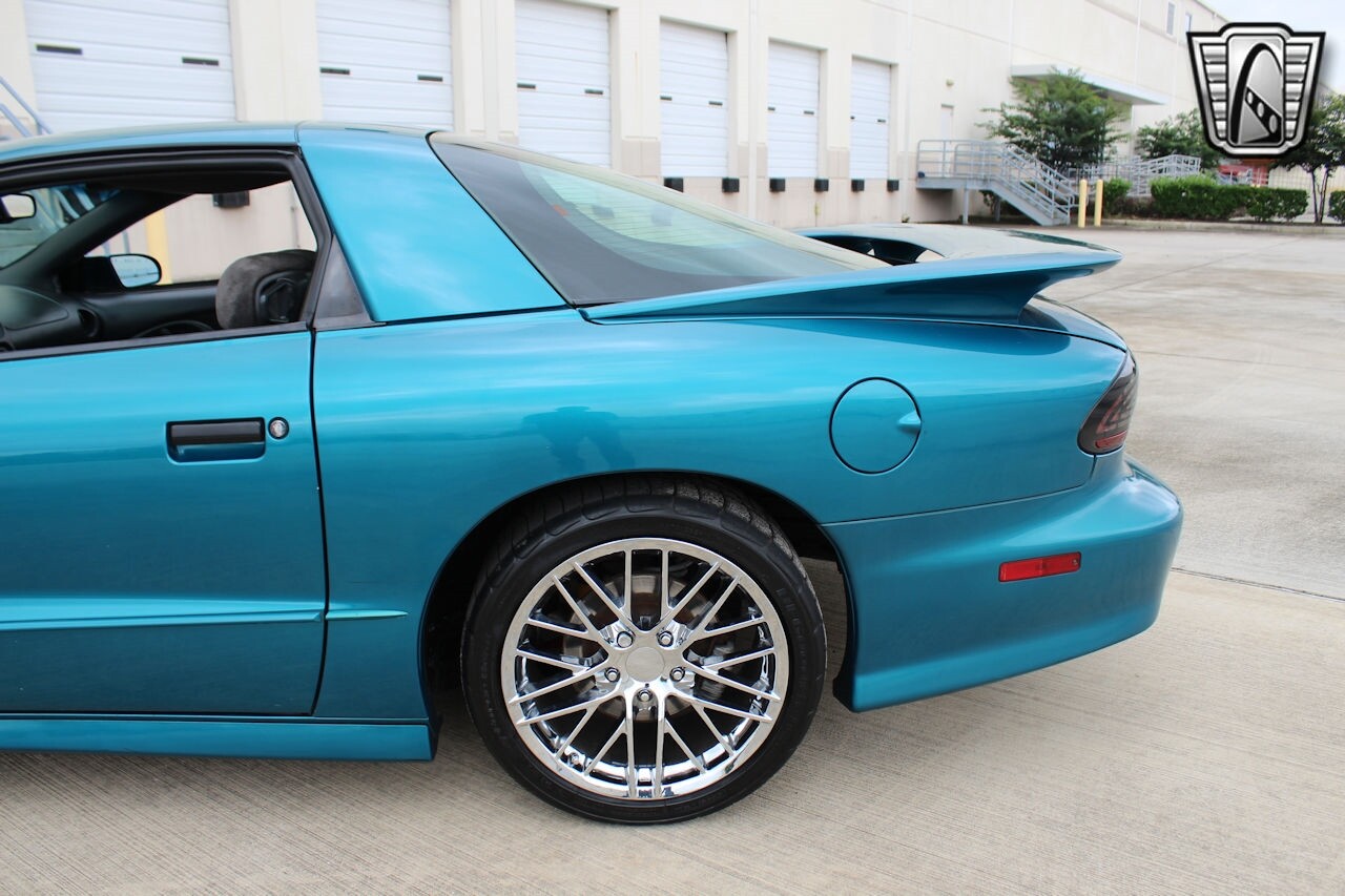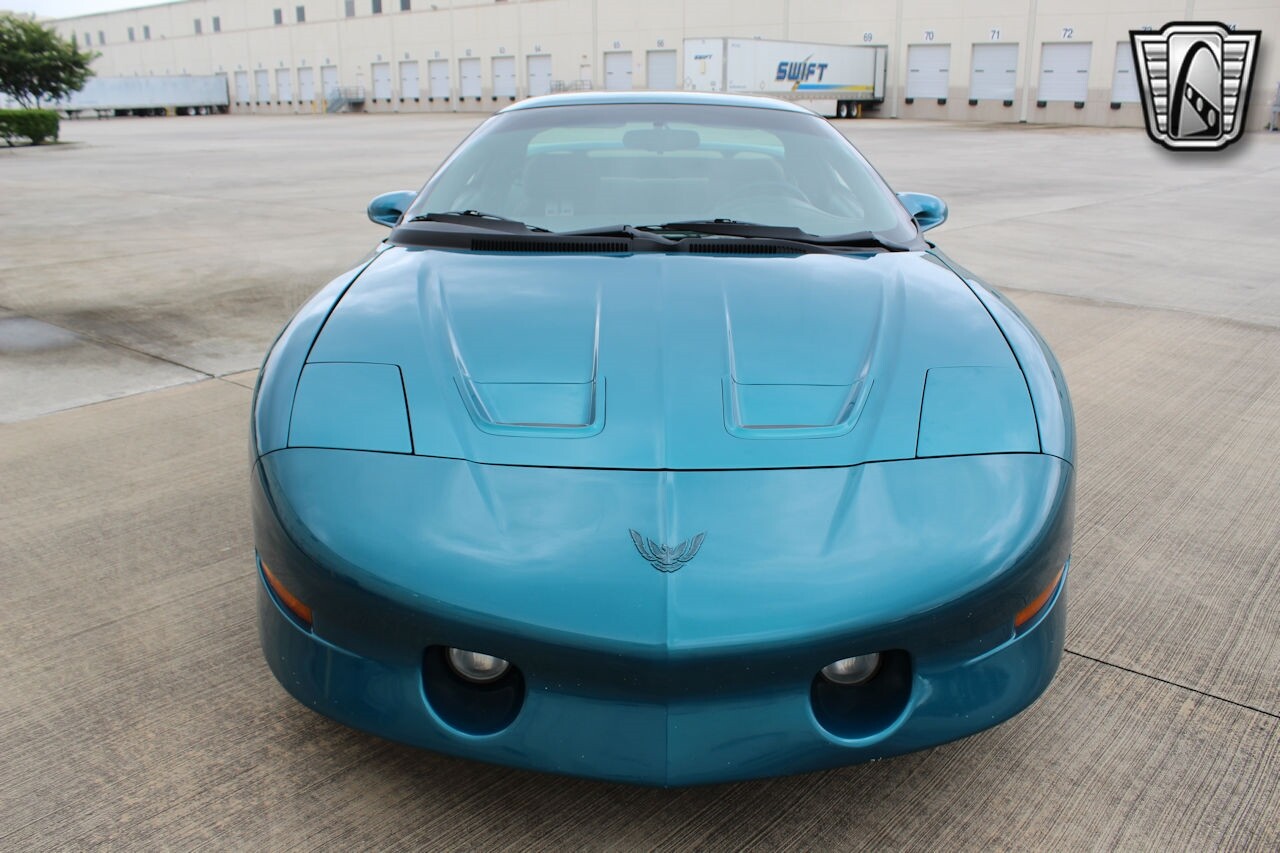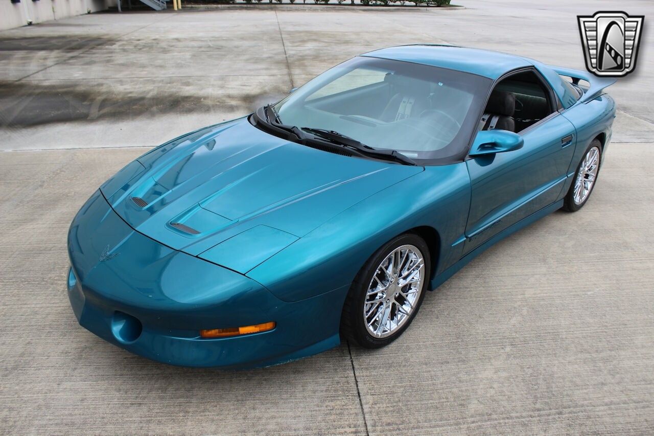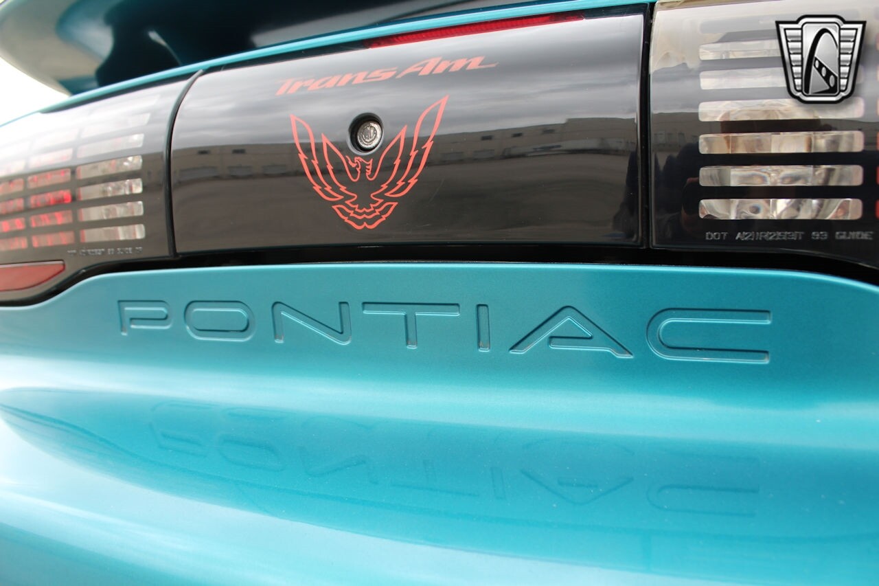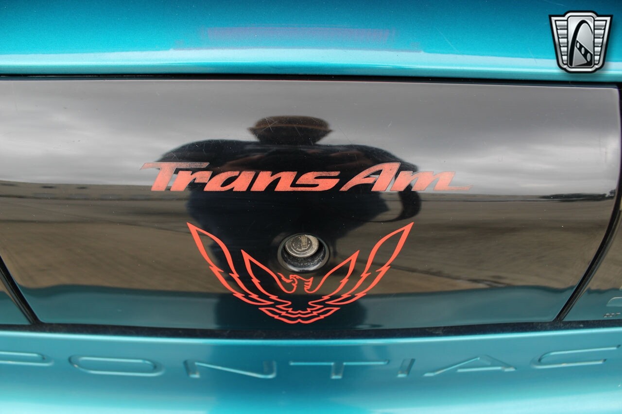 Gateway Classic Cars Houston showroom is proud to offer this wicked 1994 Pontiac Trans Am for sale. Bathed in a gorgeous shade of metallic Teal, this car looks like a big boy's Hot Wheels! But, if you think it looks good in its teal-over-gray cloth interior, open the hood and you'll revel in the gorgeous contrasting high energy orange engine bay, giving it that show car look. We'll give you a bullet list of the specs but suffice it to say that this '94 Trans Am has one of the most sophisticated "live axle" vehicle suspensions around, until you get to a pure Trans-Am Racing Series purpose-built racing car (which, obviously, you're not driving to a car show in). [ omitted ]. What you'll feel is that this car corners like a slot car, even when the pavement gets a little "hiccupy" (made that word up, but you know what we mean). These Gen 4 F-bodies can be tricky in mildly bumpy curves when equipped with a stiff, lowered suspension, but the Watt's Link keeps that rear from getting squirrely when the road is bumpy or undulating. If you like to go around corners so hard that you bang your (and your passengers') head(s) on the windows, this hot '94 Trans Am is THE ticket. Combine the suspension with some super gummy BFG G-force Rival T/A meats, and Corvette big brakes, and you can bet you could shake some fillings loose in folks' molars. Advice: grab some airline vomit bags next time you fly and put them in your glove box for your front passenger: those Schroth multi-point harnesses will keep front seat occupants firmly secured in the seats at all times. So well, in fact, that no one will be able to lean out the window mid-race and spray the car behind you. But that's a good thing, of course! Don't miss out on such a brilliantly put together track car that you can still legally drive to the car show! And now for the rest of the goodies: