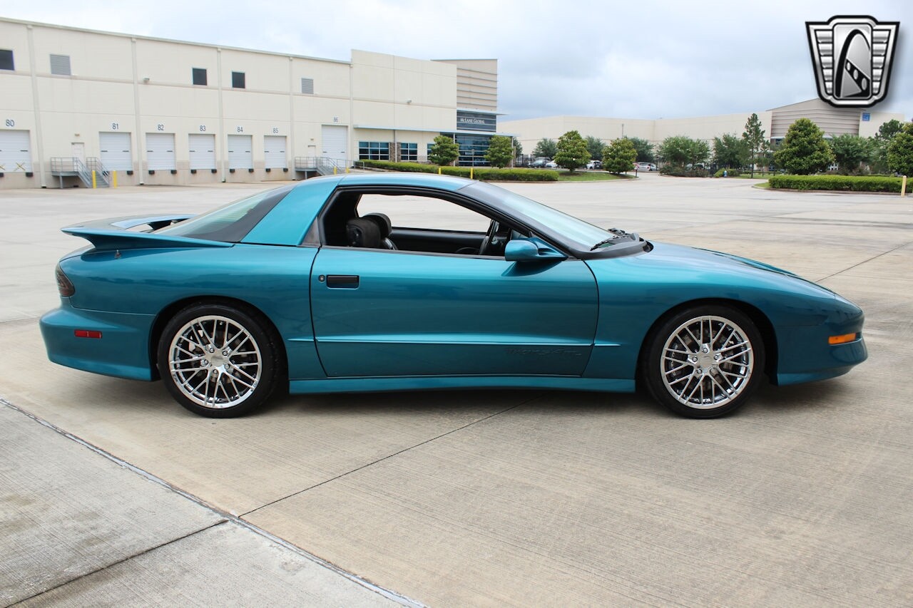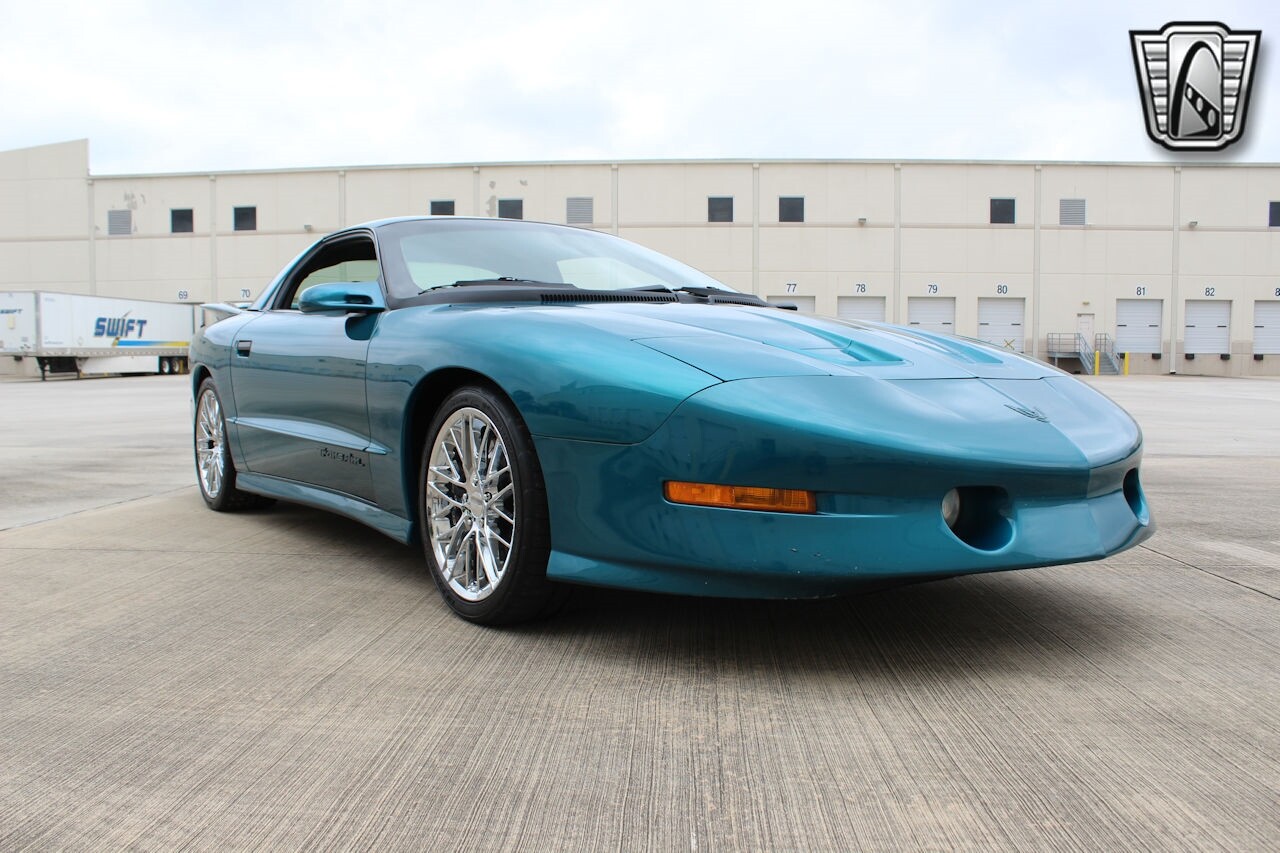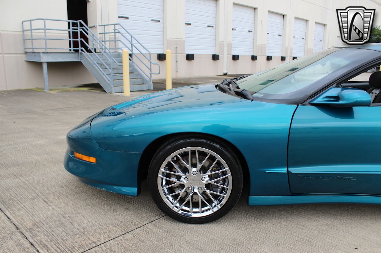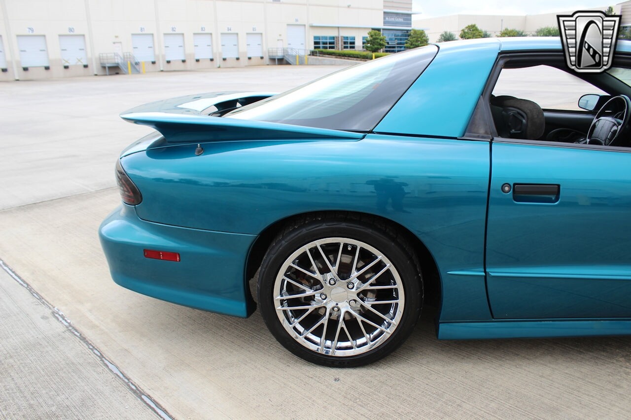 Gateway Classic Cars Houston showroom is proud to offer this wicked 1994 Pontiac Trans Am for sale. Bathed in a gorgeous shade of metallic Teal, this car looks like a big boy's Hot Wheels! But, if you think it looks good in its teal-over-gray cloth interior, open the hood and you'll revel in the gorgeous contrasting high energy orange engine bay, giving it that show car look. We'll give you a bullet list of the specs but suffice it to say that this '94 Trans Am has one of the most sophisticated "live axle" vehicle suspensions around, until you get to a pure Trans-Am Racing Series purpose-built racing car (which, obviously, you're not driving to a car show in). [ omitted ]. What you'll feel is that this car corners like a slot car, even when the pavement gets a little "hiccupy" (made that word up, but you know what we mean). These Gen 4 F-bodies can be tricky in mildly bumpy curves when equipped with a stiff, lowered suspension, but the Watt's Link keeps that rear from getting squirrely when the road is bumpy or undulating. If you like to go around corners so hard that you bang your (and your passengers') head(s) on the windows, this hot '94 Trans Am is THE ticket. Combine the suspension with some super gummy BFG G-force Rival T/A meats, and Corvette big brakes, and you can bet you could shake some fillings loose in folks' molars. Advice: grab some airline vomit bags next time you fly and put them in your glove box for your front passenger: those Schroth multi-point harnesses will keep front seat occupants firmly secured in the seats at all times. So well, in fact, that no one will be able to lean out the window mid-race and spray the car behind you. But that's a good thing, of course! Don't miss out on such a brilliantly put together track car that you can still legally drive to the car show! And now for the rest of the goodies: