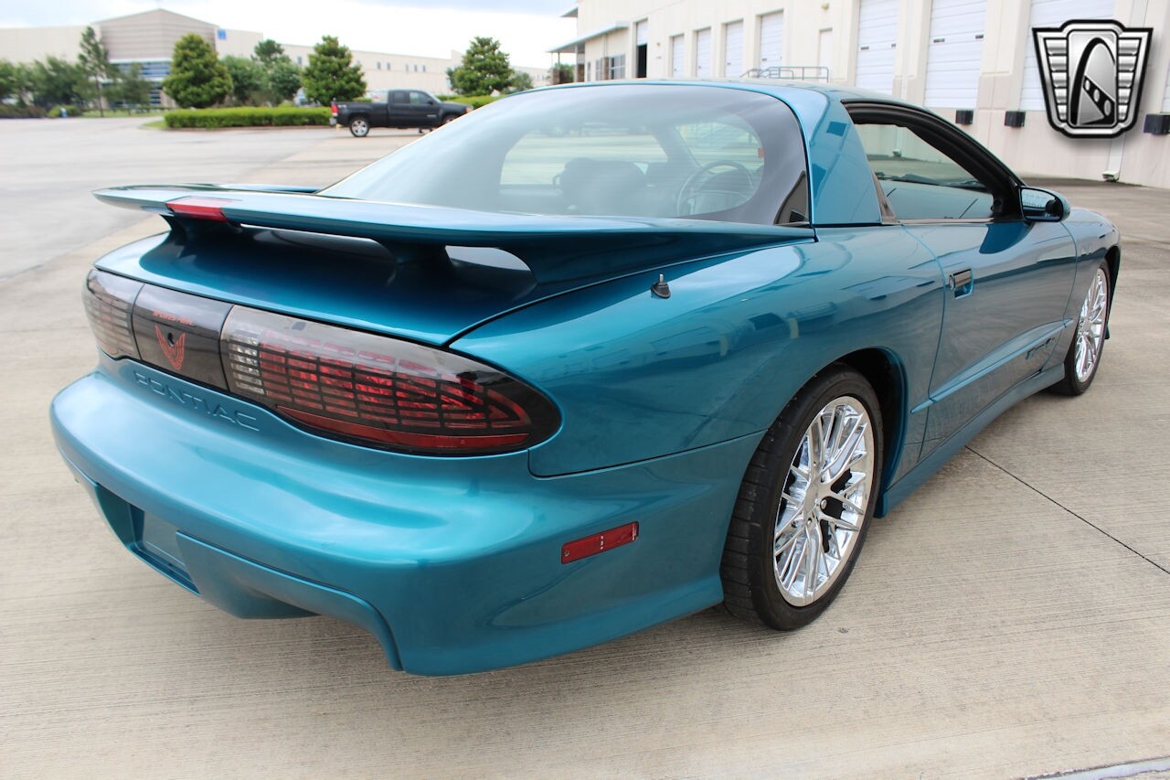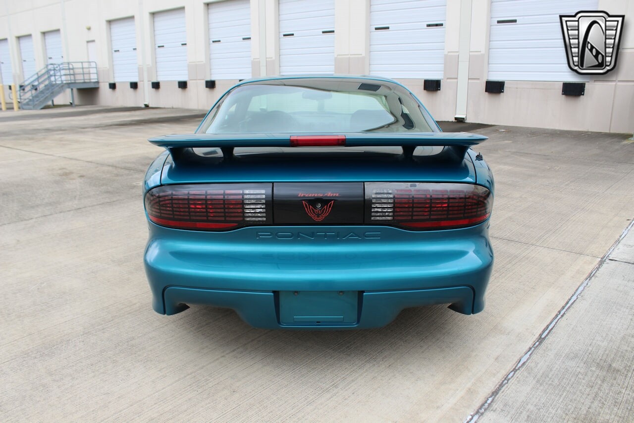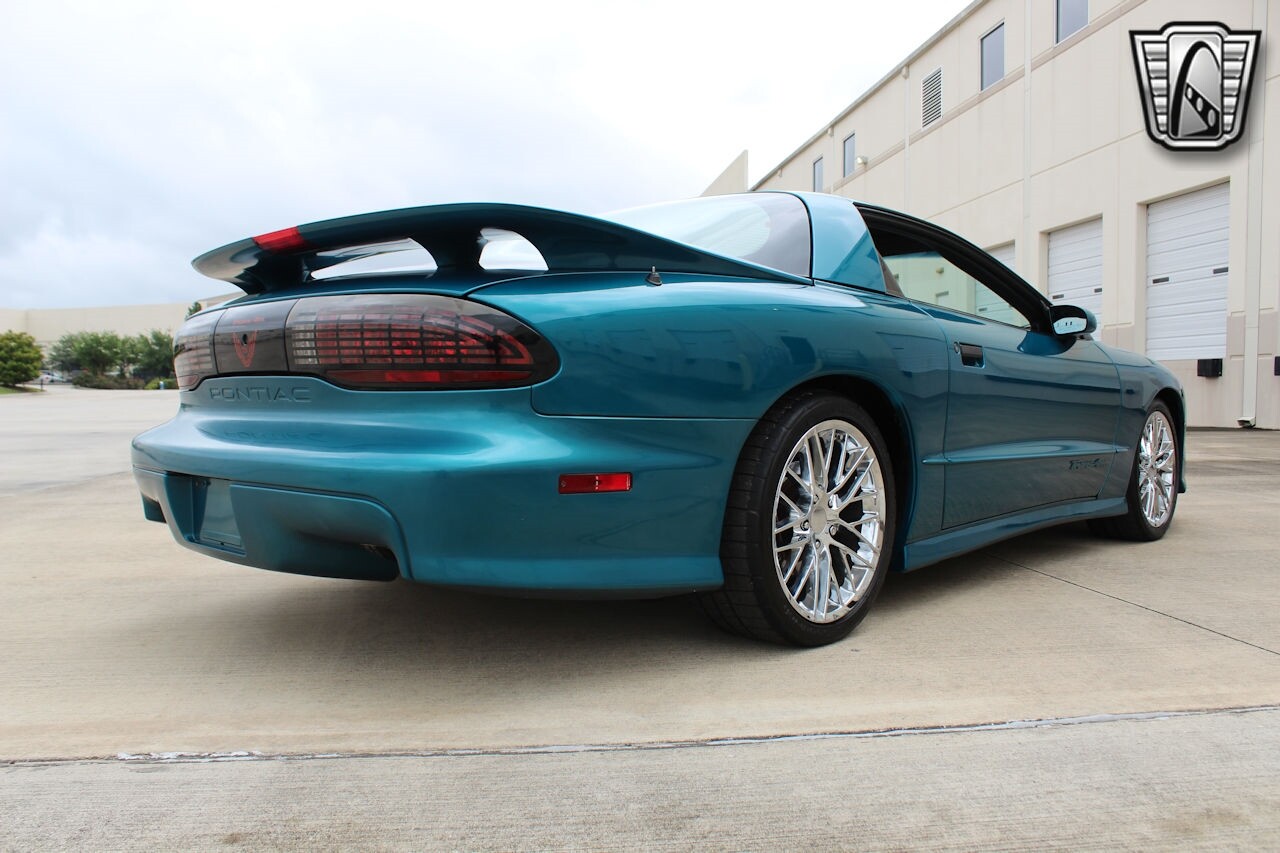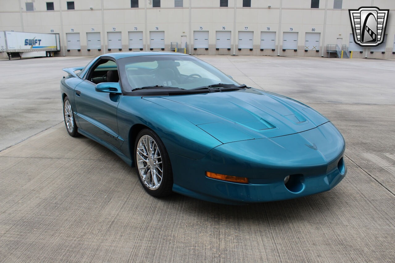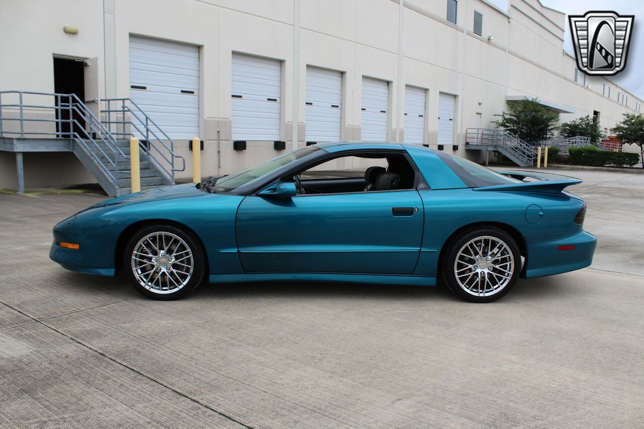 Gateway Classic Cars Houston showroom is proud to offer this wicked 1994 Pontiac Trans Am for sale. Bathed in a gorgeous shade of metallic Teal, this car looks like a big boy's Hot Wheels! But, if you think it looks good in its teal-over-gray cloth interior, open the hood and you'll revel in the gorgeous contrasting high energy orange engine bay, giving it that show car look. We'll give you a bullet list of the specs but suffice it to say that this '94 Trans Am has one of the most sophisticated "live axle" vehicle suspensions around, until you get to a pure Trans-Am Racing Series purpose-built racing car (which, obviously, you're not driving to a car show in). [ omitted ]. What you'll feel is that this car corners like a slot car, even when the pavement gets a little "hiccupy" (made that word up, but you know what we mean). These Gen 4 F-bodies can be tricky in mildly bumpy curves when equipped with a stiff, lowered suspension, but the Watt's Link keeps that rear from getting squirrely when the road is bumpy or undulating. If you like to go around corners so hard that you bang your (and your passengers') head(s) on the windows, this hot '94 Trans Am is THE ticket. Combine the suspension with some super gummy BFG G-force Rival T/A meats, and Corvette big brakes, and you can bet you could shake some fillings loose in folks' molars. Advice: grab some airline vomit bags next time you fly and put them in your glove box for your front passenger: those Schroth multi-point harnesses will keep front seat occupants firmly secured in the seats at all times. So well, in fact, that no one will be able to lean out the window mid-race and spray the car behind you. But that's a good thing, of course! Don't miss out on such a brilliantly put together track car that you can still legally drive to the car show! And now for the rest of the goodies: