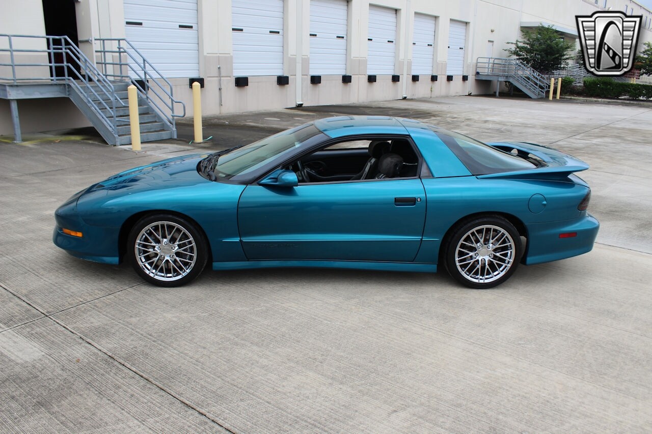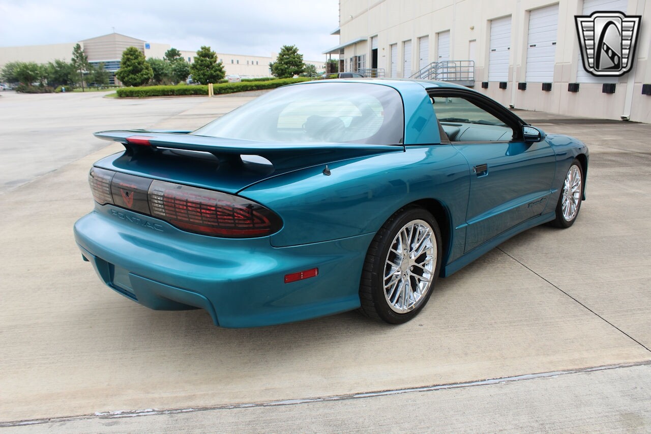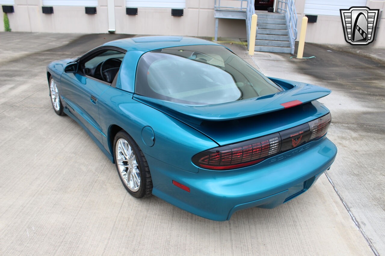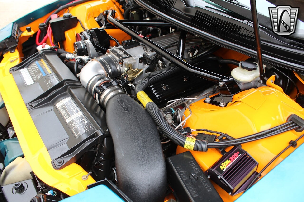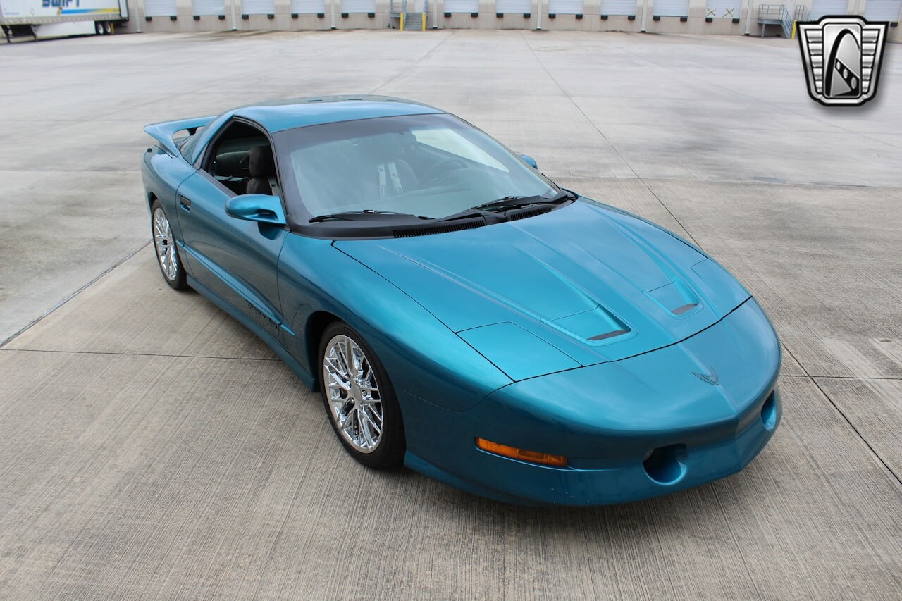 Gateway Classic Cars Houston showroom is proud to offer this wicked 1994 Pontiac Trans Am for sale. Bathed in a gorgeous shade of metallic Teal, this car looks like a big boy's Hot Wheels! But, if you think it looks good in its teal-over-gray cloth interior, open the hood and you'll revel in the gorgeous contrasting high energy orange engine bay, giving it that show car look. We'll give you a bullet list of the specs but suffice it to say that this '94 Trans Am has one of the most sophisticated "live axle" vehicle suspensions around, until you get to a pure Trans-Am Racing Series purpose-built racing car (which, obviously, you're not driving to a car show in). [ omitted ]. What you'll feel is that this car corners like a slot car, even when the pavement gets a little "hiccupy" (made that word up, but you know what we mean). These Gen 4 F-bodies can be tricky in mildly bumpy curves when equipped with a stiff, lowered suspension, but the Watt's Link keeps that rear from getting squirrely when the road is bumpy or undulating. If you like to go around corners so hard that you bang your (and your passengers') head(s) on the windows, this hot '94 Trans Am is THE ticket. Combine the suspension with some super gummy BFG G-force Rival T/A meats, and Corvette big brakes, and you can bet you could shake some fillings loose in folks' molars. Advice: grab some airline vomit bags next time you fly and put them in your glove box for your front passenger: those Schroth multi-point harnesses will keep front seat occupants firmly secured in the seats at all times. So well, in fact, that no one will be able to lean out the window mid-race and spray the car behind you. But that's a good thing, of course! Don't miss out on such a brilliantly put together track car that you can still legally drive to the car show! And now for the rest of the goodies: