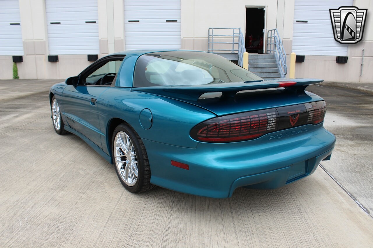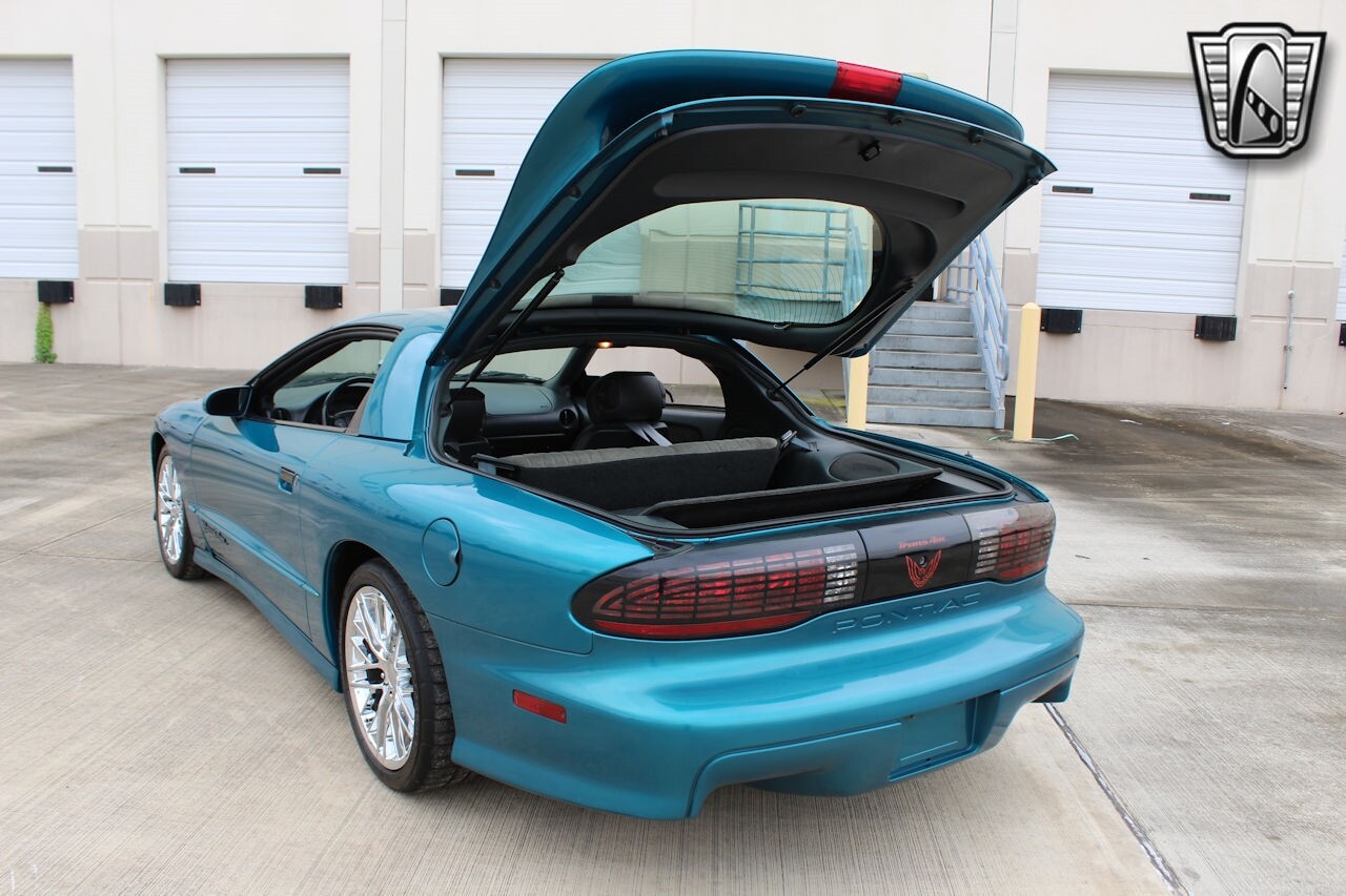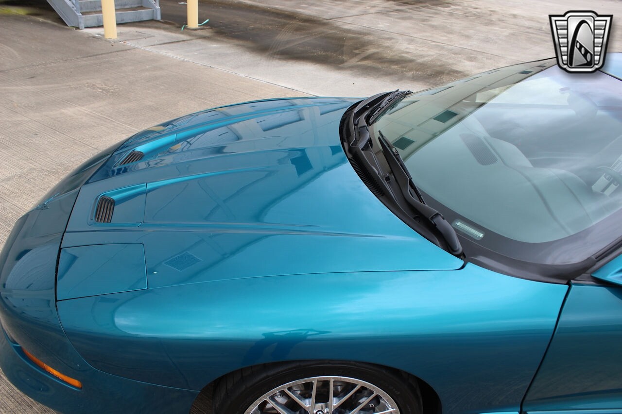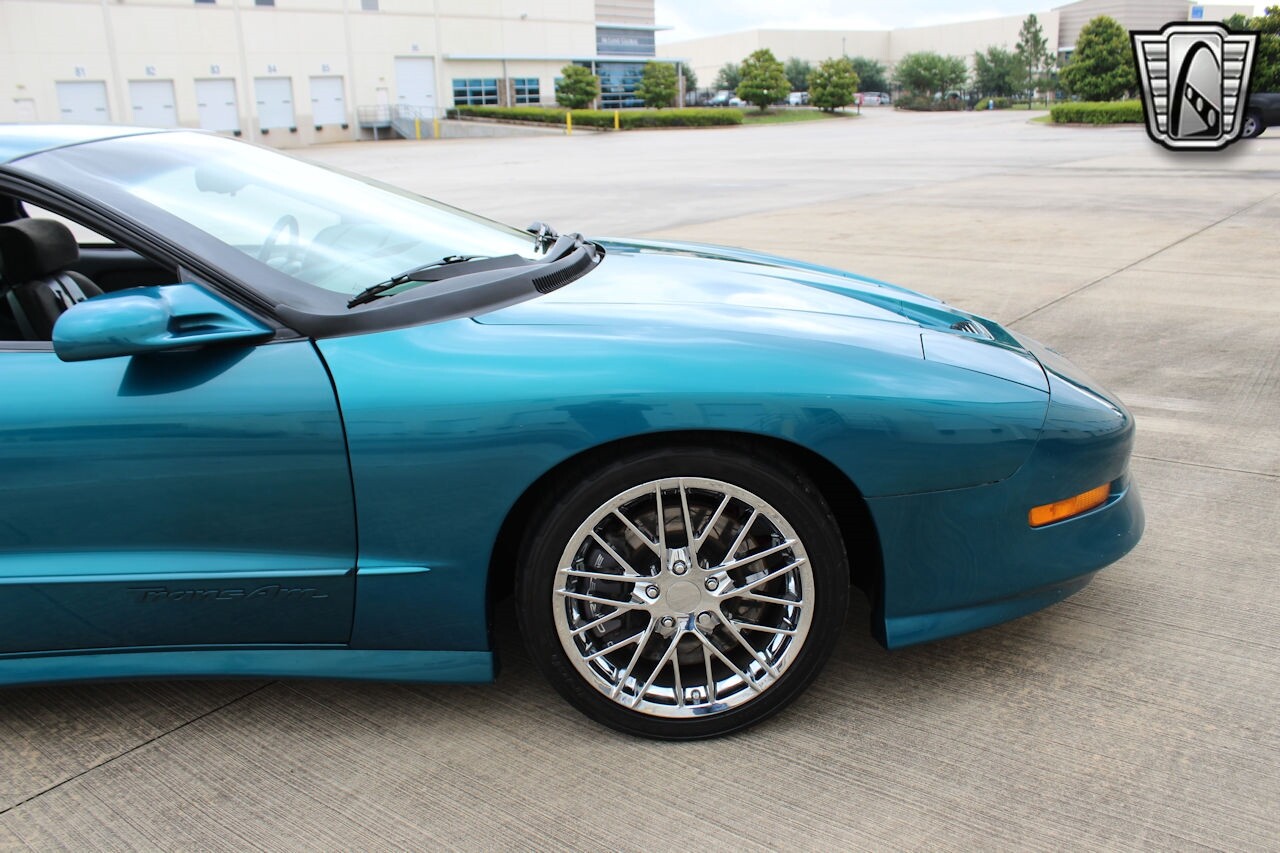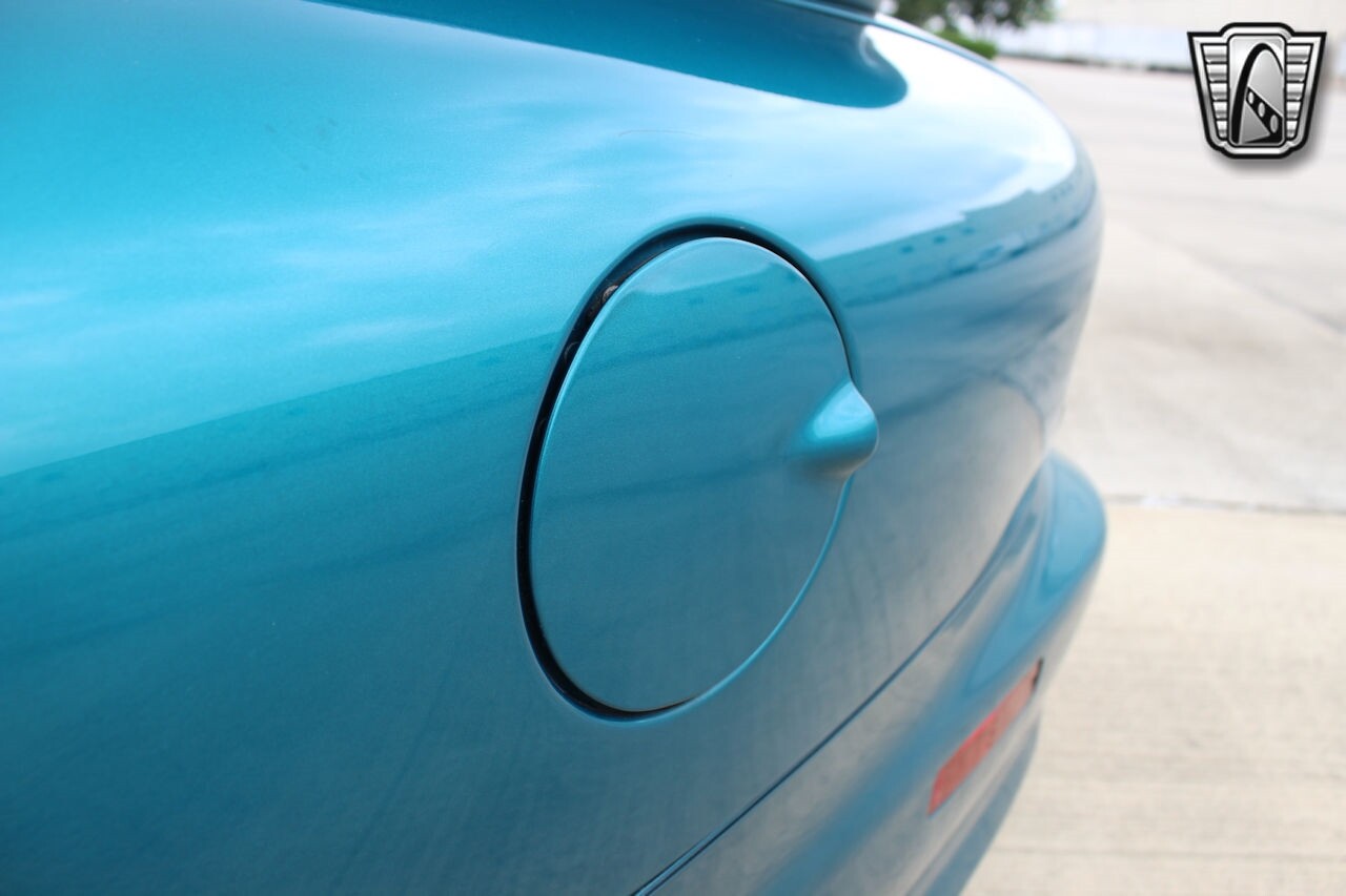 Gateway Classic Cars Houston showroom is proud to offer this wicked 1994 Pontiac Trans Am for sale. Bathed in a gorgeous shade of metallic Teal, this car looks like a big boy's Hot Wheels! But, if you think it looks good in its teal-over-gray cloth interior, open the hood and you'll revel in the gorgeous contrasting high energy orange engine bay, giving it that show car look. We'll give you a bullet list of the specs but suffice it to say that this '94 Trans Am has one of the most sophisticated "live axle" vehicle suspensions around, until you get to a pure Trans-Am Racing Series purpose-built racing car (which, obviously, you're not driving to a car show in). [ omitted ]. What you'll feel is that this car corners like a slot car, even when the pavement gets a little "hiccupy" (made that word up, but you know what we mean). These Gen 4 F-bodies can be tricky in mildly bumpy curves when equipped with a stiff, lowered suspension, but the Watt's Link keeps that rear from getting squirrely when the road is bumpy or undulating. If you like to go around corners so hard that you bang your (and your passengers') head(s) on the windows, this hot '94 Trans Am is THE ticket. Combine the suspension with some super gummy BFG G-force Rival T/A meats, and Corvette big brakes, and you can bet you could shake some fillings loose in folks' molars. Advice: grab some airline vomit bags next time you fly and put them in your glove box for your front passenger: those Schroth multi-point harnesses will keep front seat occupants firmly secured in the seats at all times. So well, in fact, that no one will be able to lean out the window mid-race and spray the car behind you. But that's a good thing, of course! Don't miss out on such a brilliantly put together track car that you can still legally drive to the car show! And now for the rest of the goodies: