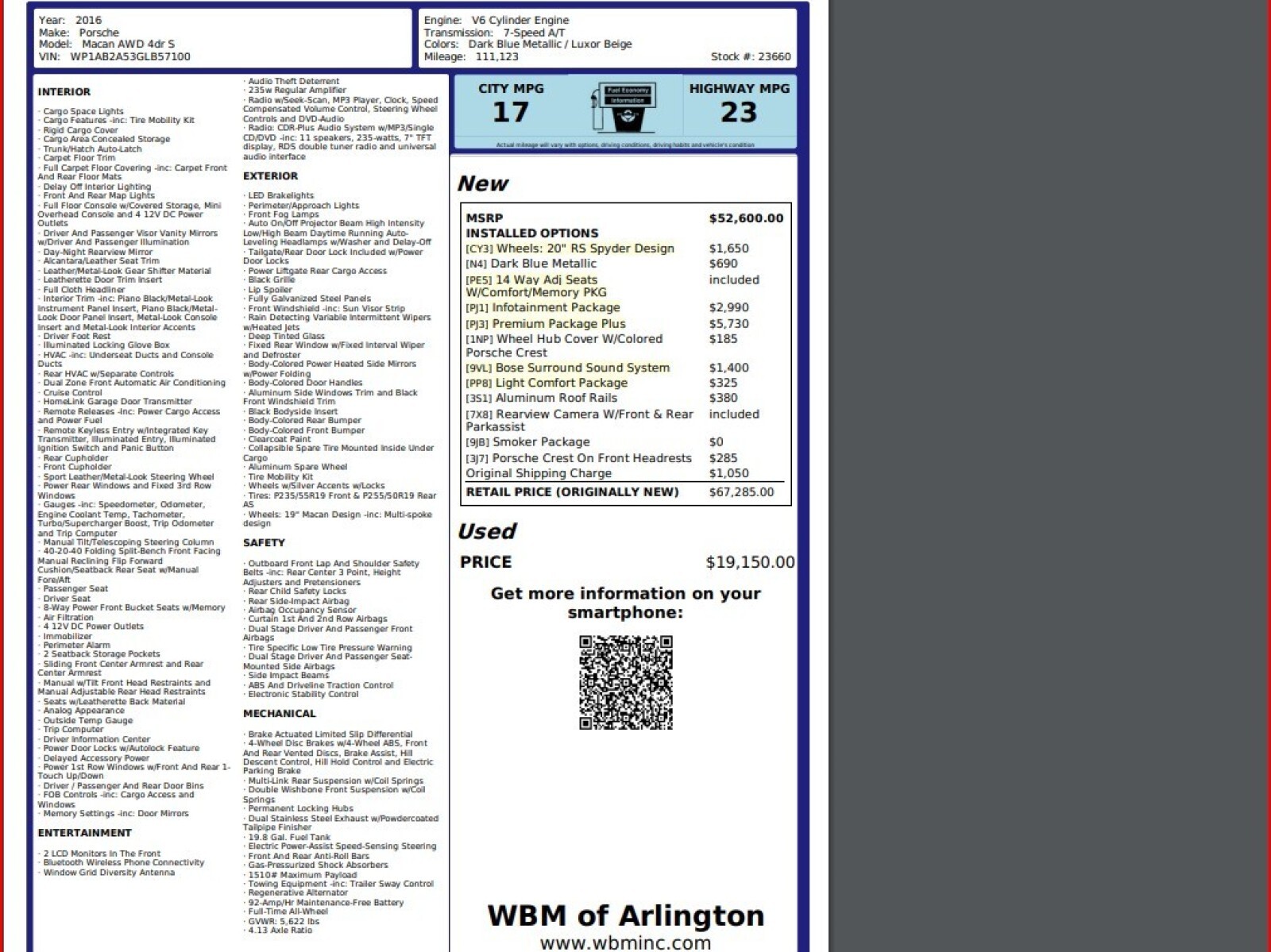 4. Every vehicle sold by WBM of Arlington goes through an 88 point mechanical and a 32 point cosmetic quality control inspection by our team of experts.