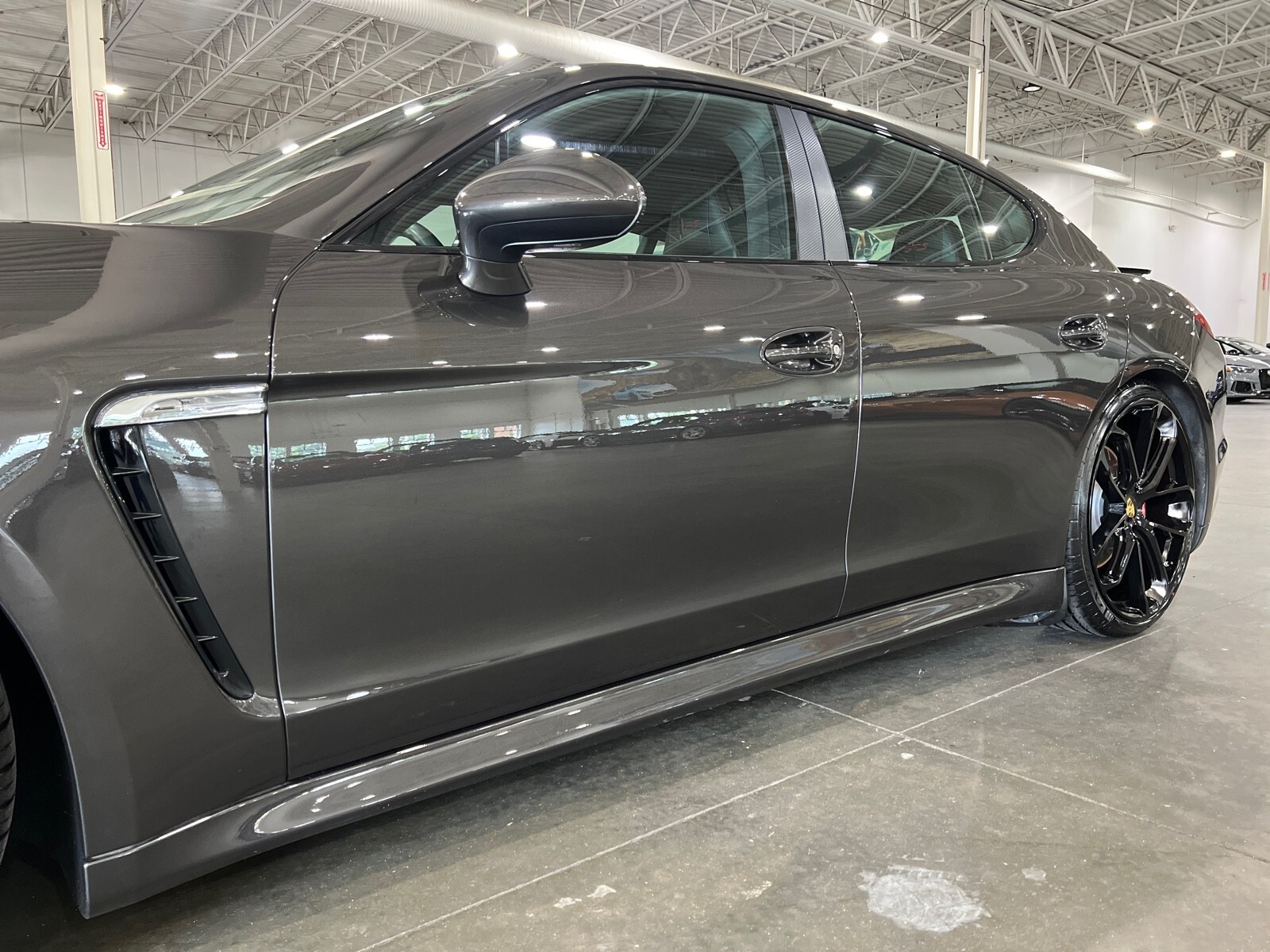 Clean Carfax, low mileage, bose sound system, adjustable suspension, sport & sport +, retractable spoiler, adjustable exhaust sound, auto start stop, moonroof, memory seats, paddle shifters, heated seats front/rear, dual climate control, sport pages, navigation, parking assist and more! $128,025 MSRP when new. 22 Inch Black Panamera Turbo Style wheels and tires may be shown in pictures they are brand new and available for an additional $2495, Factory black wheels are included in the price. The following repair / maintenance has been done to the vehicle: PERFORM ENGINE OIL AND FILTER~$150 REPLACE FRONT BRAKE PADS AND SENSORS~$490 REPLACE REAR BRAKE PADS AND SENSORS~$350 MSRP $111,790.00 Installed options [XRY] 20 Panamera Sport Wheels Painted In Black multi-spoke alloy 20 x 9.5 front wheels & 20 x 11.5 rear wheels 255/40ZR20 front tires 295/35ZR20 rear tires $3,375 [GK] Carmine Red, Leather Seat Trim W/Full Alcantara/Leather Interior $3,450 [658] Speed Sensitive PWR Assisted Steering W/Variable Ratio $270 [CAR] Front Air Intakes Painted In High Gloss Black $1,120 [569] Standard Side Skirts Painted In Exterior Color $0 [CNG] Lower Rear Fascia Painted In Exterior Color $680 [680] Bose Surround Sound System (14) speakers w/200-watt subwoofer 9-channel amp 585-watt total output Centerpoint 2 SurroundStage AudioPilot noise compensation $1,440 [686] Siriusxm Satellite Radio 3-month subscription $750 [343] Heated Front/Rear Seats $530 [625] Porsche Entry & Drive keyless entry & drive proximity sensors locking buttons in the exterior door handles chrome finished inlays in the handles button for the auto rear hatch $1,090 [861] PWR Rear Side Window Sunscreen $450 [638] Front/Rear Park Assist W/Rearview Camera parking aid w/ultrasonic sensors integrated in the bumpers audible notification of the distance to an object located to the front & rear of the vehicle on-screen graphical representation of the area immediately around the vehicle color camera image w/superimposed dynamic guidelines on the Porsche Communication Management (PCM) screen to facilitate controlled and precise reverse parking and maneuvering $1,255 [457] Lane Change Assist (Lca) & Blind Spot Detection $850 [BASE] Panamera GTS [1A] Carbon Grey Metallic Original Shipping Charge $975 Retail Price (Originally New) $128,025.00