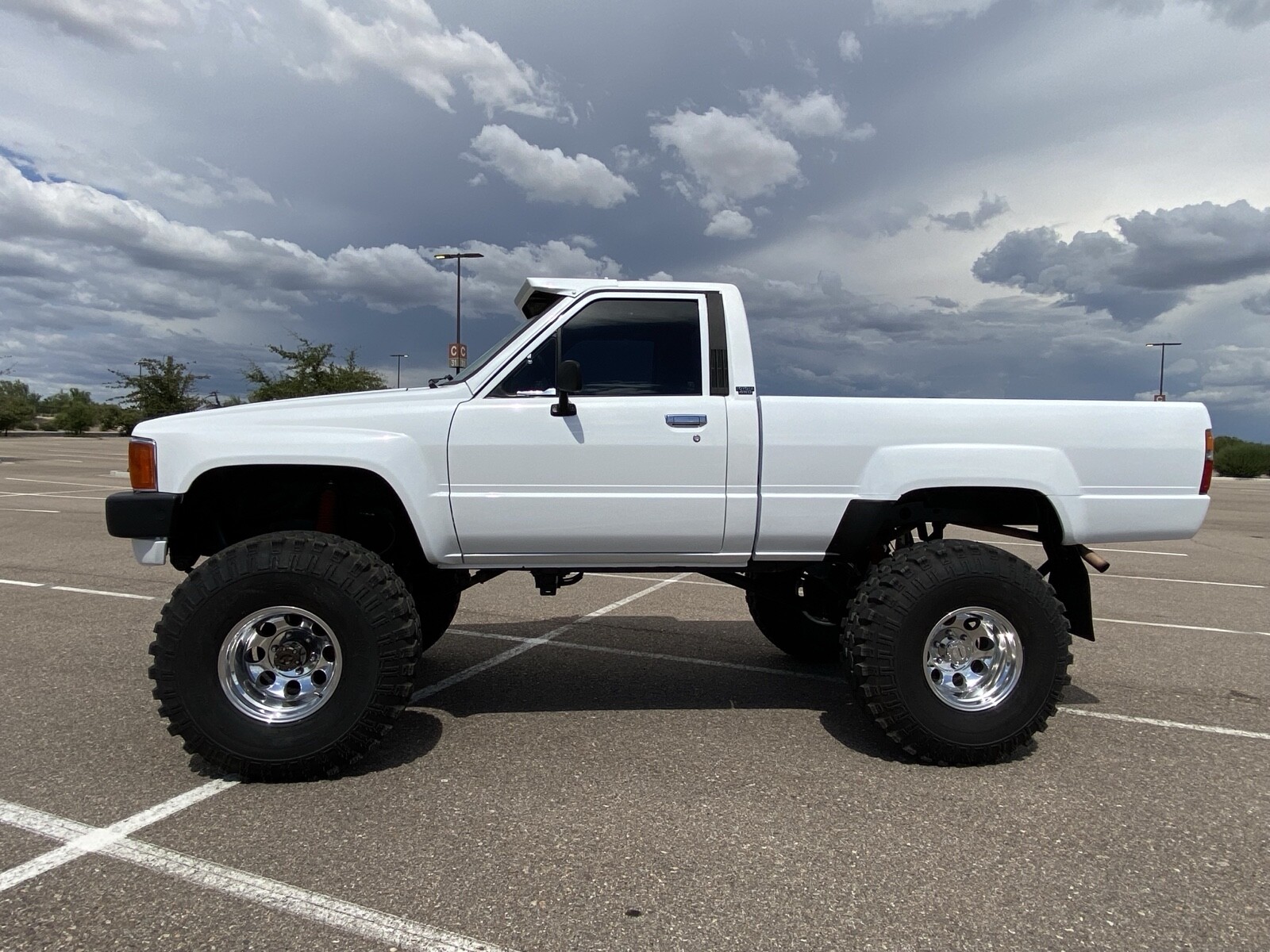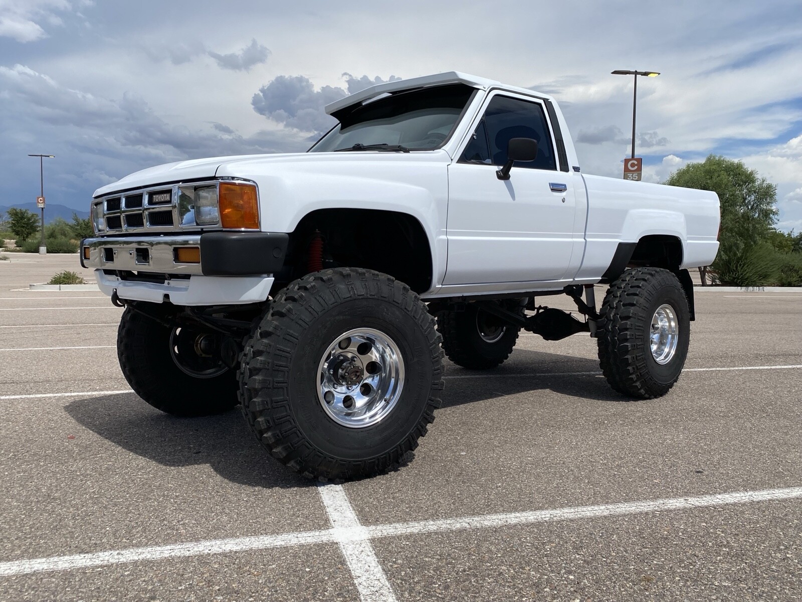 Beautiful Solid Axle 1984 Toyota SR5 Pickup! Here is the story! Just 600 miles ago in 2020 this classic was completed with a brand new (not reman) 22R engine, Weber Carburetor and clutch. Then, axles completely gone through using 5.71 gears, carriers and bearings under an all spring lift to clear these beautiful period correct 36” super swampers! Then, the best part, all was painted with the most beautiful Lexus Pearl white paint. Absolutely brilliant paint work! Original interior with late model fully functional bucket seats. This Toyota runs and drives great! A/C system is complete but does not blow cold, horn does not work, but all other functions/switches are in good working order. This Toyota turns heads everywhere!