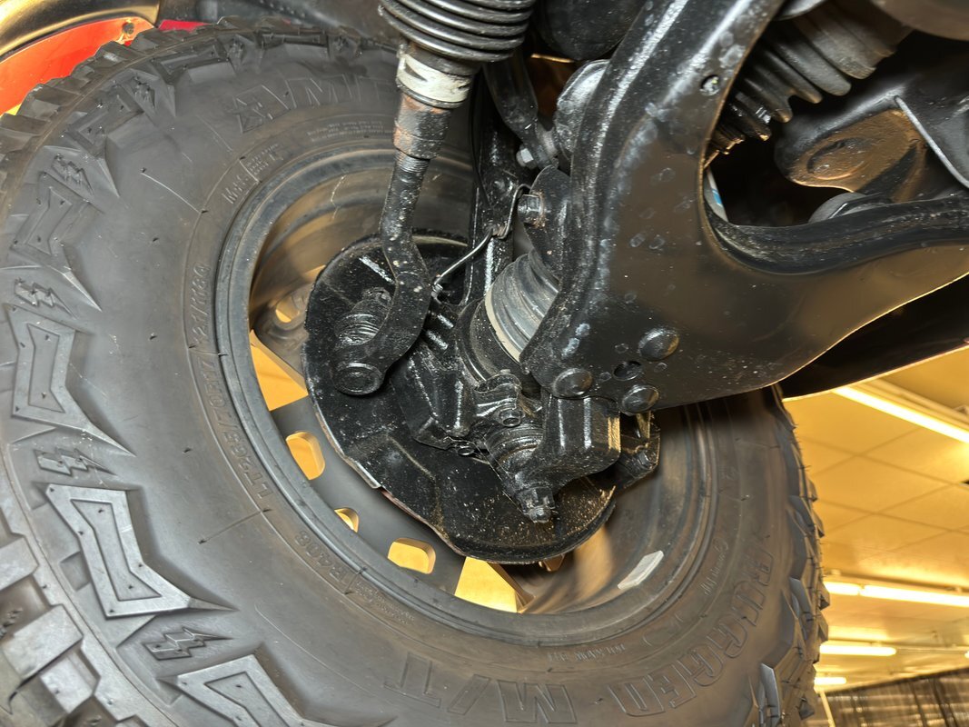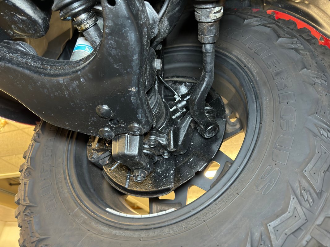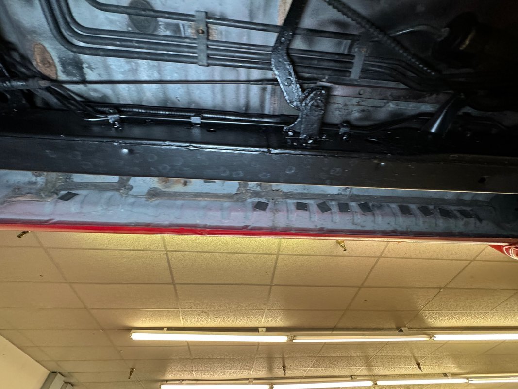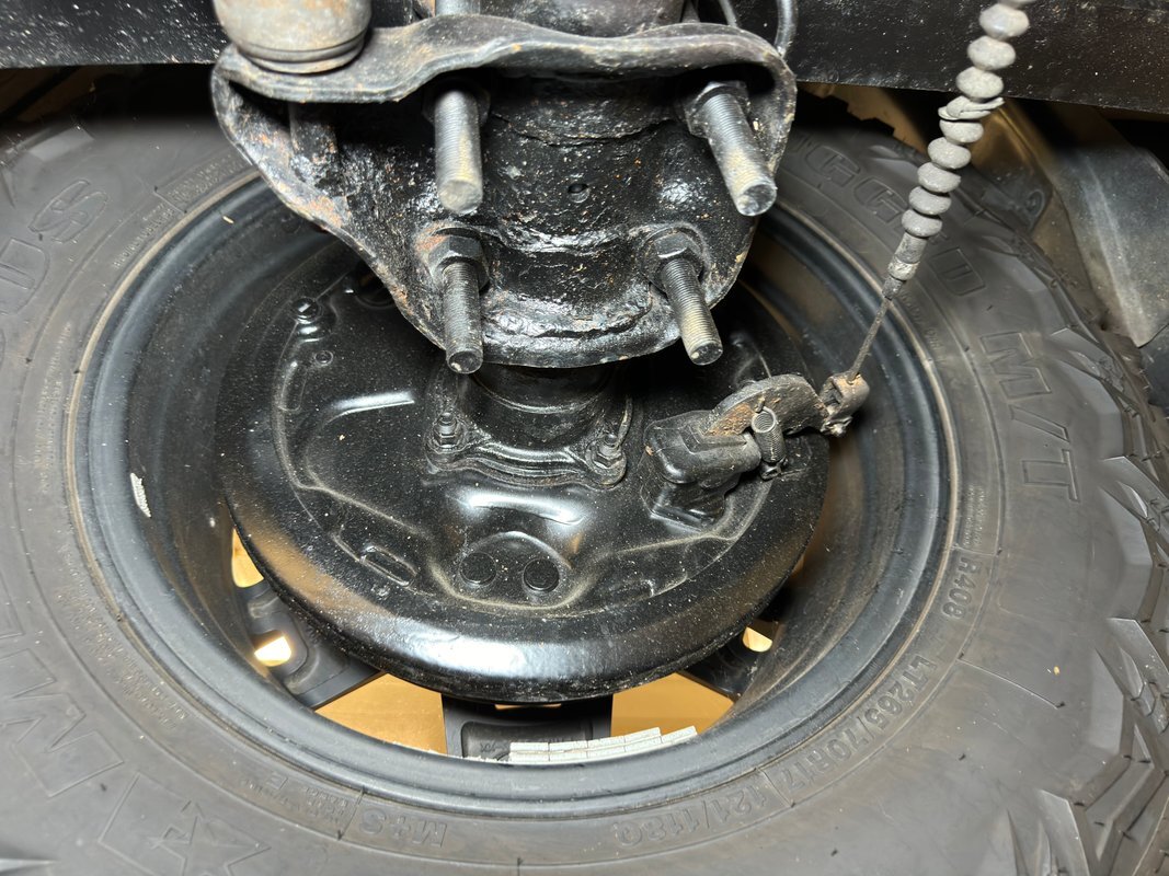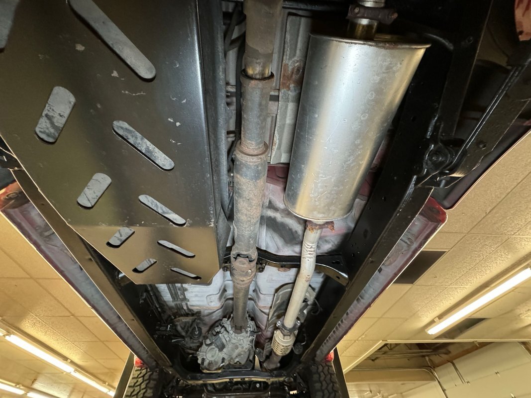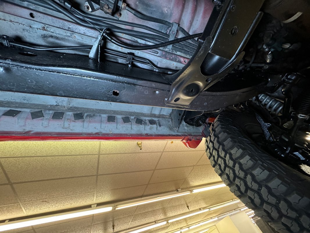 For a truck with such offroad prowess, we're not sure this one has ever seen a trail. Super clean underneath with zero dirt, minimal surface rust, and no grease or leaks. Our consignor says the frame has been sanded and painted so maybe it's dirty days are past it, or ahead of it. Either way, it's clean underneath where a single exhaust finds a stock style muffler before exiting on the right. Double wishbone suspension in front and leaf springs in back move you along the trail with ease.