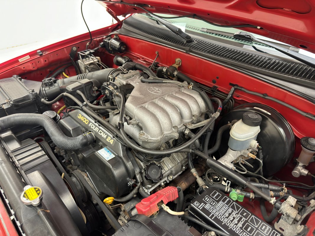 You can tell a lot about a car and its owner by the engine bay, and this one is clean as a whistle! It's a 3.4 liter V6 that was replaced at 195,000 miles, but meticulously gone through before installation including seals and timing belt. Its fuel injected and tied to a 5-speed manual transmission armed with a newer clutch, flexplate, and bearing, is capable of splitting the power between axles, both housing 4.10 gears. A newer radiator and hoses are onboard. Power disc brakes hide behind the front wheels while power drums are in back.