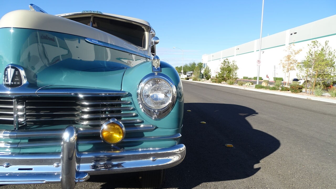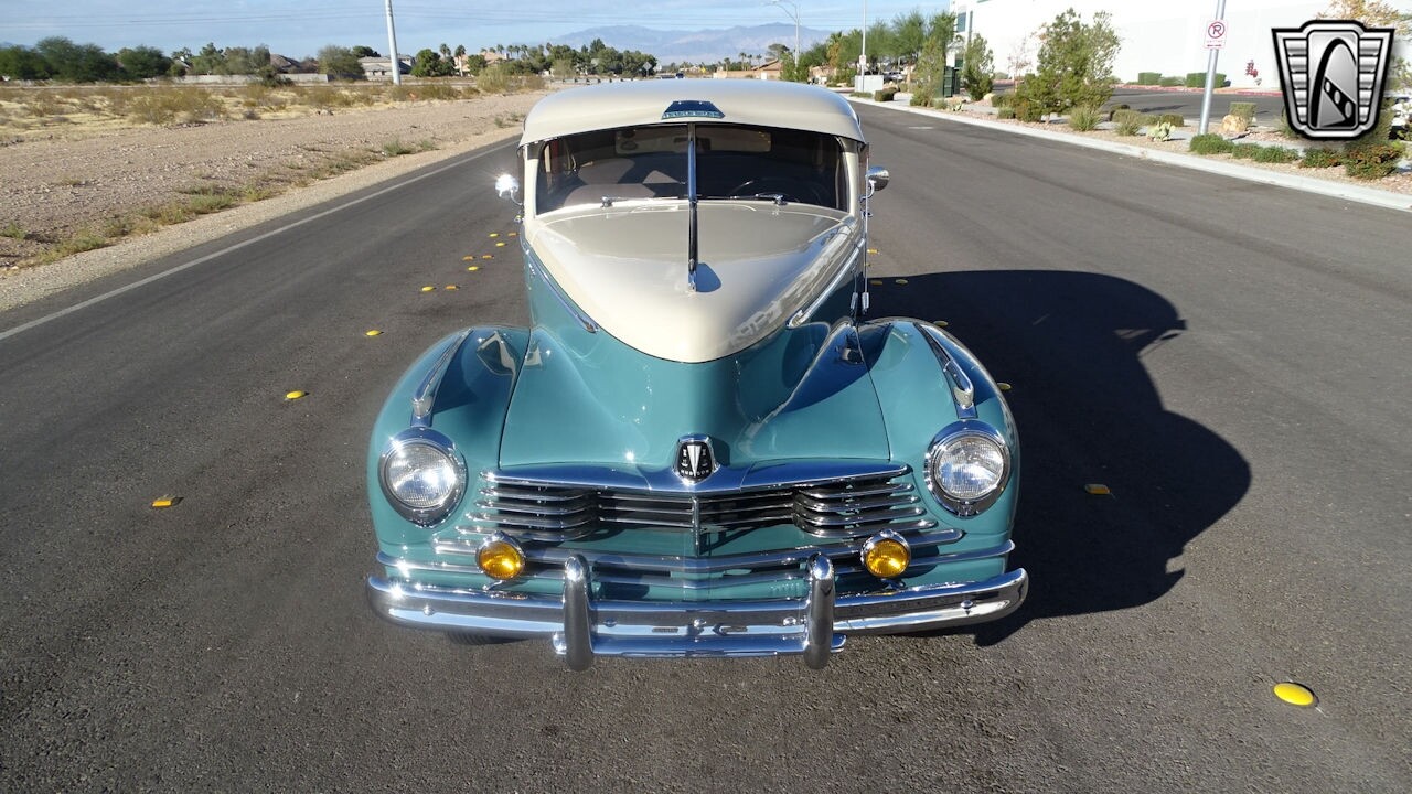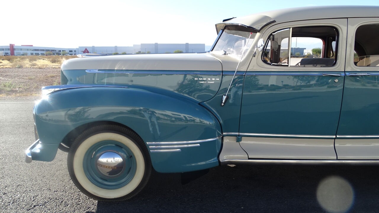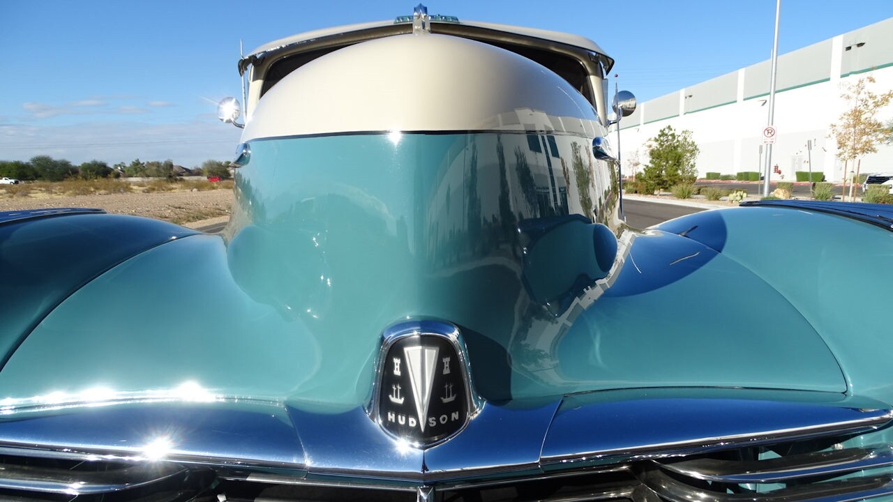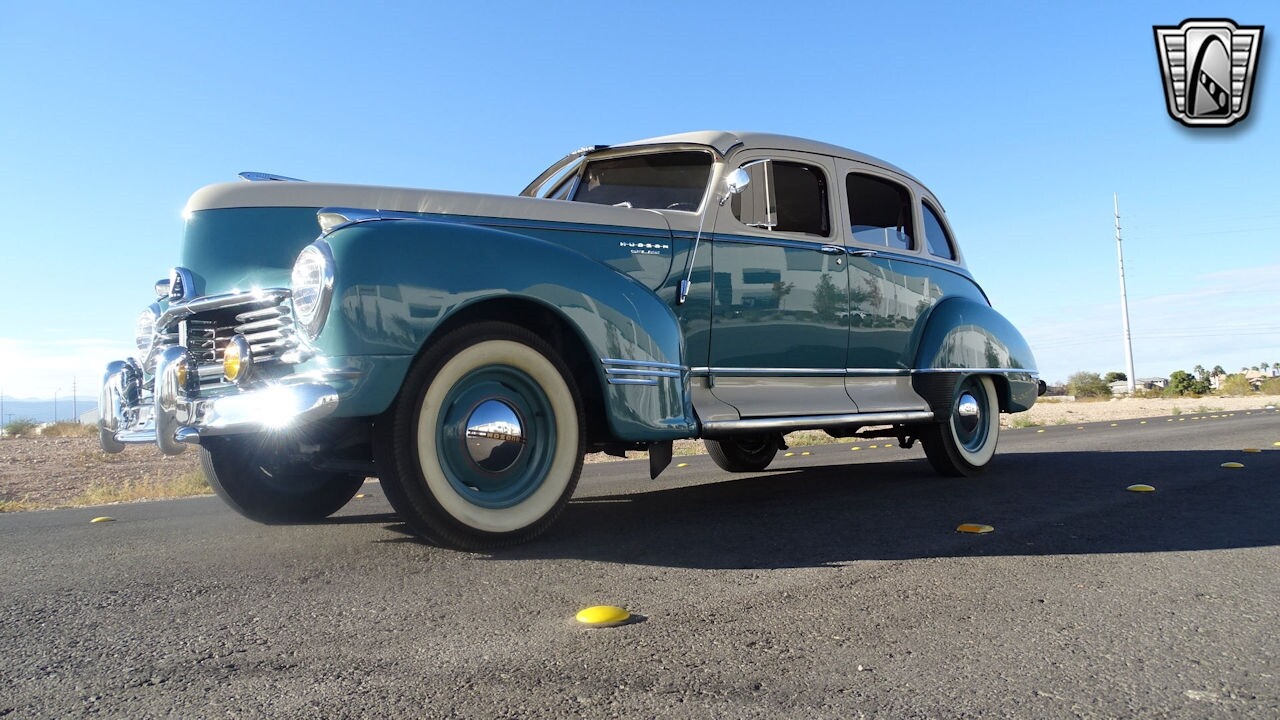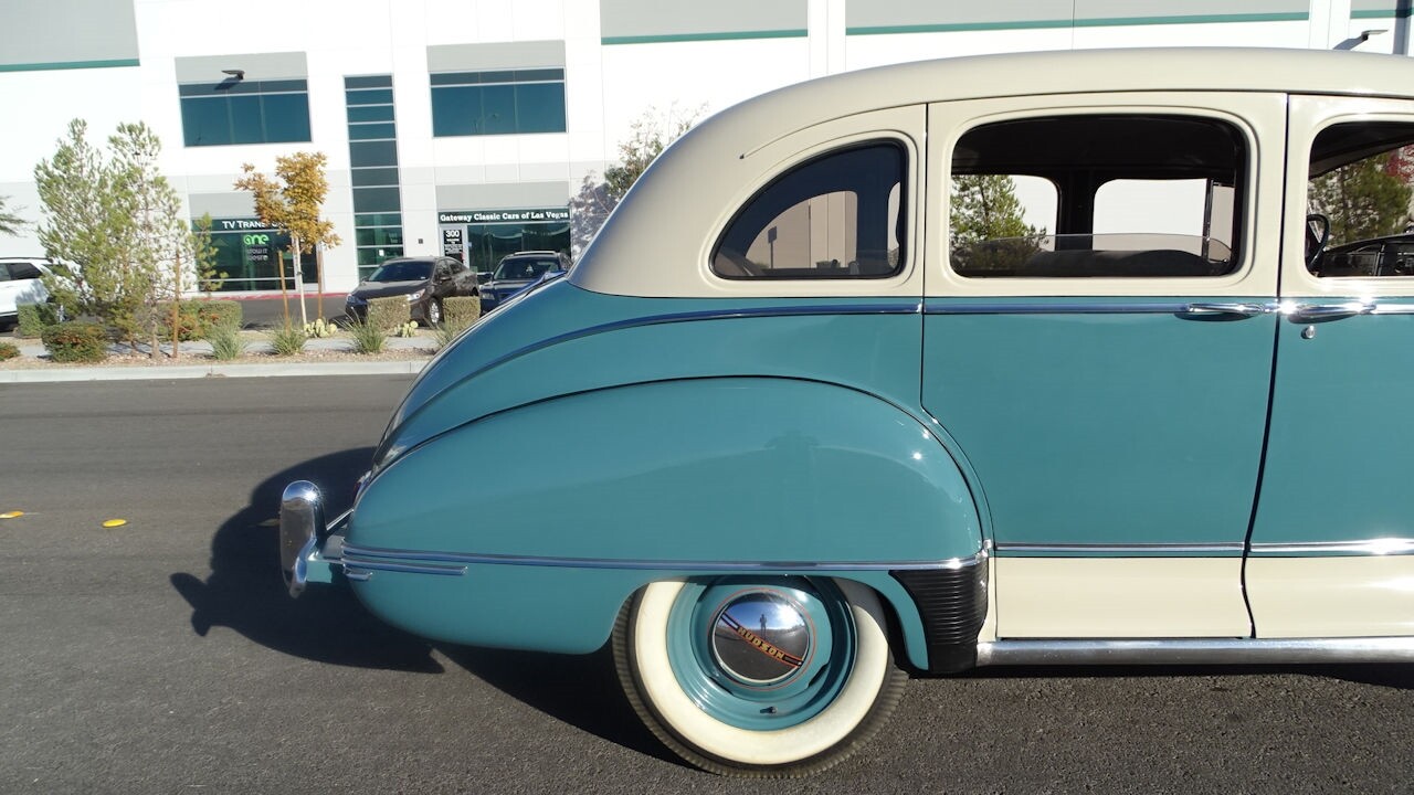 Gateway Classic Cars is proud to present the story of the Holy Grail Hudson. This 1947 Hudson Super 8 was found in a south Florida garage stored since the 1990s. With a mere 24,820 miles (currently 25,587, 767 mi since rebuild), the Holy Grail Hudson exhibited the least amount of wear, tear, and deterioration of any antique car we have ever seen. The Hudson Super 8 had absolutely no rust, not even one pin hole. The original cover on the tailpipe was intact; the brake drums were uncut with mirror finish. The Super 8 was adorned with the original 1947 window stickers as well as the original dealer installed Do it in a Hudson bumper sticker. Hudson Motors produced only 5076 - 1947 Hudson Super 8's, with very few remaining on the road today. The Hudson is a number 1 condition car, and may be the number one condition among all Hudson cars in existence today. This 1947 Hudson Super 8 is truly a piece of fine art that captures the essence of the art deco era. The colors are simply wonderful and were carefully matched with era correct tones and hues. The bronze colored glass compliments the beautiful two-tone colors and gorgeous wood grain dash. The highly detailed art deco style visor was hand fabricated in metal with hidden brackets. The undercarriage is as nice as the exterior. This rust free 70 year-old 1947 Hudson Super 8 is of the highest condition and quality of restored cars of the era.
