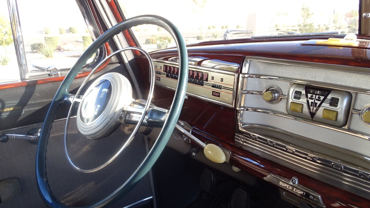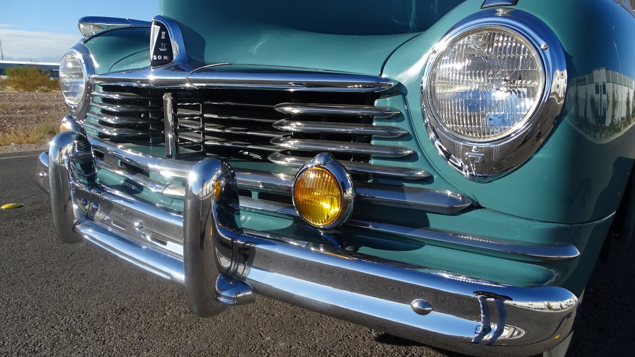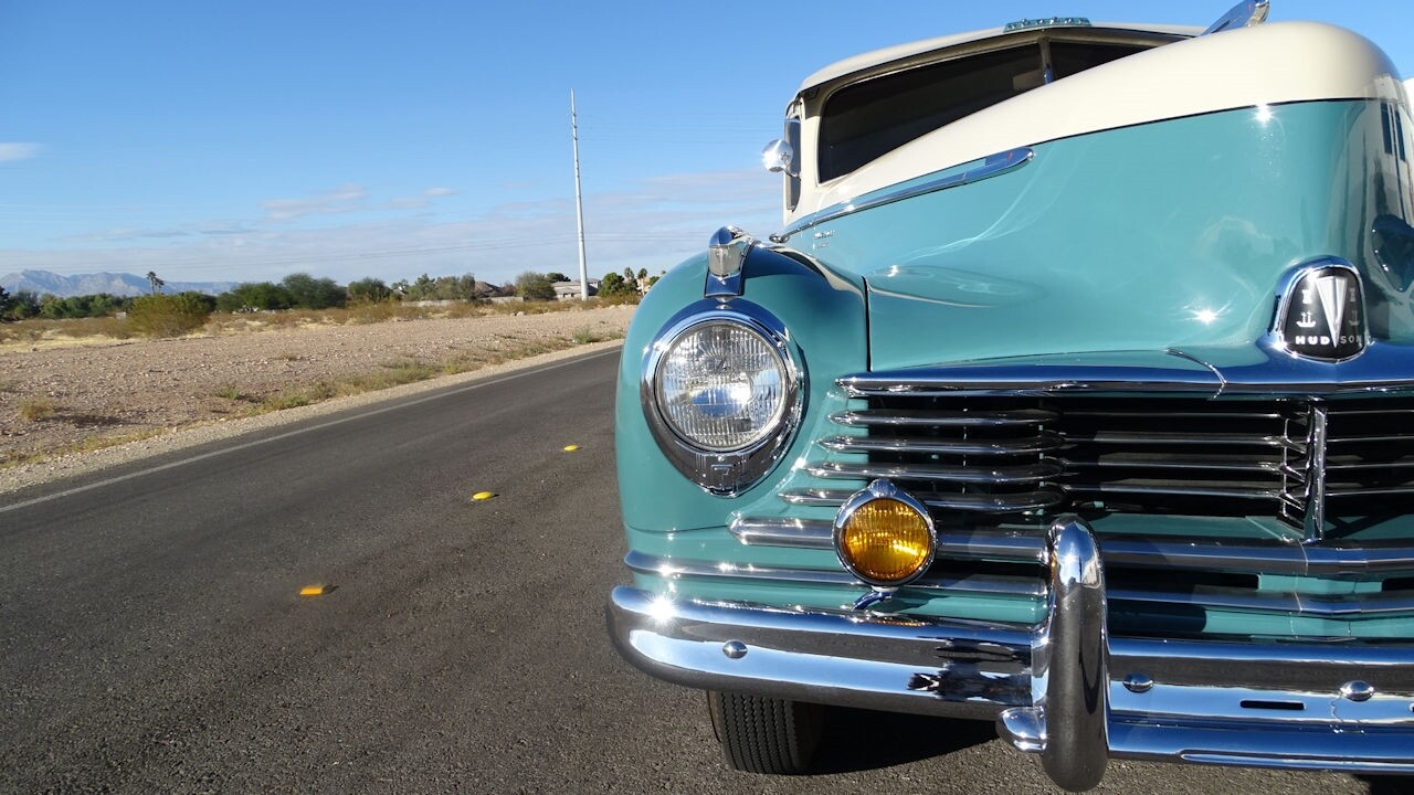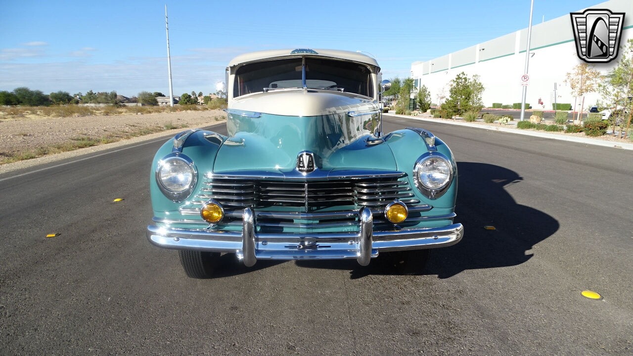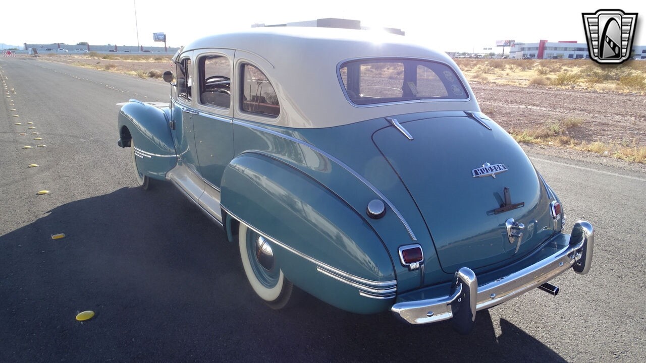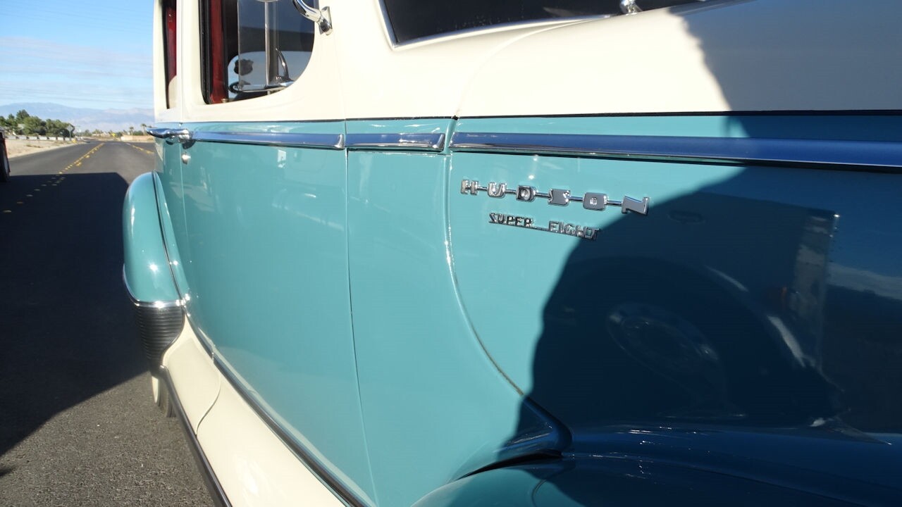 Gateway Classic Cars is proud to present the story of the Holy Grail Hudson. This 1947 Hudson Super 8 was found in a south Florida garage stored since the 1990s. With a mere 24,820 miles (currently 25,587, 767 mi since rebuild), the Holy Grail Hudson exhibited the least amount of wear, tear, and deterioration of any antique car we have ever seen. The Hudson Super 8 had absolutely no rust, not even one pin hole. The original cover on the tailpipe was intact; the brake drums were uncut with mirror finish. The Super 8 was adorned with the original 1947 window stickers as well as the original dealer installed Do it in a Hudson bumper sticker. Hudson Motors produced only 5076 - 1947 Hudson Super 8's, with very few remaining on the road today. The Hudson is a number 1 condition car, and may be the number one condition among all Hudson cars in existence today. This 1947 Hudson Super 8 is truly a piece of fine art that captures the essence of the art deco era. The colors are simply wonderful and were carefully matched with era correct tones and hues. The bronze colored glass compliments the beautiful two-tone colors and gorgeous wood grain dash. The highly detailed art deco style visor was hand fabricated in metal with hidden brackets. The undercarriage is as nice as the exterior. This rust free 70 year-old 1947 Hudson Super 8 is of the highest condition and quality of restored cars of the era.