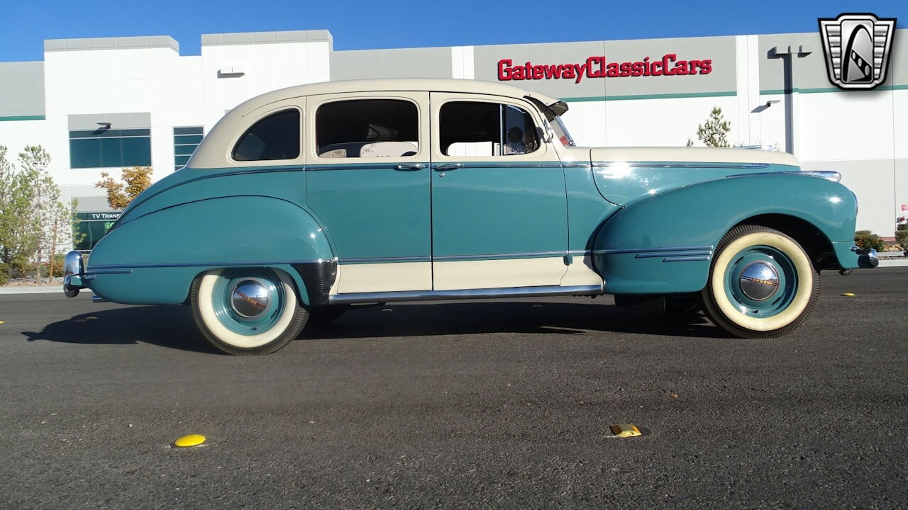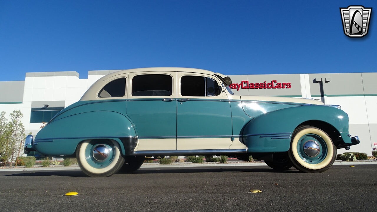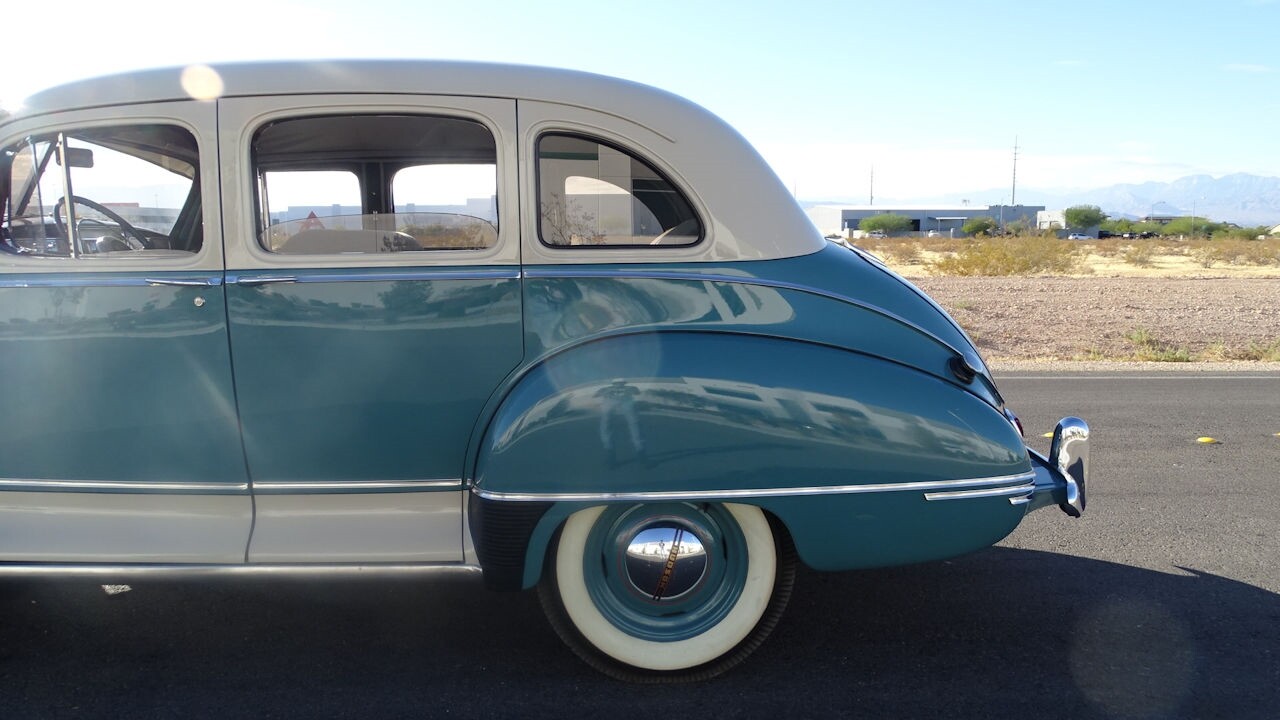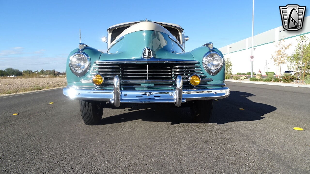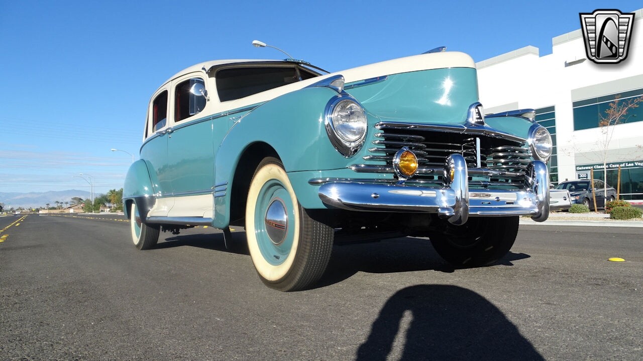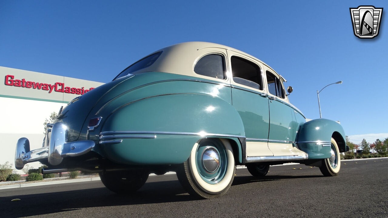 Gateway Classic Cars is proud to present the story of the Holy Grail Hudson. This 1947 Hudson Super 8 was found in a south Florida garage stored since the 1990s. With a mere 24,820 miles (currently 25,587, 767 mi since rebuild), the Holy Grail Hudson exhibited the least amount of wear, tear, and deterioration of any antique car we have ever seen. The Hudson Super 8 had absolutely no rust, not even one pin hole. The original cover on the tailpipe was intact; the brake drums were uncut with mirror finish. The Super 8 was adorned with the original 1947 window stickers as well as the original dealer installed Do it in a Hudson bumper sticker. Hudson Motors produced only 5076 - 1947 Hudson Super 8's, with very few remaining on the road today. The Hudson is a number 1 condition car, and may be the number one condition among all Hudson cars in existence today. This 1947 Hudson Super 8 is truly a piece of fine art that captures the essence of the art deco era. The colors are simply wonderful and were carefully matched with era correct tones and hues. The bronze colored glass compliments the beautiful two-tone colors and gorgeous wood grain dash. The highly detailed art deco style visor was hand fabricated in metal with hidden brackets. The undercarriage is as nice as the exterior. This rust free 70 year-old 1947 Hudson Super 8 is of the highest condition and quality of restored cars of the era.