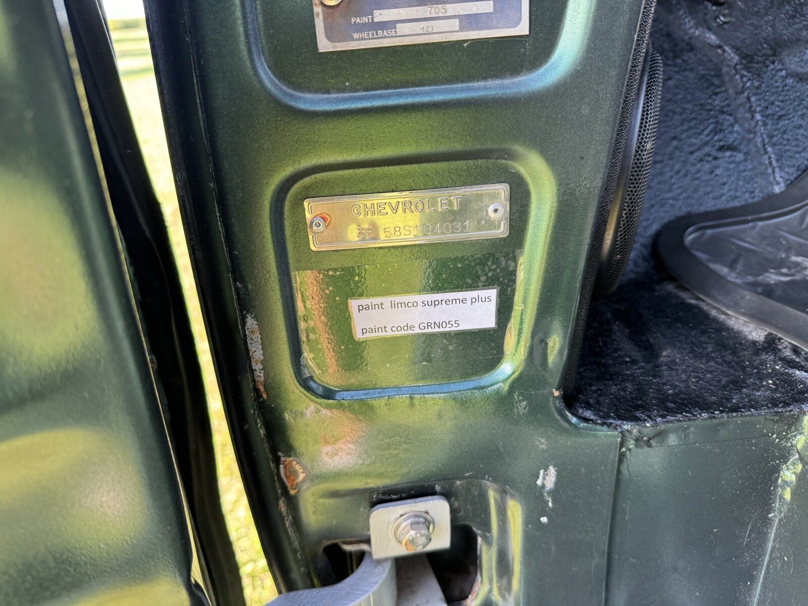 This 1958 Chevrolet Apache is a classic vehicle that has been restored with care. It boasts a beautiful green color and has a clean title. With only 895 miles on it, this vehicle is perfect for car shows and casual driving. The owner has made updates to the exterior, interior and drivetrain, ensuring that it runs smoothly and looks great. Make response short.Vehicle Details