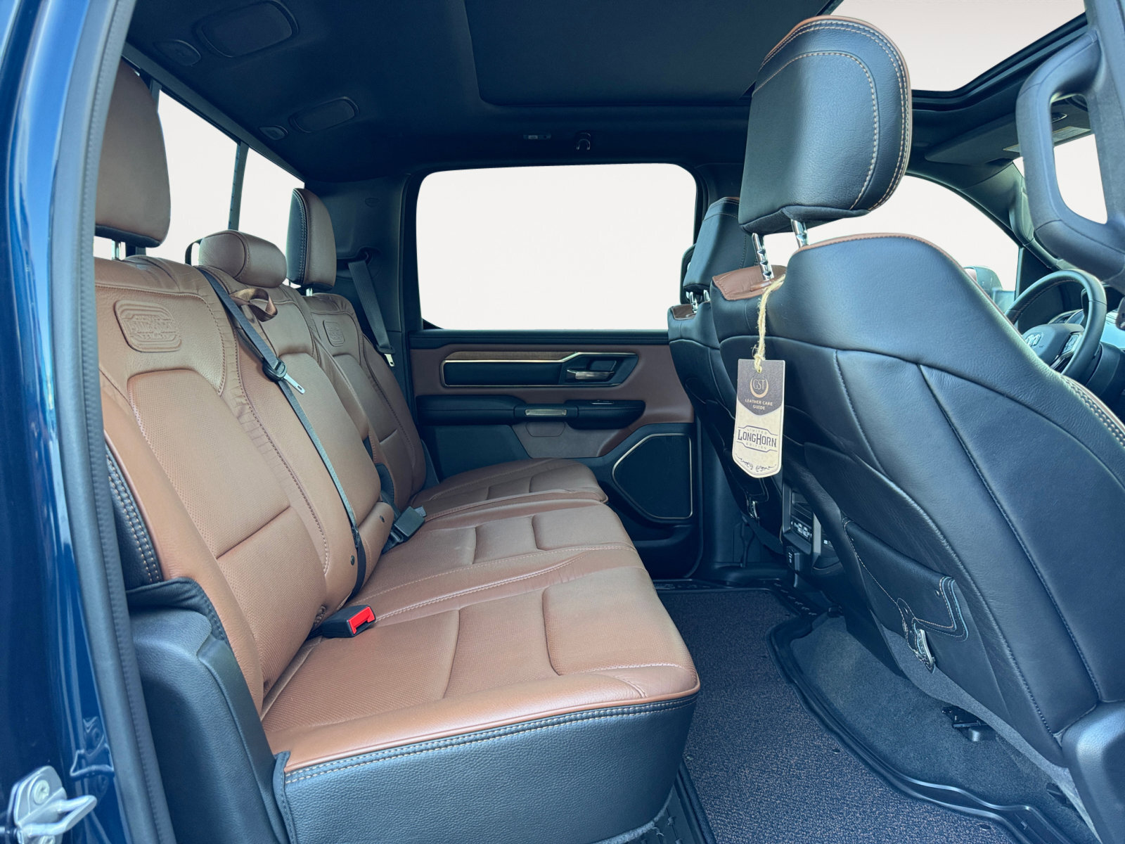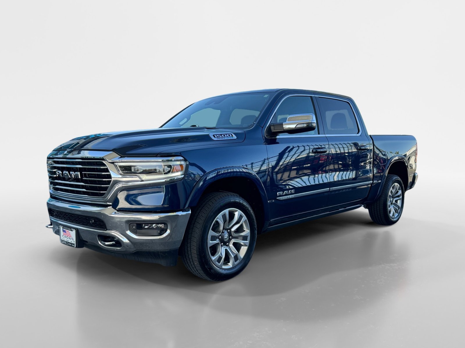 Certified. Patriot Blue Pearlcoat 2023 Ram 1500 Laramie Longhorn RWD 8-Speed Automatic HEMI 5.7L V8 Multi Displacement VVT eTorque ** 1 Owner Clean CarFax **, 33 Gallon Fuel Tank, 4-Corner Air Suspension, Adaptive Cruise Control w/Stop & Go, Adjustable pedals, AM/FM radio: SiriusXM with 360L, Anti-Spin Differential Rear Axle, Automatic temperature control, Blind Spot & Cross Path Detection, Digital Rearview Mirror, Dome Dual LED Reading Lamp, Driver Seat Memory, Dual-Pane Panoramic Sunroof, Exterior Parking Camera Rear, Front dual zone A/C, Front fog lights, Full Length Premium Floor Console, Fully automatic headlights, Garage door transmitter, Genuine wood console insert, Genuine wood dashboard insert, Genuine wood door panel insert, harman/kardon 19 Speaker Premium Sound, Heads-Up Display, Heated door mirrors, Heated front seats, Heated rear seats, Heated Second Row Seats, Heated Steering Wheel, Illuminated entry, Lane Keep Assist, Leather Trimmed Bucket Seats, LED CHMSL Lamp, LED Dome/Reading Lamp, Longhorn Level 1 Equipment Group, Memory seat, MOPAR Spray In Bedliner, Navigation System, Parallel & Perp Park Assist w/Stop, ParkSense Front/Rear Park Assist w/Stop, Pedal memory, Pedestrian Emergency Braking, Pick-Up Box Lighting, Power 8-Way Driver & Passenger Seats, Power passenger seat, Power Running Boards, Quick Order Package 27K Longhorn, Radio: Uconnect 5 Nav w/12.0 Display, Rear 60/40 Folding Split Recline Seat, Rear window defroster, Remote keyless entry, Security system, Split folding rear seat, Steering wheel mounted audio controls, Surround View Camera System, Tailgate Ajar Warning Lamp, Trailer Brake Control, Ventilated Front Seats, Ventilated Rear Seats, Wheels: 20 x 9 Aluminum Painted/Polished, Wireless Charging Pad.Odometer is 11684 miles below market average!FCA US LLC Certified Pre-Owned Details:* Includes First Day Rental, Car Rental Allowance, and Trip Interruption Benefits. SiriusXM 3 month trial subscription.* Transferable Warranty* 125 Point Inspection* Roadside Assistance* Warranty Deductible: $100* Vehicle History* Powertrain Limited Warranty: 84 Month/100,000 Mile (whichever comes first) from original in-service date* Limited Warranty: 3 Month/3,000 Mile (whichever comes first) after new car warranty expires or from certified purchase dateHere at Crown Dodge Chrysler Jeep RAM, we believe that great service means more than just offering our new Dodge, Chrysler, Jeep, and RAM lineup. We believe that great service also includes helpful advice, friendly car financing, and the highest quality parts and repairs for your car. Our staff works hard to make your full automotive experience at our car dealership in Ventura, CA enjoyable, and we look forward to helping you today! All vehicles at Crown Dodge have our SWAT security system $995,Clear Shield $395, Pulse $395, Wheel Locks $395, Windshield Protection $995, Nitro Fill $499, Screen Protector $395 and $1295 Paint/Fabric Protection pre-installed. Prices on the website do not include dealer-added equipment. Discounts include $2,000 Trade-In Dealer Assist Cash. Must trade in a 2015 or newer vehicle on a retail purchase. Trade-in must have less than 15,000 miles on average per year stated on Carfax Report, clean title, and Clean vehicle history report. Expires 02/19/2024. Expires 02/29/2024.