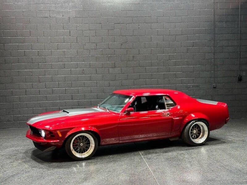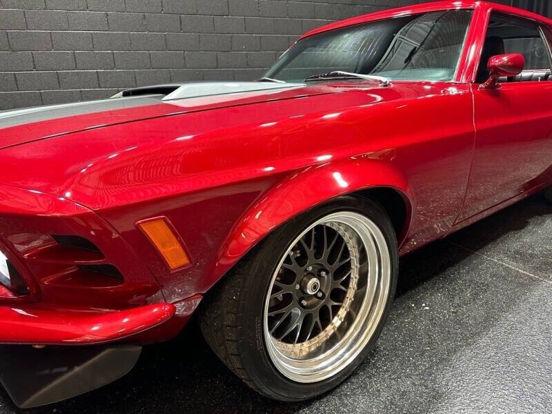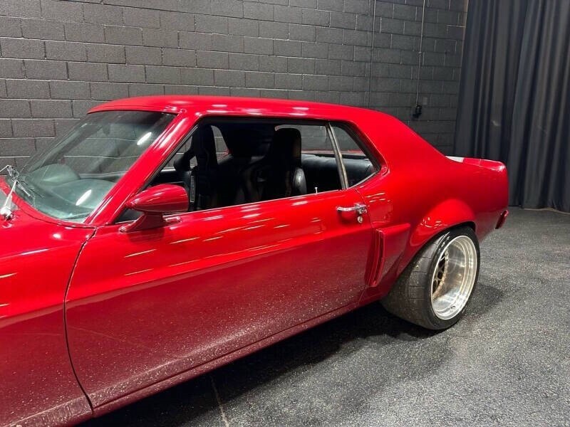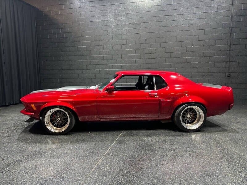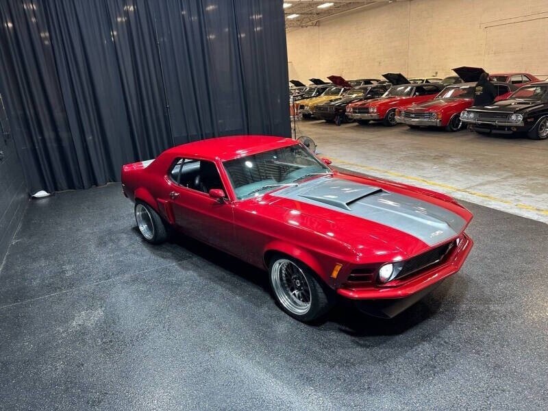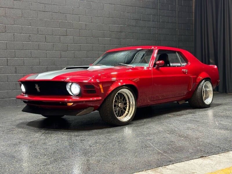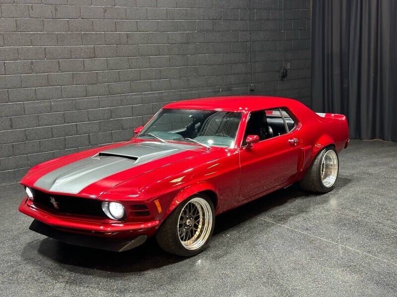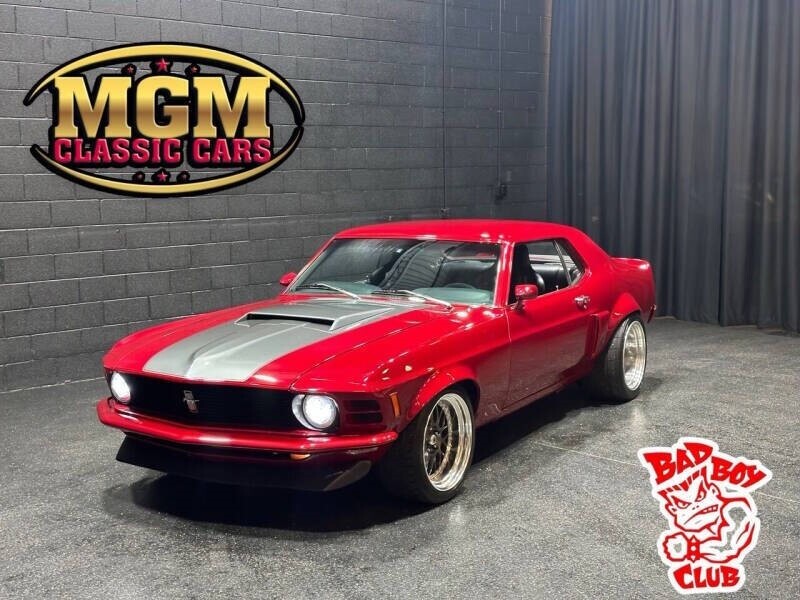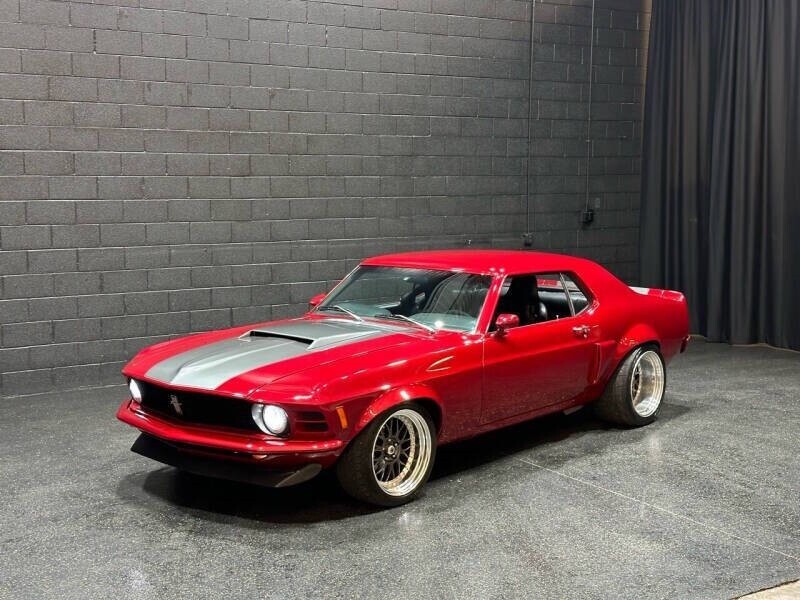 Introducing the stunning 1970 Ford Mustang The Widebody! Just in from Arizona! This exceptional custom Mustang is a true headturner, boasting a powerful Ford 302ci V8 engine paired with a smooth 5 speed manual transmission. Equipped with Holley Sniper EFI, this beast delivers exhilarating performance at your command. Dressed in a mesmerizing Metallic Red exterior with sleek painted grey stripes, this Mustang commands attention from every angle. The notable metal-crafted fender flares, hood scoop, front air dam, and rear spoiler add an aggressive touch, accentuating its sporty persona. Step inside and be greeted by the luxurious black leather interior, where comfort meets style. The Sparco steering wheel and Banvie push-to-start system enhance the modern feel, while the air conditioning ensures a pleasant driving experience regardless of the weather. The center console provides convenient storage, while the Corbeau leather bucket seats and Corbeau harnesses offer both support and a touch of elegance. Completing the package, this Mustang sits on magnificent 18-inch Meister Multi-Spoke wheels, beautifully complemented by Nitto NT555R Extreme Drag tires. With a wider stance and superior grip, these tires (245/40 front and 355/30 rear) elevate the handling and overall performance of this remarkable machine. Don't miss the opportunity to own this awe-inspiring 1970 Ford Mustang The Widebody. Its unique combination of power, style, and craftsmanship is sure to satisfy even the most discerning automotive enthusiasts. Come experience the thrill of driving this masterpiece today! Underneath is clean! Check out all photos and Video! BUY IT NOW ONLY $54,998.00 Payments low as $568.29 Financing/low monthly payments Delivery right to your garage door! We are now OPEN to the PUBLIC! Visit our 35,000 sq ft showroom MGM Classic Cars LLC 150 S. Church Street Addison IL 60101 Mon-Fri 9a-5p Sat 9-2p Vehicle has been inspected Call/Text Info 847-848-1850
