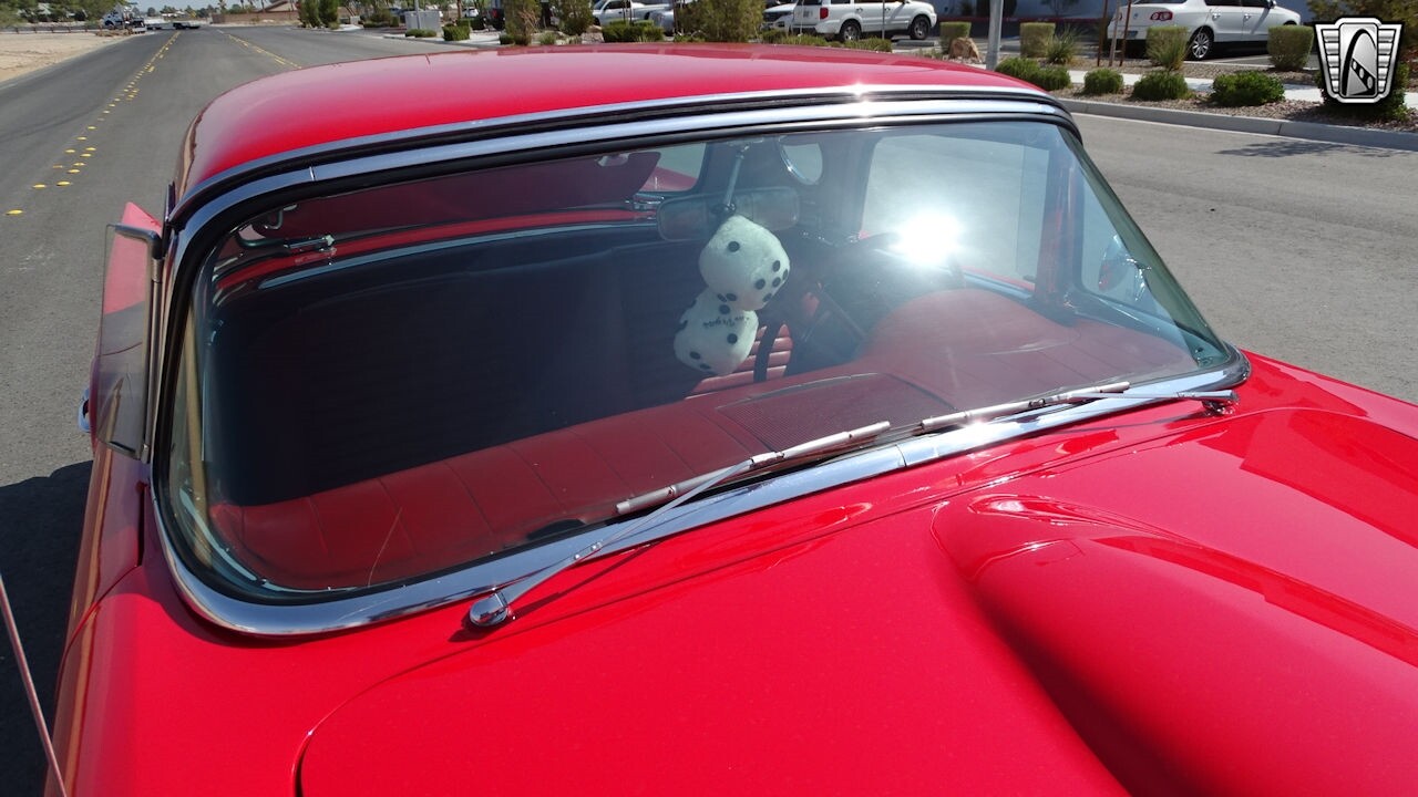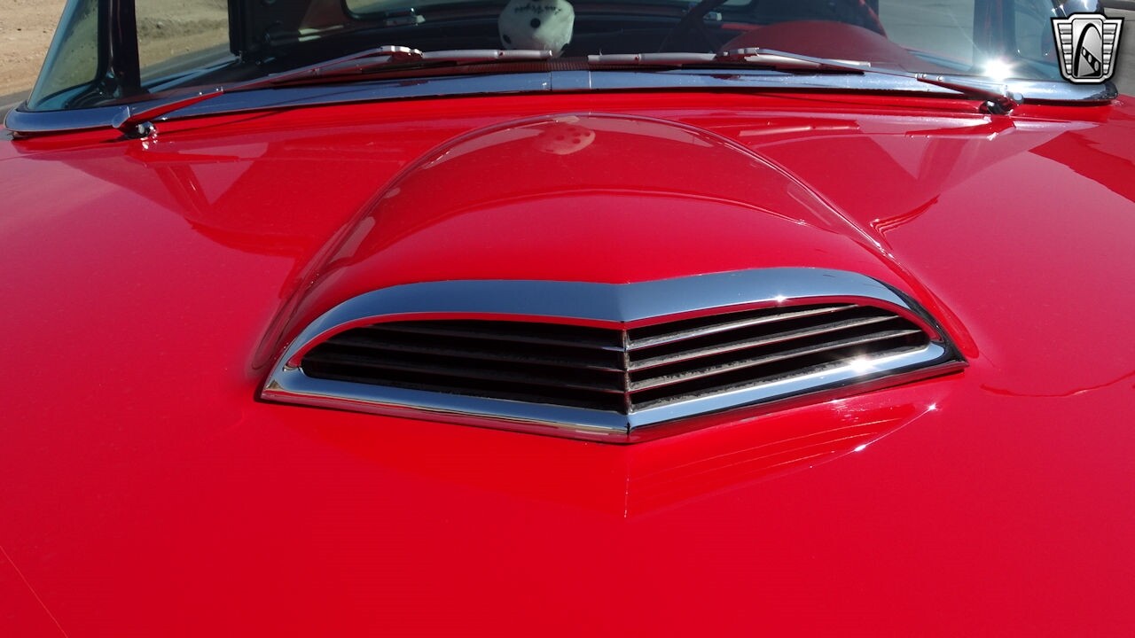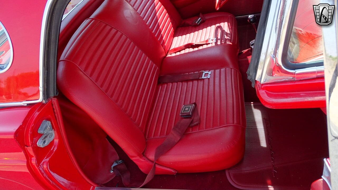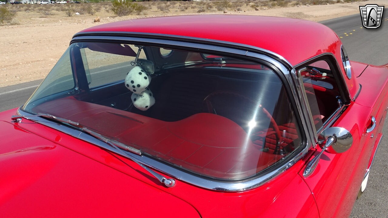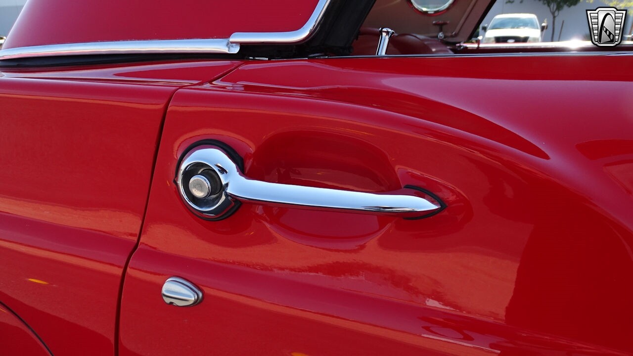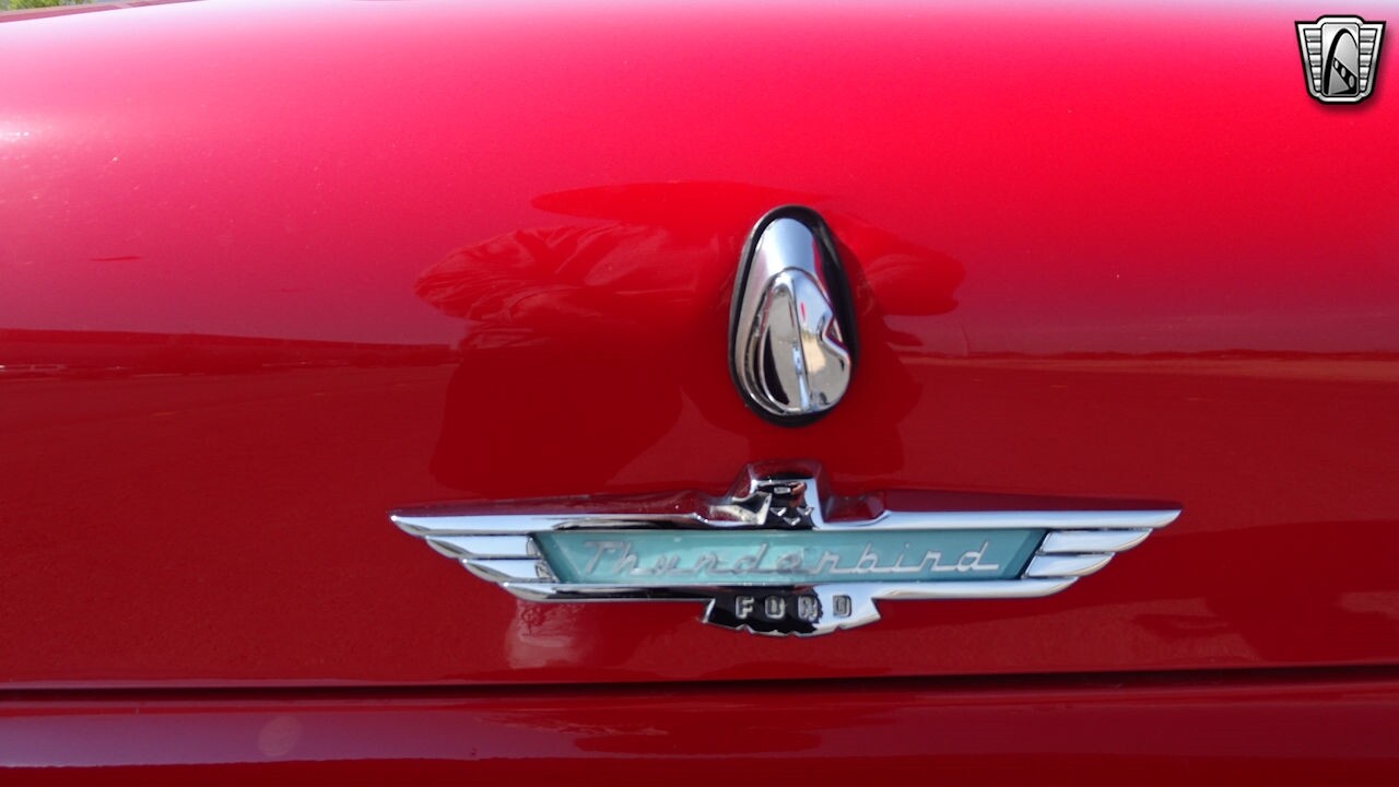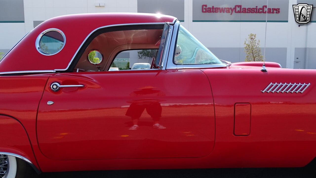 Experience the timeless elegance of the 1957 Ford Thunderbird Convertible. This classic beauty, with its striking red exterior and matching red interior, is sure to turn heads wherever you go.