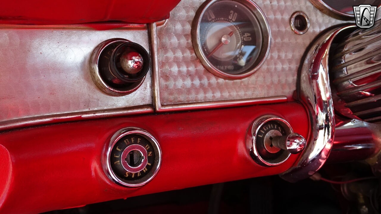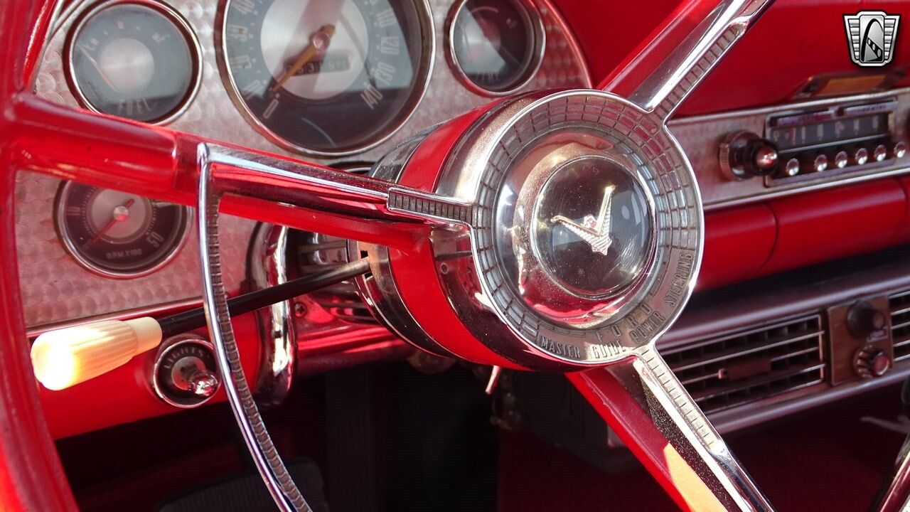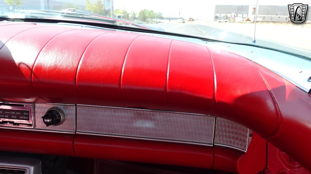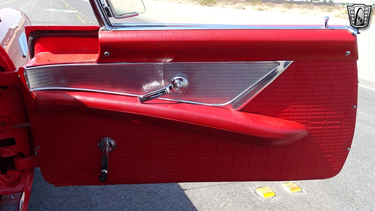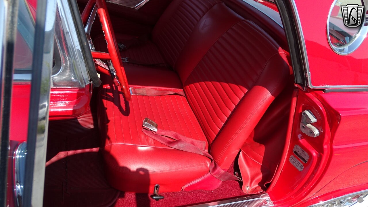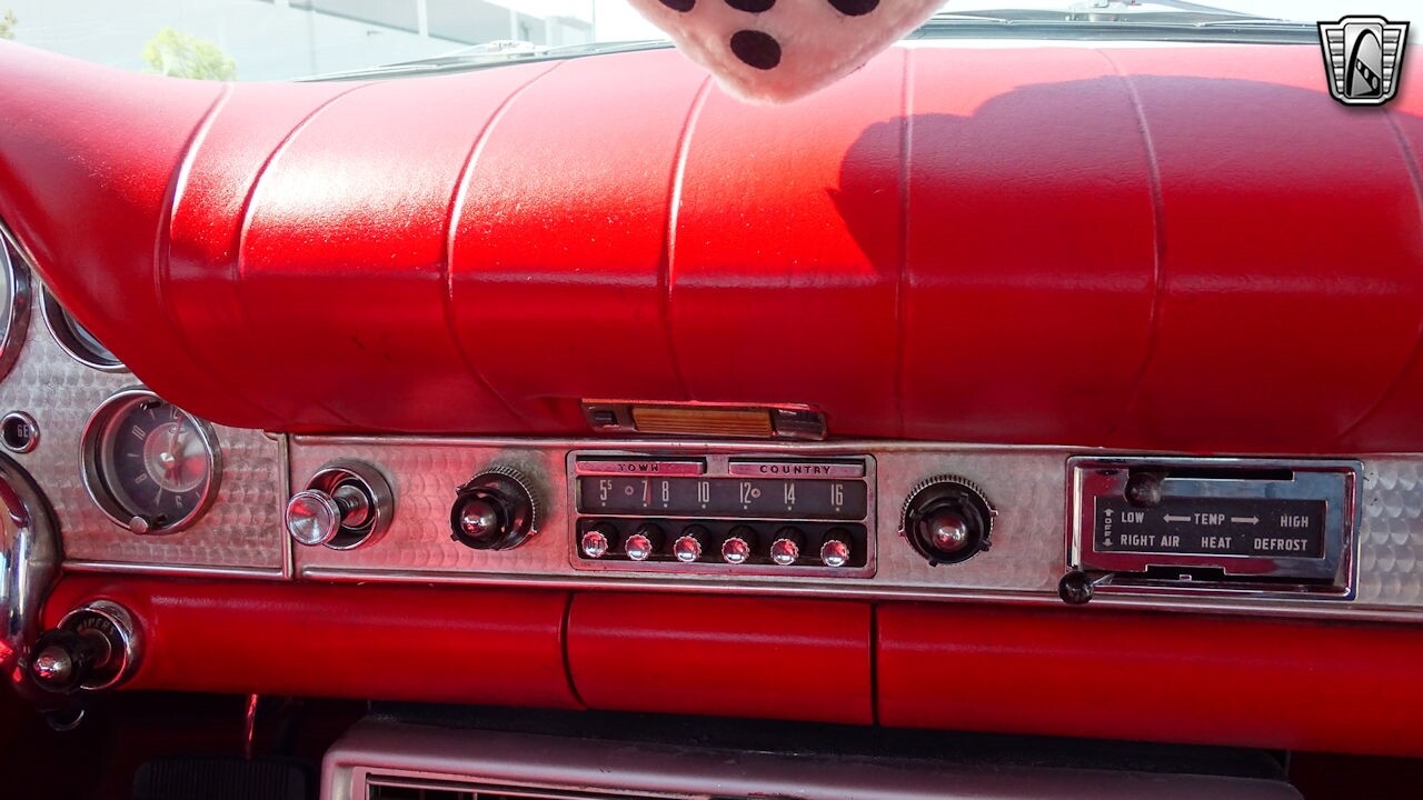 Experience the timeless elegance of the 1957 Ford Thunderbird Convertible. This classic beauty, with its striking red exterior and matching red interior, is sure to turn heads wherever you go.