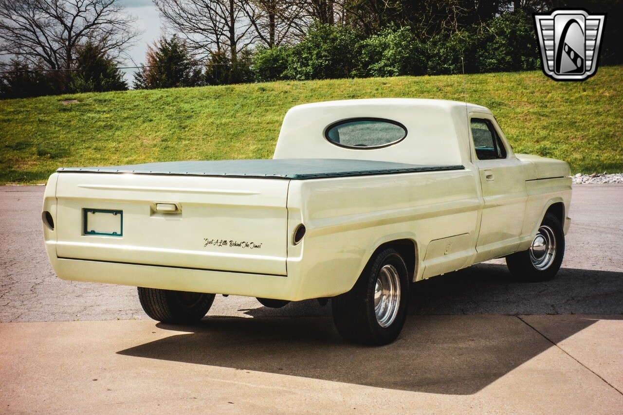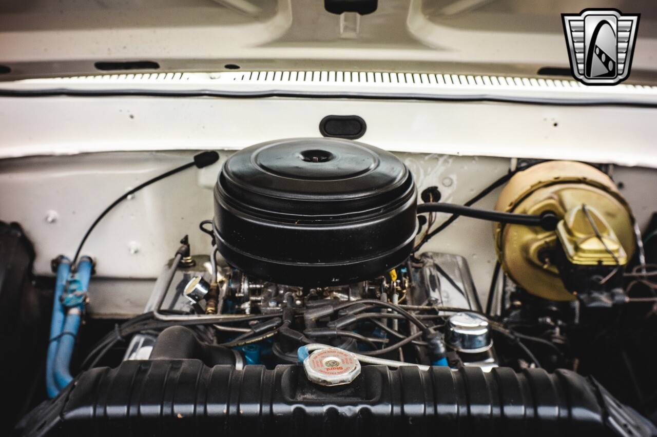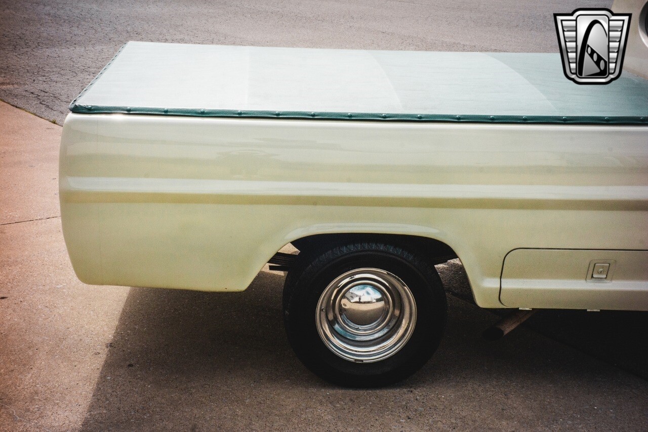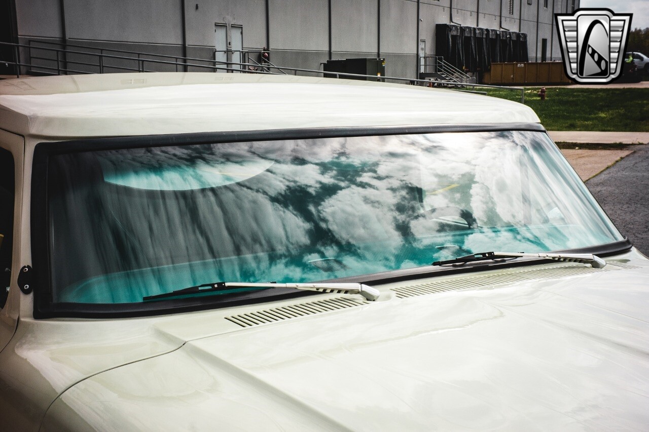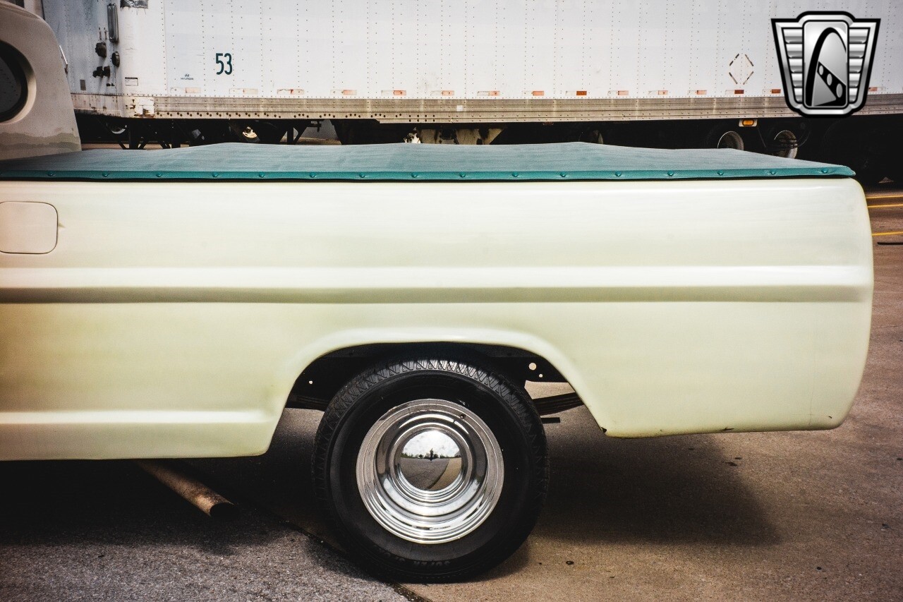 The exterior is dressed in an off soft light green with ghost flames that will catch anyone's eyes. The body of this F100 was treated to many touches, some small and some not so small. The chop is obvious, as is the rear window but then there are small subtle touches like the frenched in lights and antenna. With vinyl seating, new custom door panels that house your power buttons for the windows. Everything inside has been modified, moved, replace or customized. Look, you're not afraid to be different and this truck makes that statement to loud and clear.