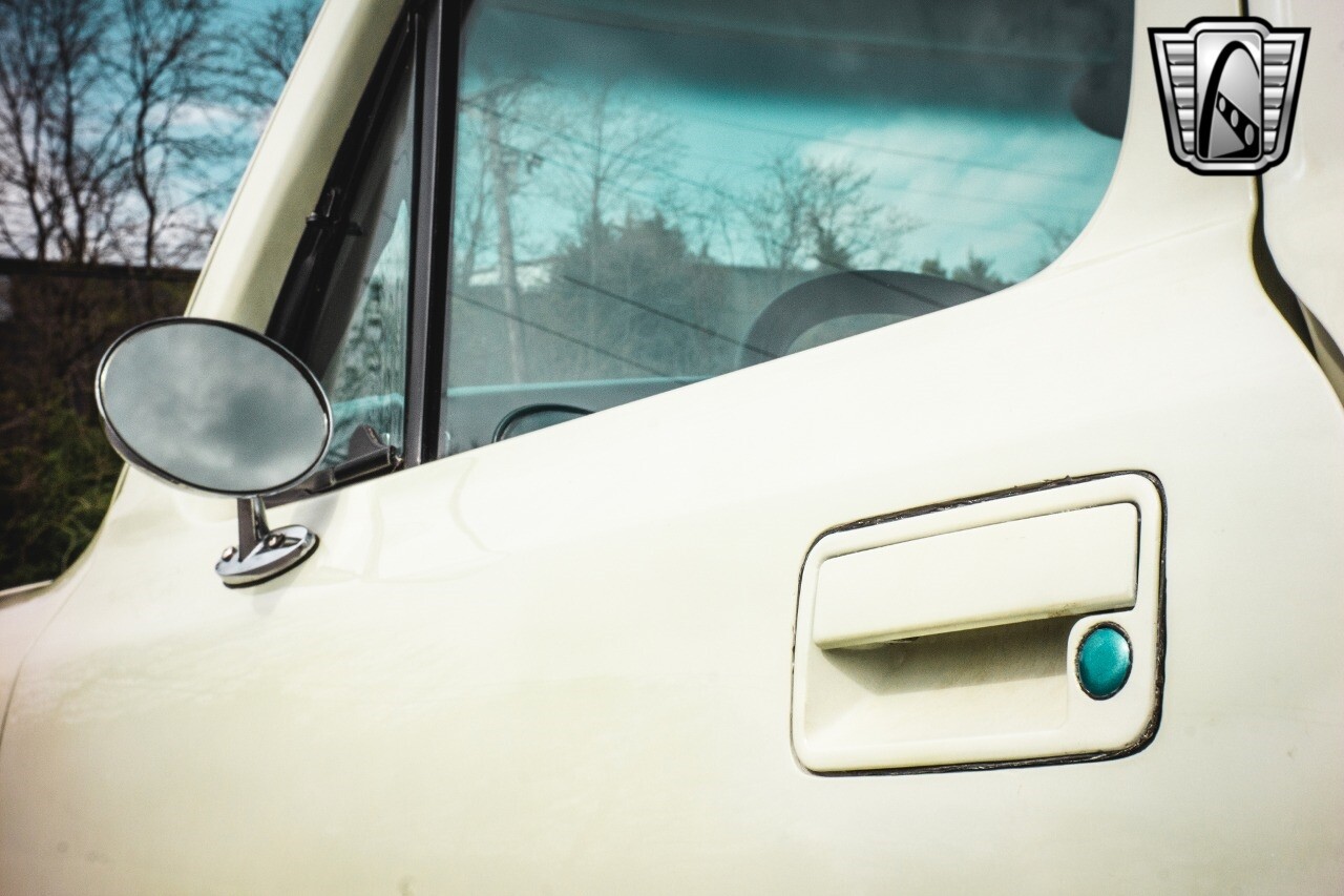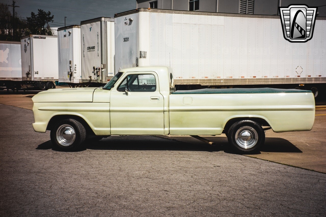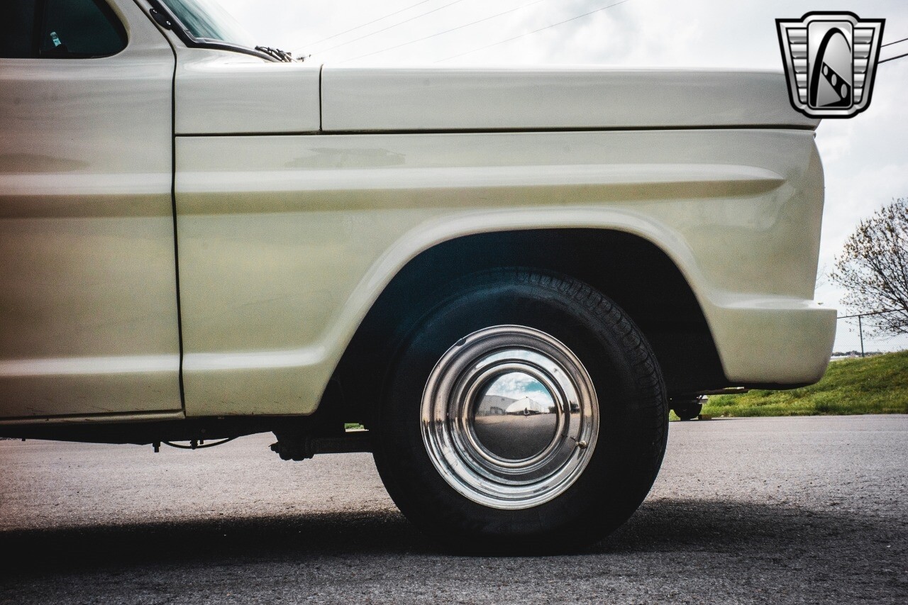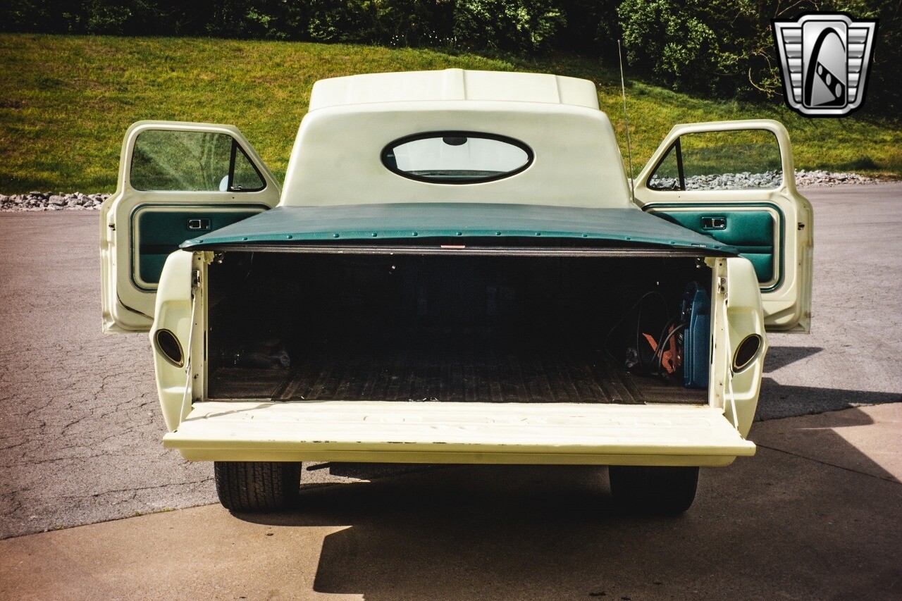 The exterior is dressed in an off soft light green with ghost flames that will catch anyone's eyes. The body of this F100 was treated to many touches, some small and some not so small. The chop is obvious, as is the rear window but then there are small subtle touches like the frenched in lights and antenna. With vinyl seating, new custom door panels that house your power buttons for the windows. Everything inside has been modified, moved, replace or customized. Look, you're not afraid to be different and this truck makes that statement to loud and clear.
