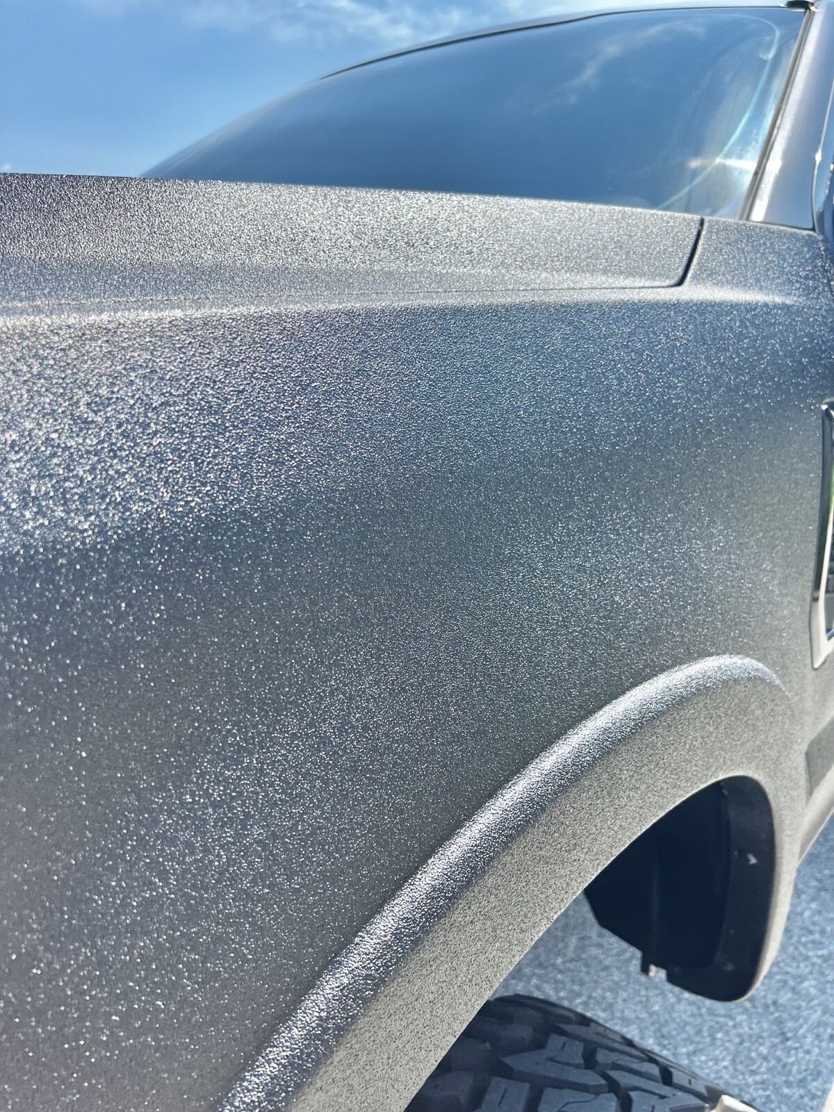 80% LineX sprayed, truck completely disassembled to make perfect, glistens in the sunlight, practically indestructible, no worries about rock scratches, LineX is sprayed at 165 degrees and 2200psi always sprayed with aircraft UV protectant which gives it that shimmer