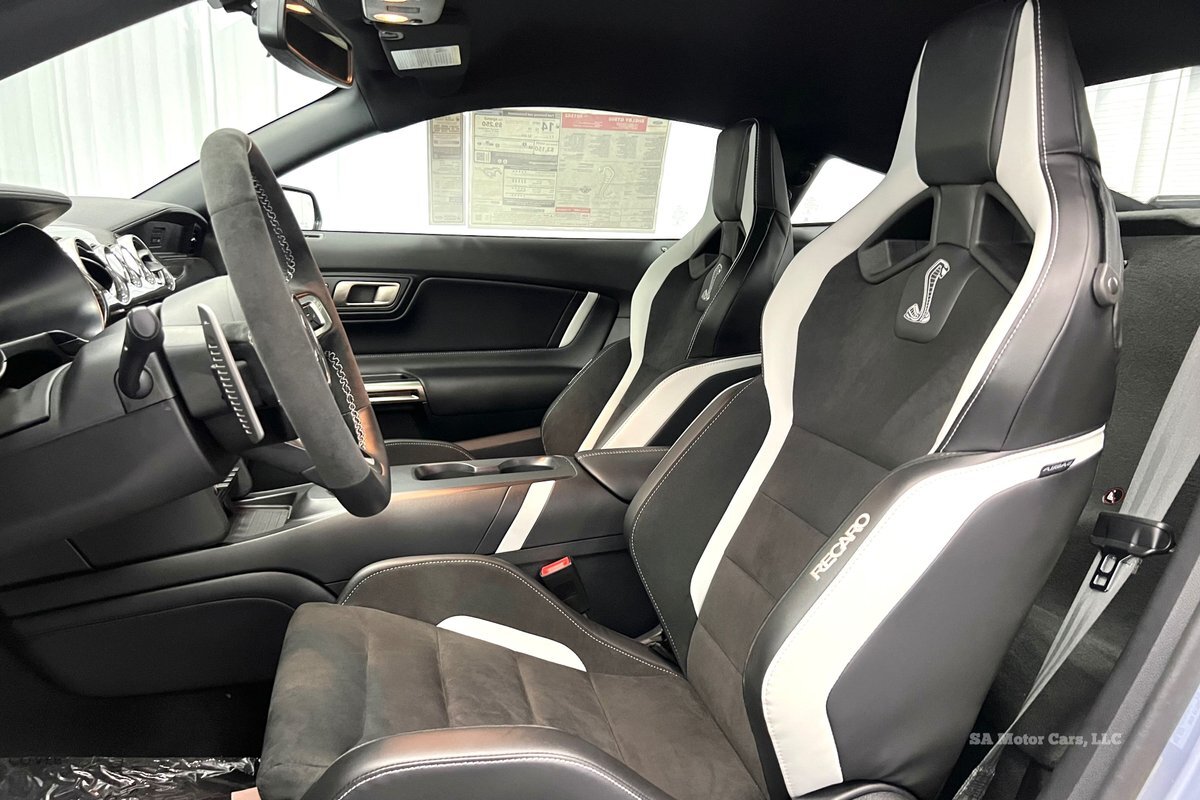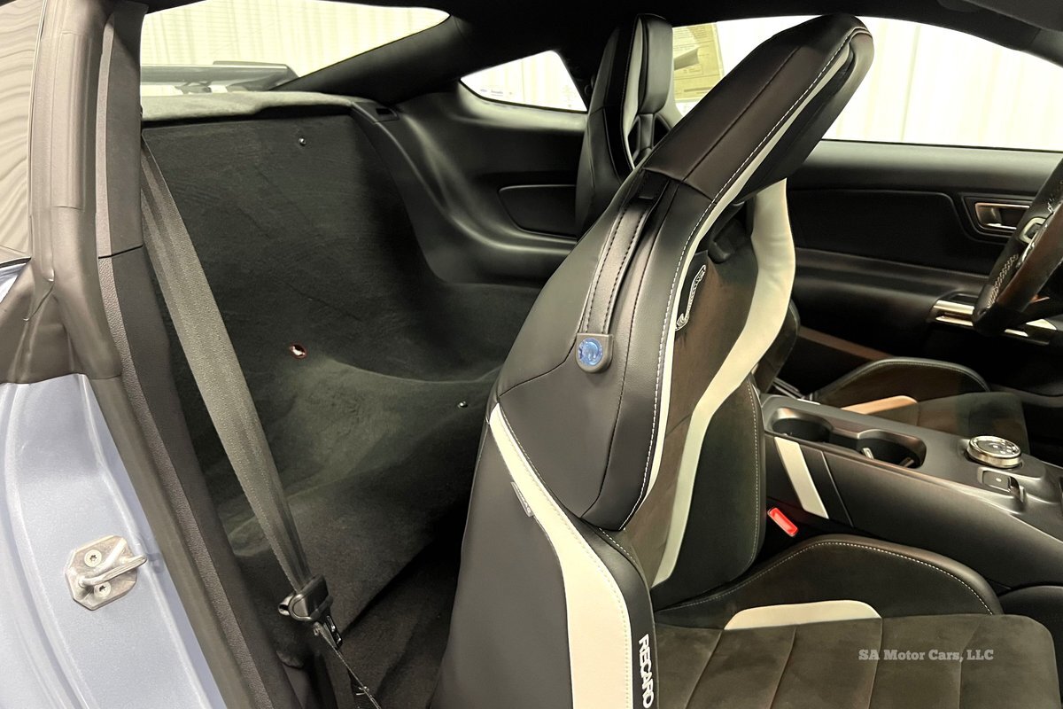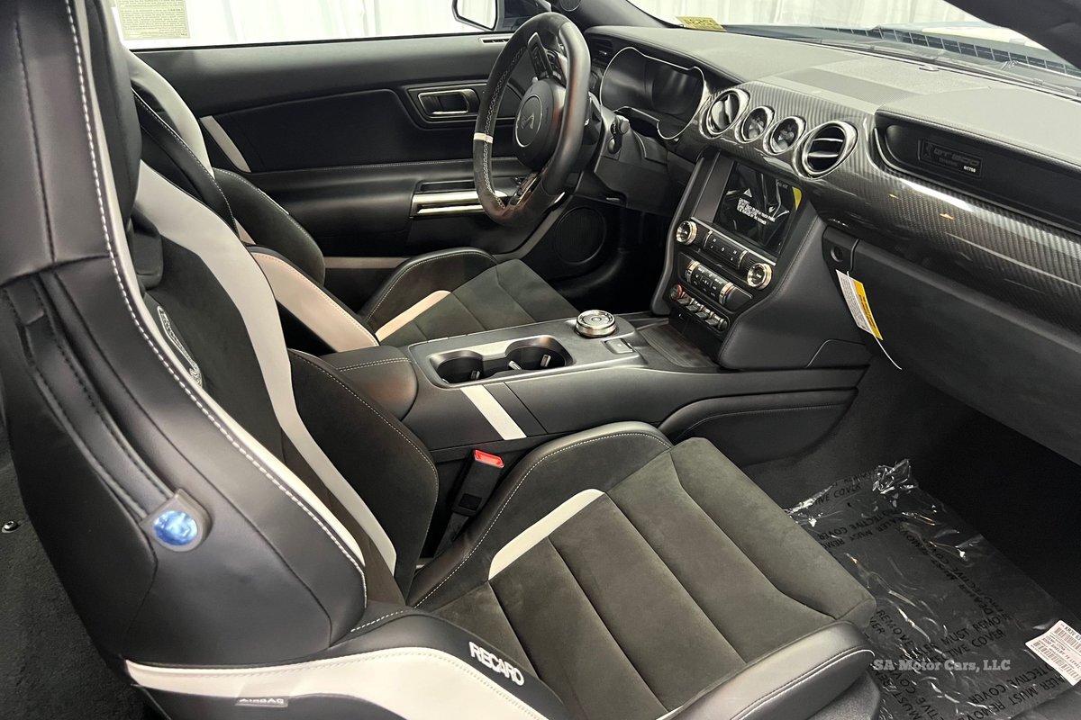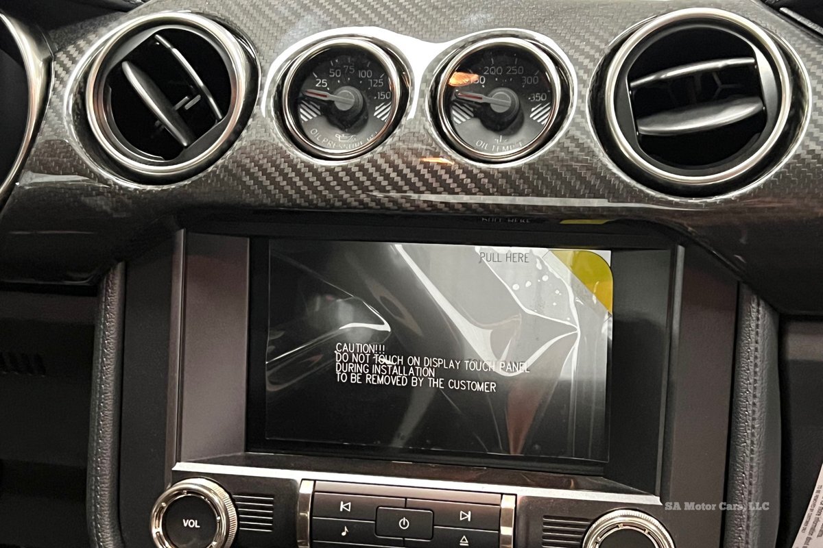 Inside this Shelby you will find a 12" LCD Digital Instrument Cluster, Ebony Leather with Recaro leather Gray Accents, Front Bucket Seats, B&O Sound System w/12 speakers and lots of modern comfort and safety features!