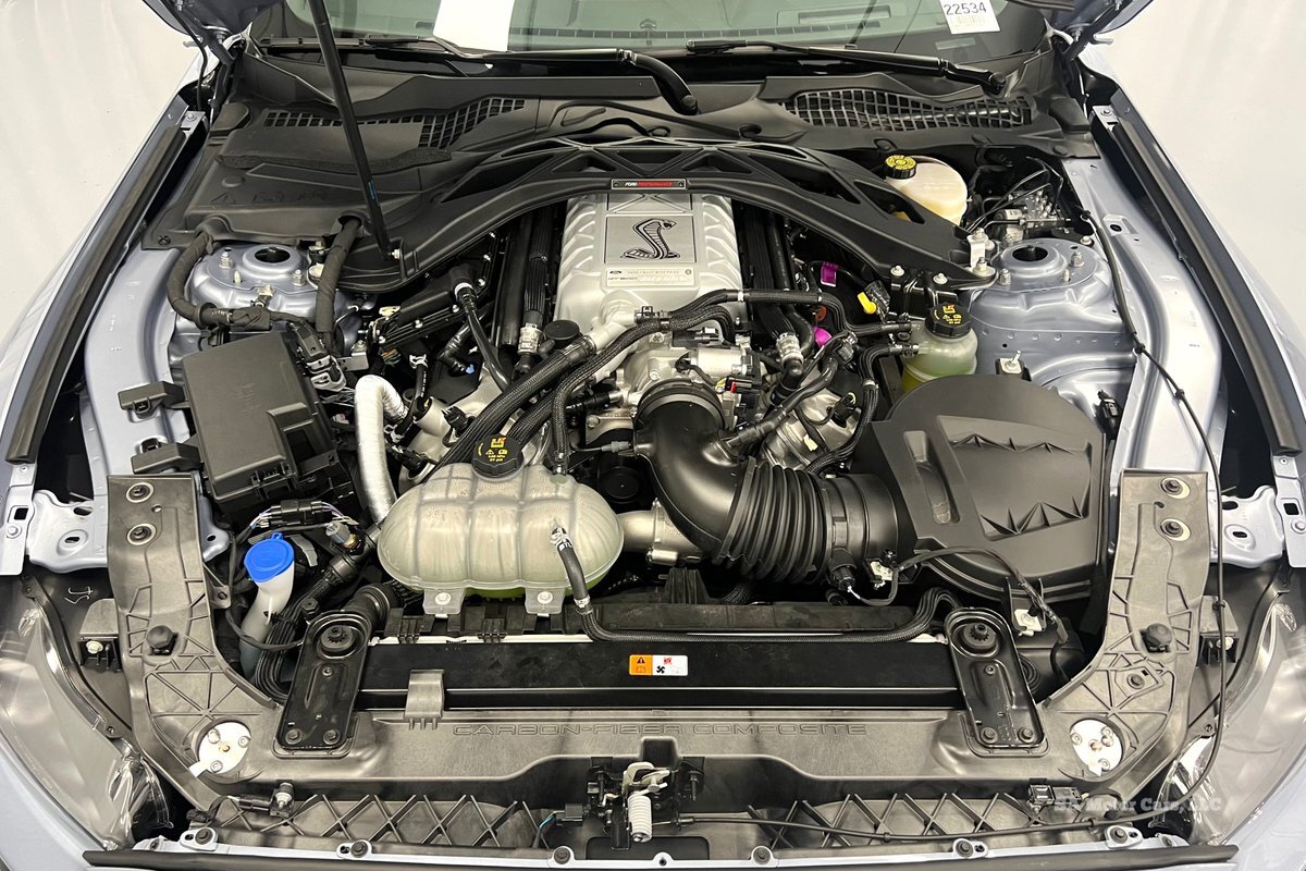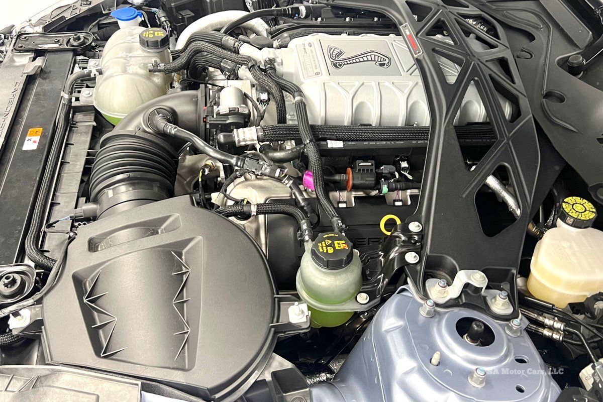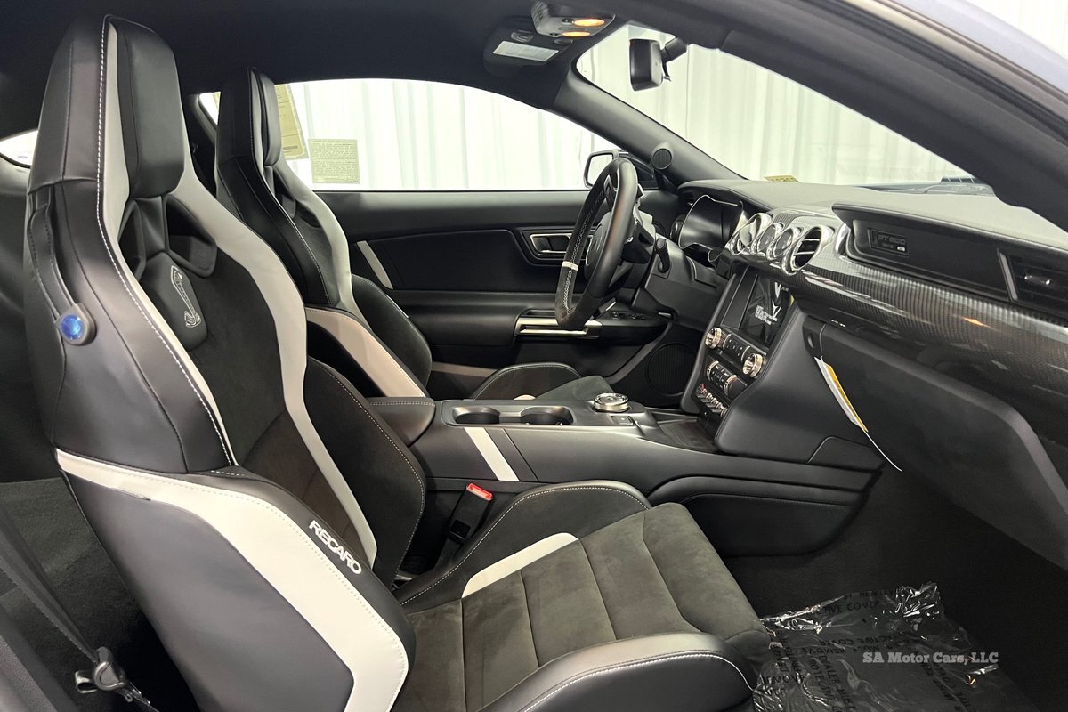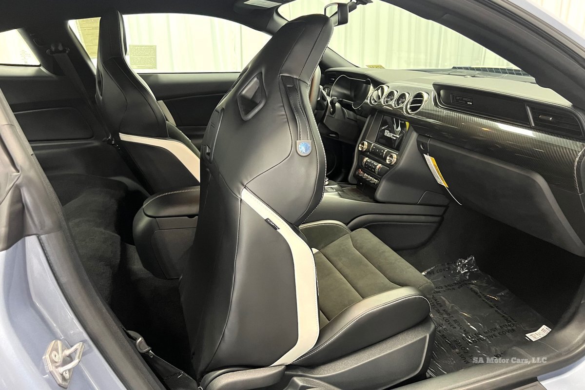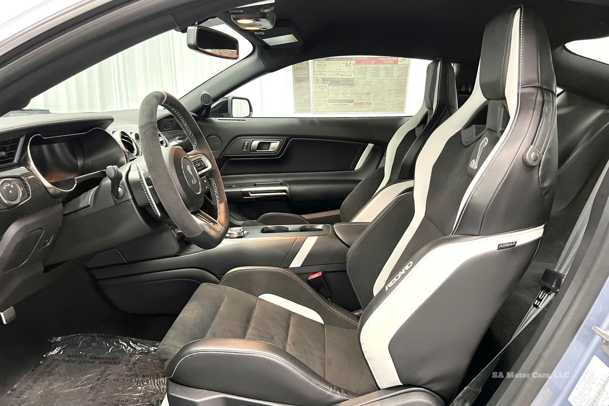 Inside this Shelby you will find a 12" LCD Digital Instrument Cluster, Ebony Leather with Recaro leather Gray Accents, Front Bucket Seats, B&O Sound System w/12 speakers and lots of modern comfort and safety features!