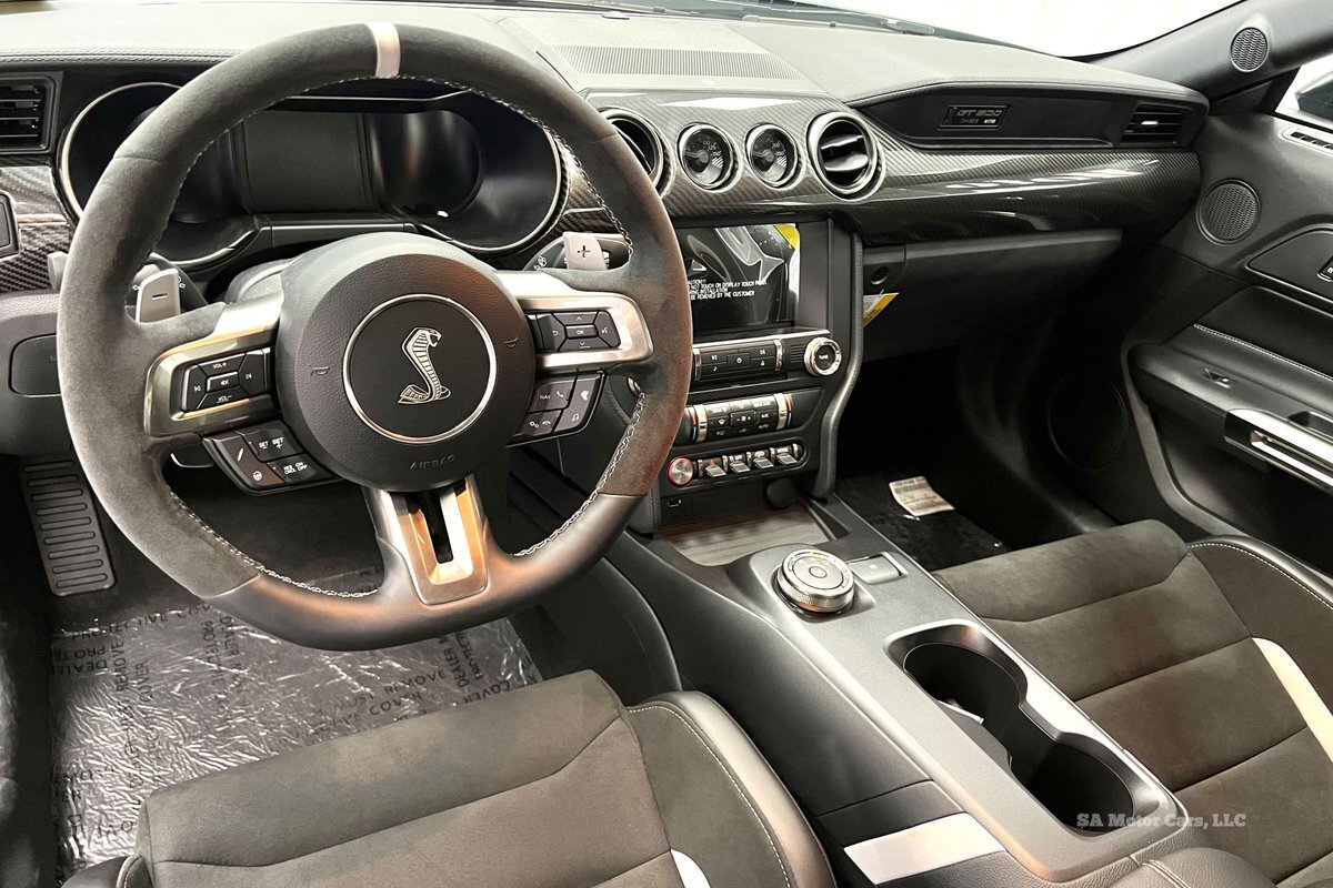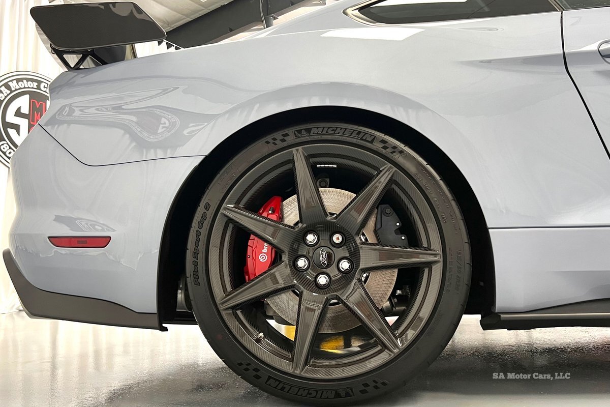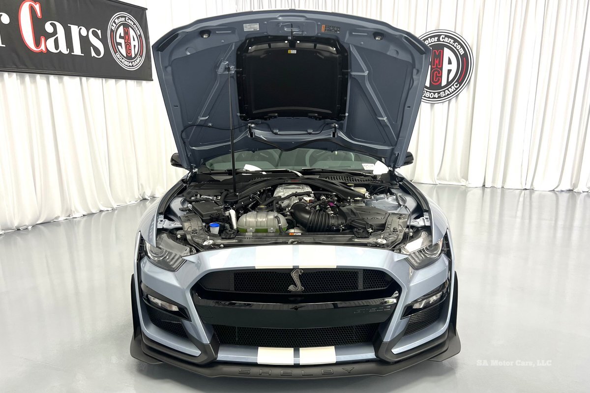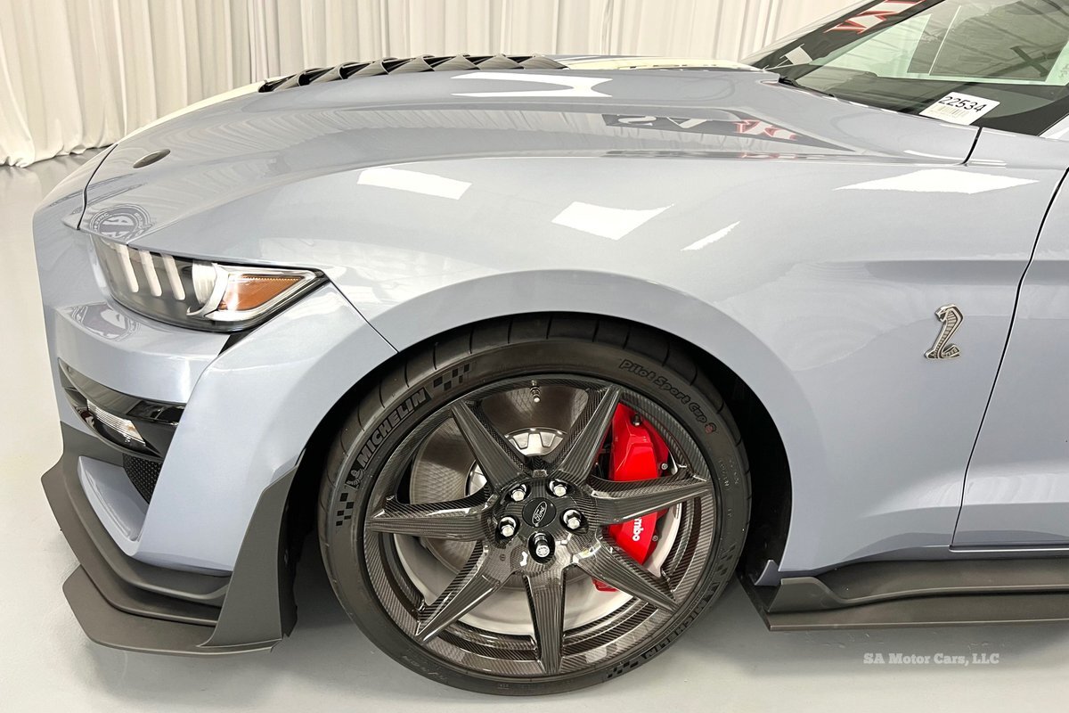 Check out this beautiful 2022 FORD MUSTANG SHELBY GT500! This GT500 is a Heritage Edition, which means that it's FULLY loaded with options that include both the Carbon Fiber Track Pack and Technology Package! This Shelby has only 10 Miles and it's sporting Brittany Blue Metallic Exterior Paint, HG Painted over Wimbledon White Striping, 20" Exposed Carbon-Fiber Wheels, Exposed Carbon Fiber Track Wing, and has Active Dual Exhaust with Quad Tips!