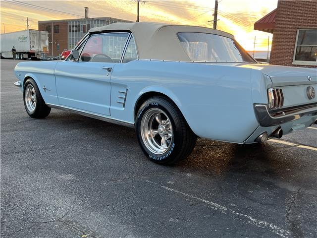 1966 Ford Mustang convertible factory V8. Comes fully loaded with every power option available equipped with upgraded vintage Air conditioning and new style ac compressor, new dryer, condenser and under dash unit, Power disc brakes and power steering upgraded by Borgesson power steering system. Light Blue with a blue and white Pony deluxe interior. Equipped with a rebuilt 289 c.i engine as well as a rebuilt C4 automatic transmission. The car was just painted in a base coat clear coat system. The Mustang was completely disassembled. All new chrome inside and out was installed after the paint job. All new front suspension and rear shocks new front end suspension upgraded for a better ride. New fuel tank and GT exhaust system. B.f Goodrich tires and new torque thrust Gt styled wheels. The floors and undercarriage were sandblasted and professionally repainted. One of the nicest under carriages you will find on a classic mustang. The convertible top was also completely redone the frame for the top was redone, new well liner, convertible top pad, new interior. Including new carpet, seat tracks, seat foam, door panels and handles, sun visors, seat belts, and carpet as well as a nice center console for comfort. New rubber and seals were replaced. The mustang has upgraded front power disk brakes. As well as a Willwood style power brake booster and master cylinder. If you are looking for an excellent running and driving car that has been nicely maintained and restored with all the upgraded power options, you will not find too many in better shape than this one. Numerous other options and mechanical