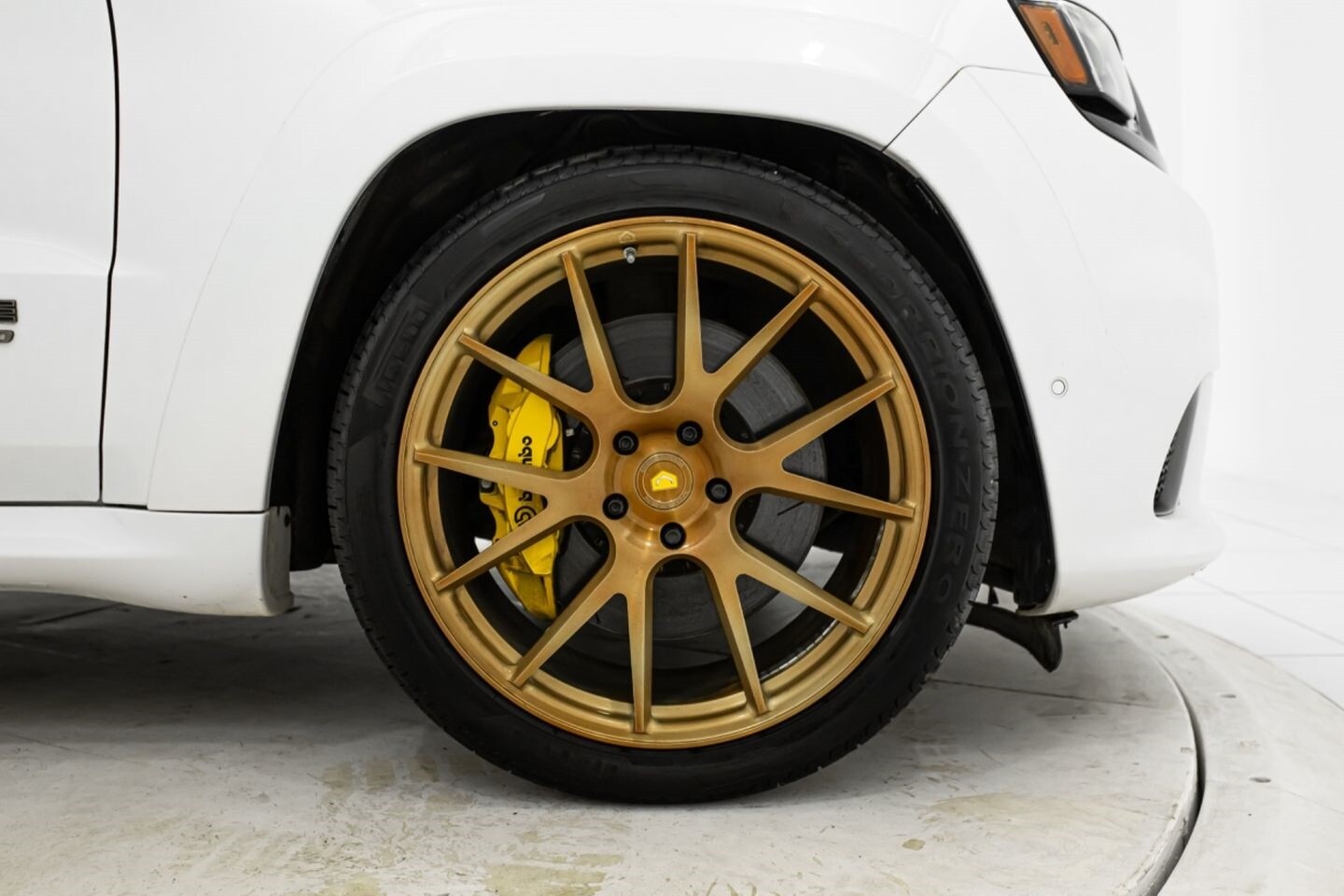 This 2018 Jeep Grand Cherokee Trackhawk is the American standard for high-performance SUVs. Under the hood is a supercharged 6.2-liter V8 engine that produces 707 horsepower and 645 lb-ft of torque, all of which is sent through a eight-speed automatic transmission to all four wheels. The engine is not stock, however, having received Wiseco pistons, Molnar rods, a Cam Motion upgraded camshaft, PSI valve springs with titanium retainers Frankenstein ported heads, Kooks catted long-tube headers, a Kooks X-pipe, and engine and transmission tuning by ZH Tunes, among many other modifications. This absolute unit comes equipped with Vossen Forged 22" VPS-306 wheels finished in Brickell Bronze, while the aggressive exterior is finished in Ivory Tri-Coat. In the interior, this Trackhawk offers heated and ventilated leather "Trackhawk"-embossed sport seats, heated rear seats, a semi-digital gauge cluster, selectable drive modes, multi-zone climate controls, a heated leather steering wheel, Launch Control, and an infotainment system with Bluetooth, navigation, apps, Performance Pages, climate controls, phone connectivity, AUX, and a backup camera, truly making this SUV the complete package.