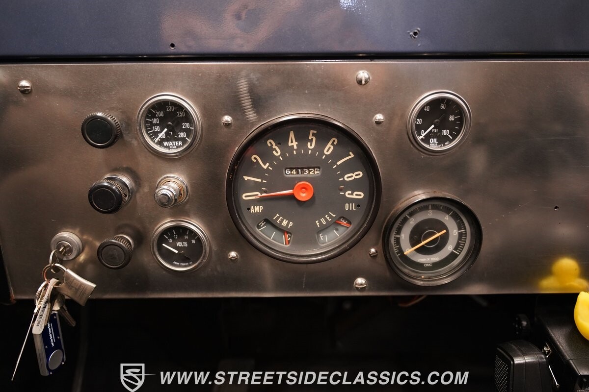 Beneath the adventure-ready exterior thrums the heart of a 304 V8 engine, mated with a 3-speed manual transmission that offers unyielding control over untamed terrains. Enhanced by a Holley carb and headers, front disc brakes for reliable stopping power, a dual exhaust system with Glasspack style mufflers for that unmistakable roar, and an aluminum radiator to keep everything running cool, even under the harshest conditions. With thoughtful upgrades like a new rear driveshaft and a meticulously rebuilt transfer case, this CJ5 proves itself to be more than just an attractive facade-it's a relentless workhorse cloaked in Jeep's iconic styling.